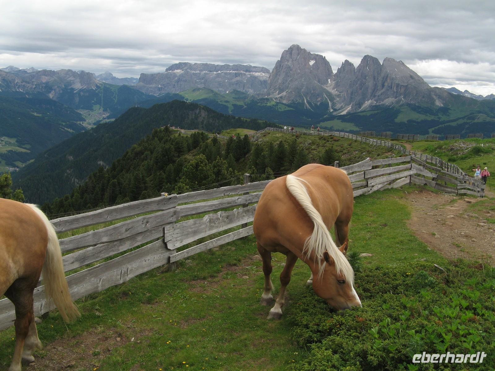 Heute führt uns die Reise über Klausen, Waidbruck nach Seis, wo wir die Seilbahn hinauf zur Seiser Alm nutzen, Europas größte geschlossene Almfläche. Hier gibt es von Petra Empfehlungen, wie wir die Zeit auf der Alm verbringen können. Einige Gäste entscheiden sich für eine Fahrt mit der Pferdekutsche oder zu einer Wanderung über die Panoramahöhe zur Laurinhütte. Ein Teil der Gäste fährt mit Petra mit der Seilbahn auf den Puflatsch und wandert über die Hexenbänke zur Arnikahütte, wo dann Knödel und Weissbier besonders schmecken.