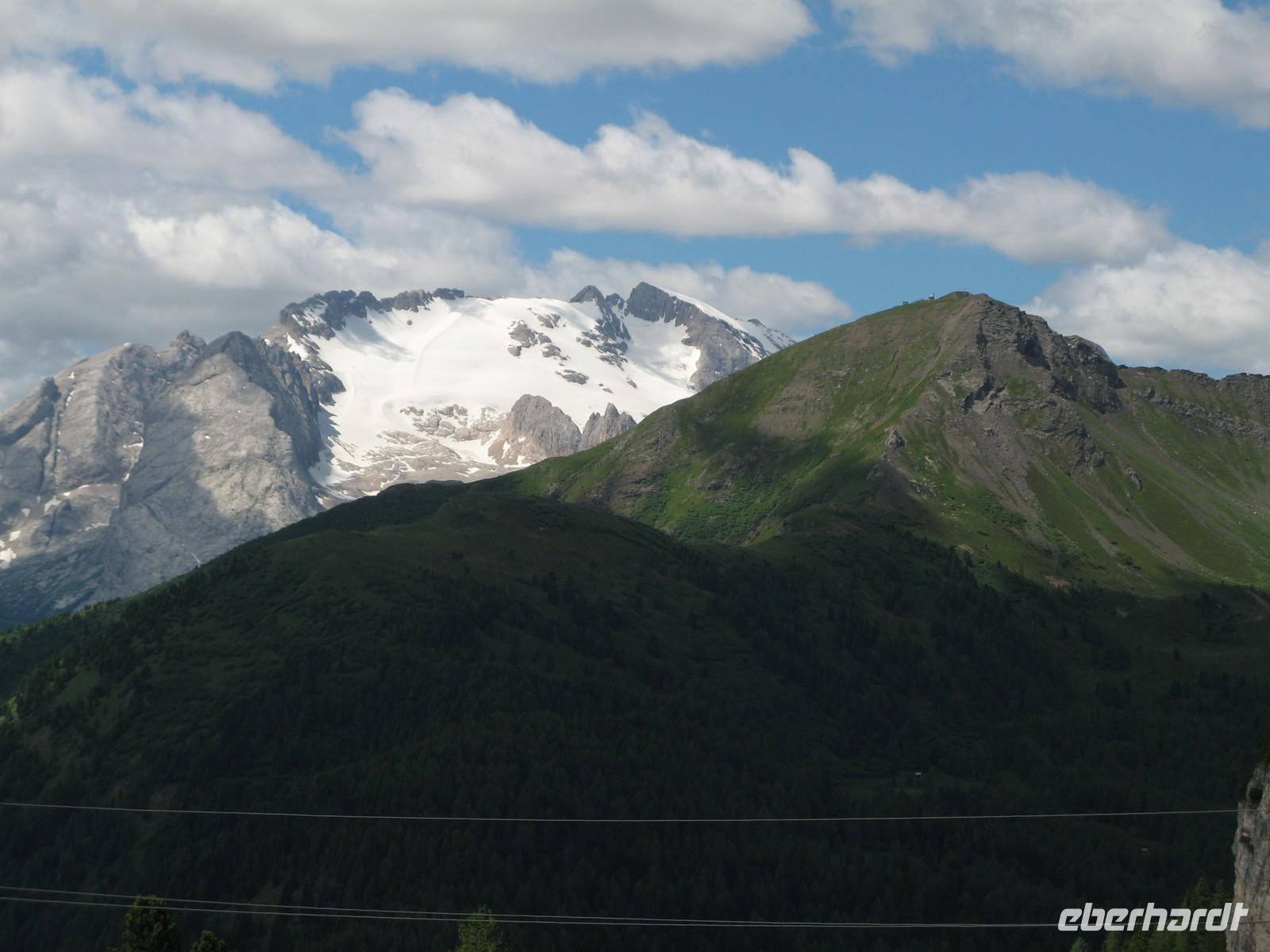 Tony begleitete uns heute in unserem Bus. Er führt uns durch die Bergwelt der Dolomiten und erzählt uns viel über das Leben in Südtirol! Zuerst fahren wir durch das Pustertal über Toblach zum Misurinasee. Nach einem Foto-WC- -Stopp fahren wir durch Cortina d’Ampezzo zum 2117 m hohen Falzaregopaß, wo wir ein Foto unserer Gruppe machen. Weiter geht es durch La Villa und Corvara, um das Sellamassiv herum nach Arabba zum Mittagessen. Danach der Weg über viele Kehren hinauf zum 2239 m hohen Pordoijoch. Da wir heute ein Traumwetter haben, fahren einige Gäste mit der Seilbahn hinauf zum 2950 m hohen Sasso Pordoi und sind total begeistert von der herrlichen Rundsicht.