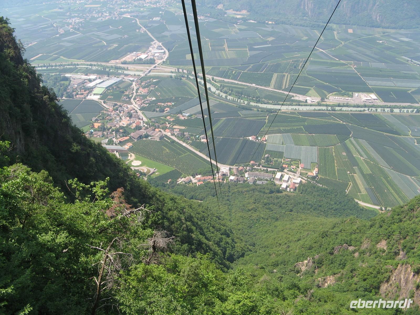 Heute morgen fahren wir auf den Höhenzug des Tschögglberges über dem Etschtal, zwischen Meran und Bozen, nach Mölten und besuchen dort die höchstgelegene Sektkellerei Europas, die Arunda Sektkellerei. Natürlich darf eine Probe des köstlichen Getränks nicht fehlen, wir nehmen drei! Dann geht es 45 Minuten zur Seilbahn und wieder hinab ins Etschtal, wo uns schon unser Bus erwartet.