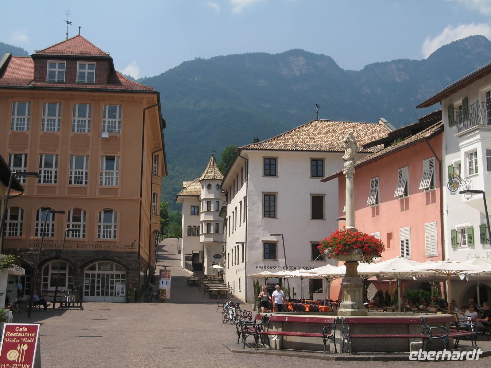 Wir fahren ein Stück auf der Südtiroler Weinstraße, vorbei an Tramin, der Heimat der inzwischen in aller Welt bekannten Weinrebe, sehen den Kalterer See und legen noch einen kurzen Zwischenstopp in Kaltern ein, um wenigstens mal den Marktplatz zu sehen. In Eppan erwartet uns Heini in der Weinkellerei Briggl. Nach der Besichtigung des Kellers und vielen Informationen zur Weinherstellung, Weinlagerung, Weinverkostung probieren wir 5 Weinsorten zu Heinis lustigen Sprüchen, und kaufen unsere Favoriten. Hier weiß man, was man hat und wie es schmeckt. Aber das Angebot reicht weit über die verkosteten Sorten hinaus. Etwas beschwingt treten wir die Heimreise an!