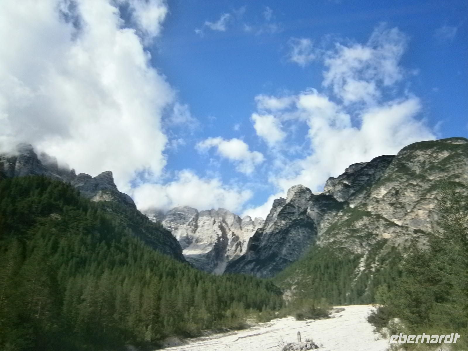 Nach einem reichhaltigen Frühstück starten wir am Morgen, gemeinsam mit Siegfried, unserem örtlichen Reiseleiter, zu unserer Panoramafahrt durch die Dolomiten. Vom Hotel aus geht es durch das Pustertal, an Brunneck vorbei, hinauf zum Misurinasee. Hier legen wir den ersten Fotostop ein und aus dem Innern des Souvenirshops erklingen die Melodien der Kastelruther Spatzen.