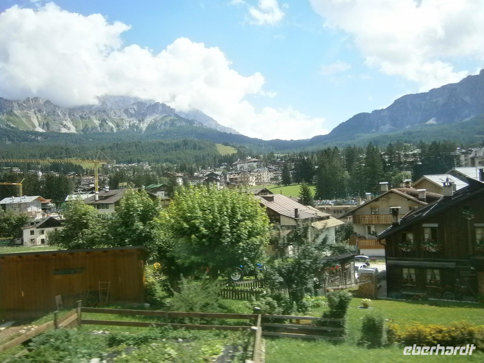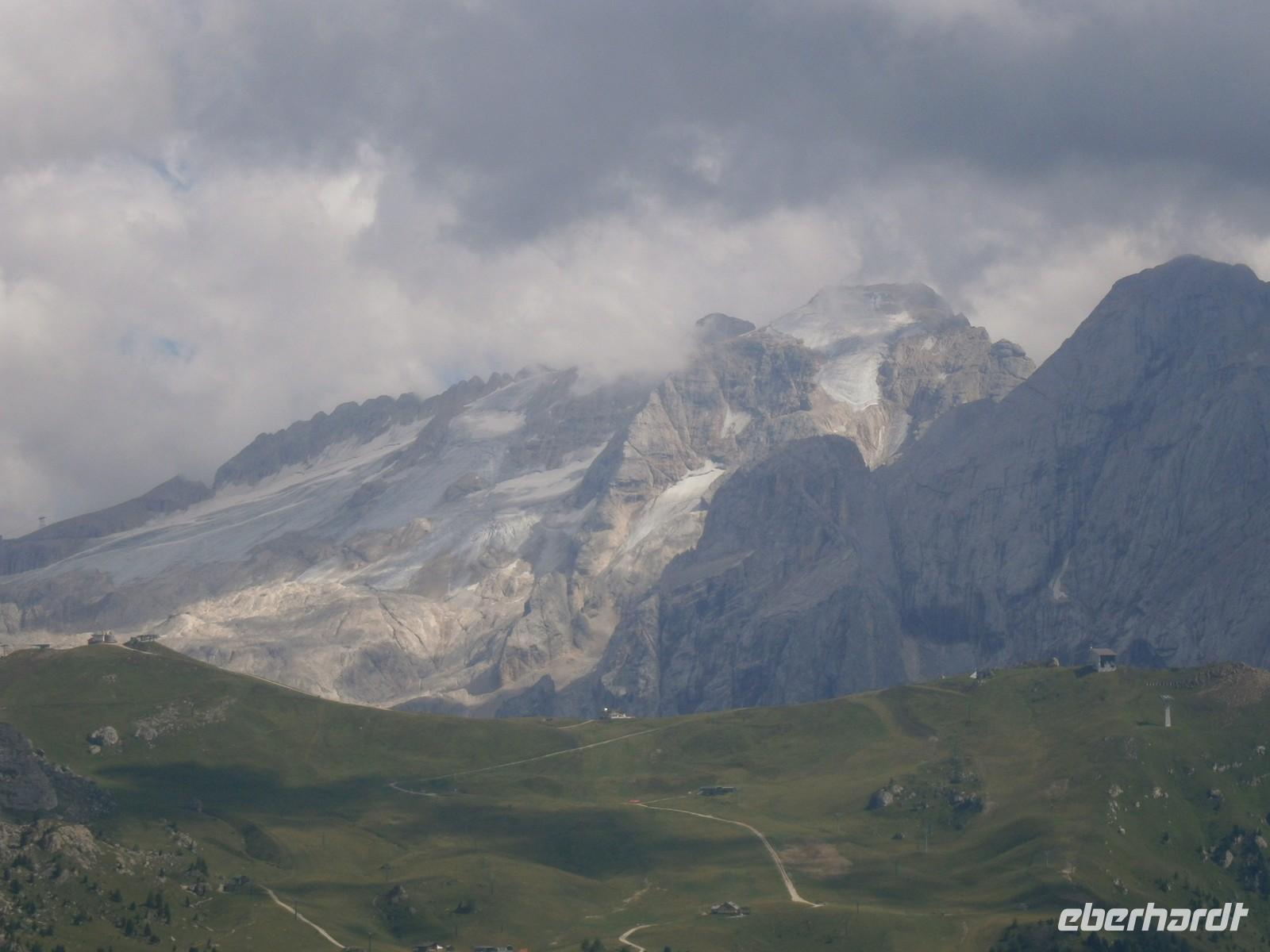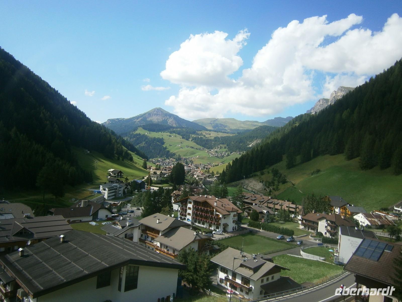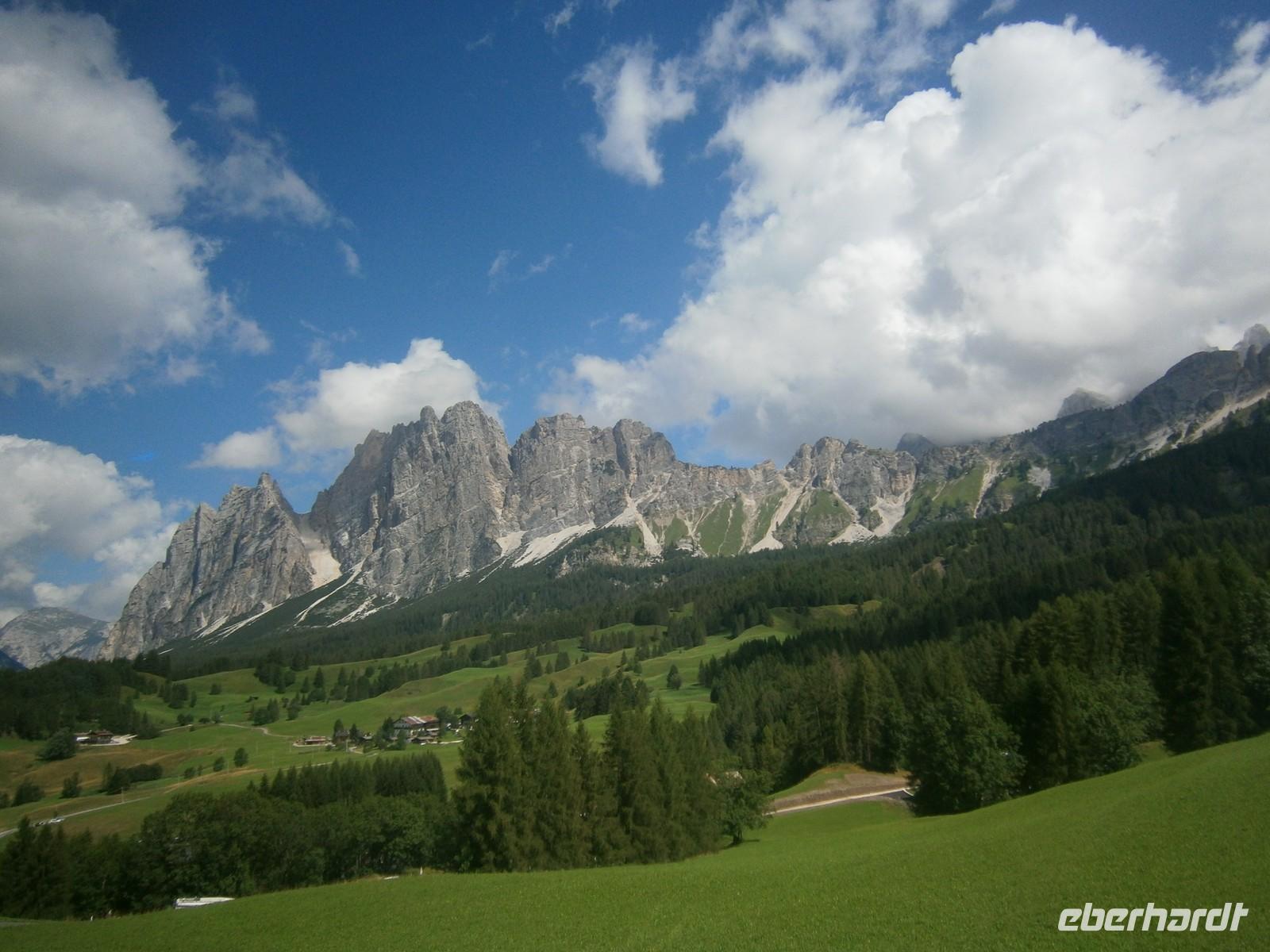 Während unserer Weiterfahrt geht eröffnen sich immer wieder phantastische Ausblicke auf die Bergwelt der Dolomiten. Monte Christallo, die Sellagruppe, die Marmolada. Es geht buchstäblich bergauf und bergab und wir überfahren eine Vielzahl an Passübergängen: