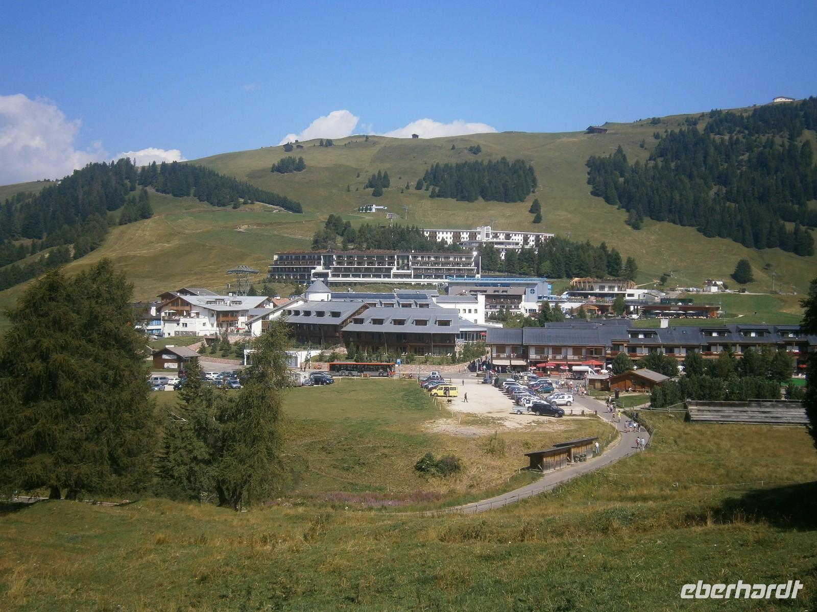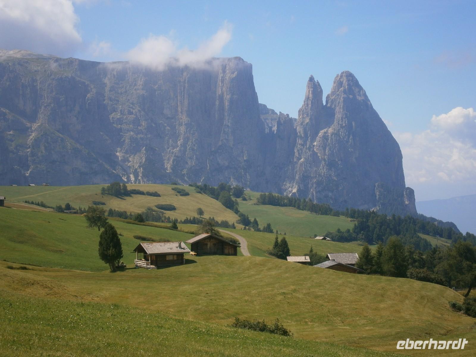 Der nächste Reistag bringt uns nach Seis am Schlern. Von hier aus gibt es die Möglichkeit auf die größte Alm hinauf zu fahren. In cirka 20 Minuten bringt uns die Kabinenbahn auf die Seiser Alm, auf eine Höhe von 1825 m.