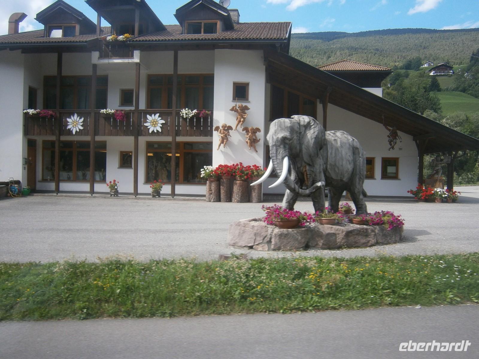 Die Rückfahrt zum Hotel führt uns auch durch das Grödnertal. Bekannt für seine große Anzahl an Holzschnitzereien. Überlebensgroße Statuen - so zum Beispiel „Louis Trenker“ - zeugen von der traditionellen Südtiroler Handwerkskunst.