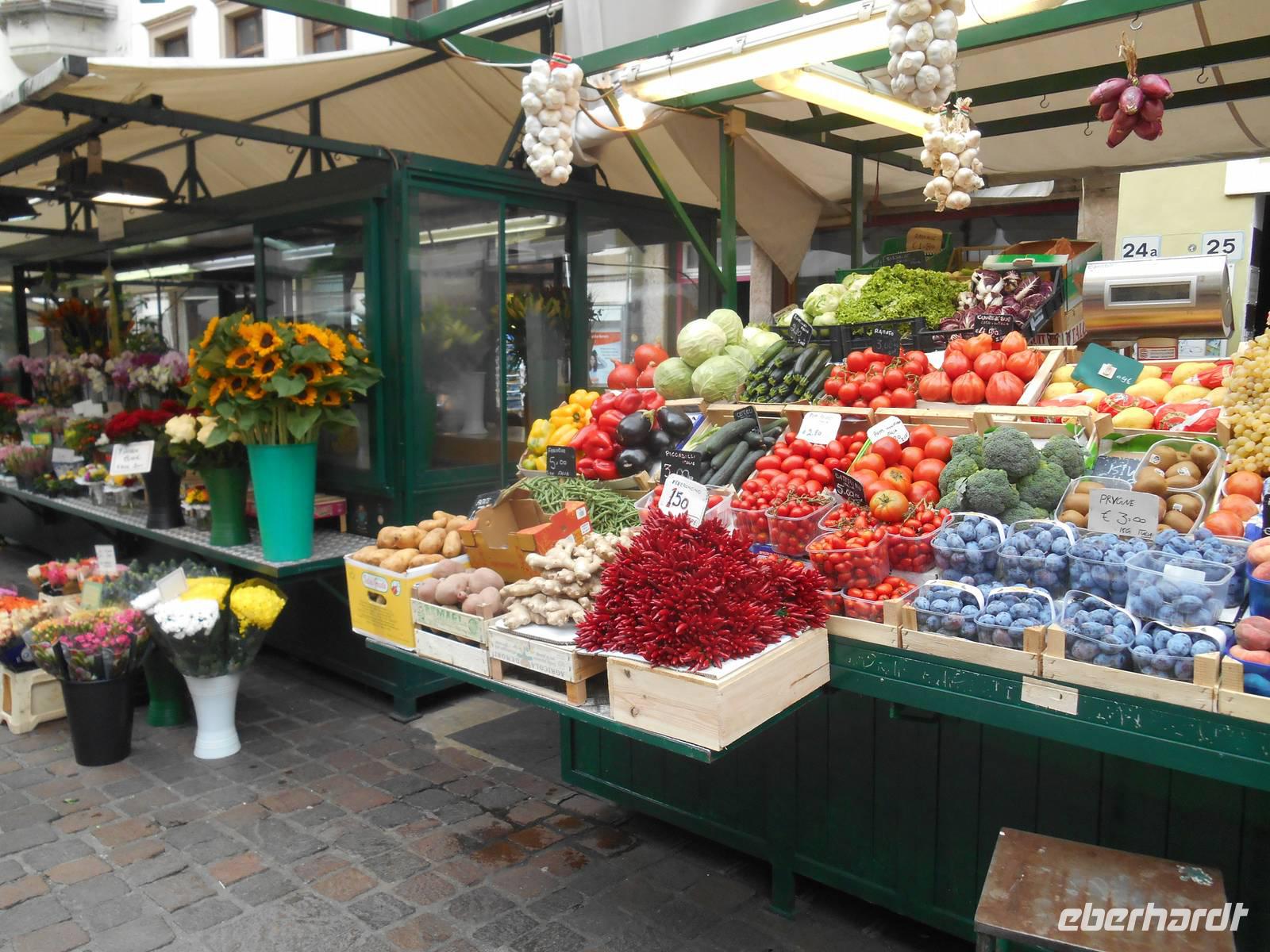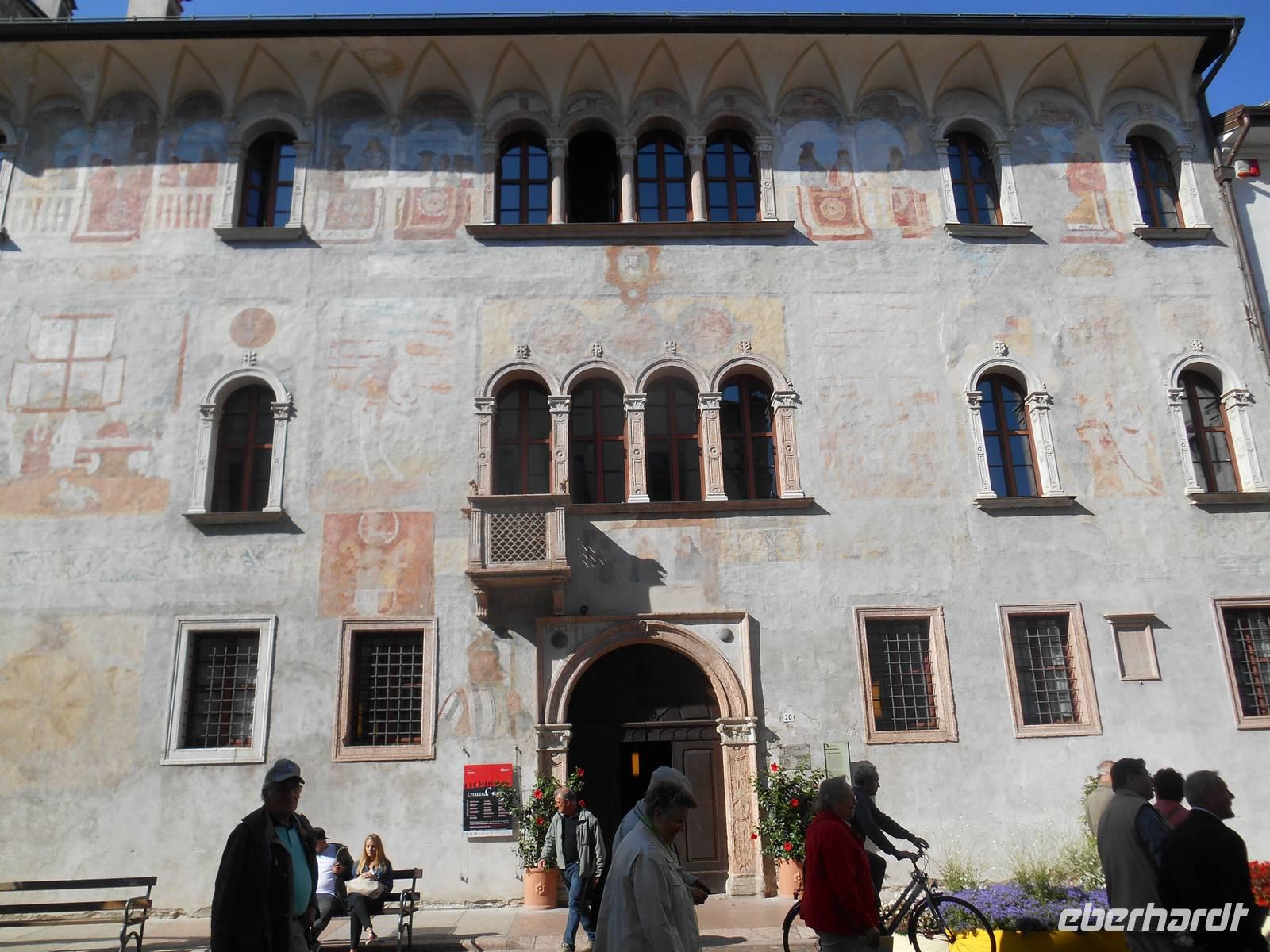 Trient erwartete uns am Vormittag bei wiederum perfektem Wetter! Wir trafen unsere sympathische Stadtführerin Elisabetta direkt in der Stadt und so konnte unser Spaziergang sofort beginnen... Die Hauptstadt des Trentino mit ihren 110.000 Einwohnern kann auf eine bewegte Geschichte zurückblicken. Von den Kelten gegründet und dann von den Römern erobert und auf den Namen „Tridentum" getauft, beschloss Kaiser Heinrich II. im Jahre 1004, den Bischöfen die weltliche Gewalt zu übertragen. Trotz verschiedener Revolutionen, blieb die Herrschaft bis zum Einmarsch der Truppen Napoleons im Jahre 1796 bei den Bischöfen. Danach wurde das Gebiet Teil des Kaiserreiches Österreich-Ungarn. Ab dieser Zeit begann man auch mit der Verwirklichung technischer Werke wie der Verlegung der Etsch, dem Bau der Brennerbahn und einer moderneren Stadtentwicklung. Die eigene Autonomie hat viel dazu beigetragen, dass Trient heute ein wichtiger Verwaltungs- und Wirtschaftszweig und auch Sitz der renommierten Universität ist, die besonders auch für ihre Forschung bekannt ist. Die verschiedenen Fresken auf den Palazzi der Altstadt berichten etwas von der Geschichte der Stadt und zeigen u. a. mythologische Figuren, die Reise der deutschen Kaiser nach Rom, das Konzil 1545, oder das Fürstbistum das über Jahrhunderte über das Tal entschied. Trient hat viel zu bieten - nicht nur geschichtsträchtige Denkmäler, Palazzi und Schlösser, sondern auch eine besondere Atmosphäre, Kultur und kulinarische Köstlichkeiten. Anschließend fuhren wir in Richtung Norden weiter - die Südtiroler Weinstraße war unser Ziel! Heute gehört das Gebiet, durch welches die Südtiroler Weinstraße führt, zu den am intensivsten bebauten Weinregionen Europas. Seine Tradition reicht weit zurück; schwäbische und bayerische Bistümer besaßen hier Grund und Boden, und da man die Vorteile der Lage erkannte, wurde der Wald gerodet, und Rebfluren wurden angelegt. Noch heute verrät die üppige südliche Vegetation, wie richtig die damalige Wahl gewesen ist - gut zwei Drittel der gesamten Südtiroler Weinproduktion werden hier gekeltert. Die berühmten Weindörfer Salurn, Neumarkt und Tramin ließen wir hinter uns und legten am Nachmittag eine Pause am Kalterer See ein. Der Kalterer See ist übrigens der wärmste Alpensee und hat den Weinen der ihn umgebenden Lagen den Namen gegeben. Danach stand eine Weinverkostung auf unserem Programm! In St. Michael erreichten wir das Weingut „Brigl". Hier wurden wir während einer kleinen Kellerführung mit dem Weinanbau vertraut gemacht und verkosteten fünf auserlesene Südtiroler Weine. Neben vielen fachlich interessanten Informationen über die einzelnen Weine kommt auch der Humor nicht zu kurz - wir hatten eine Menge Spaß!