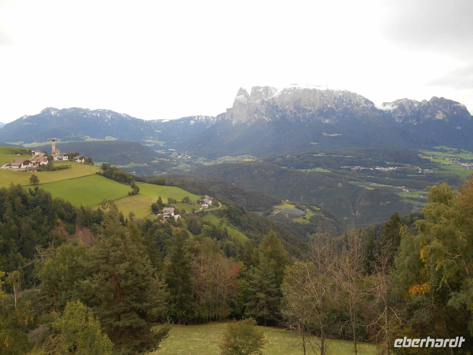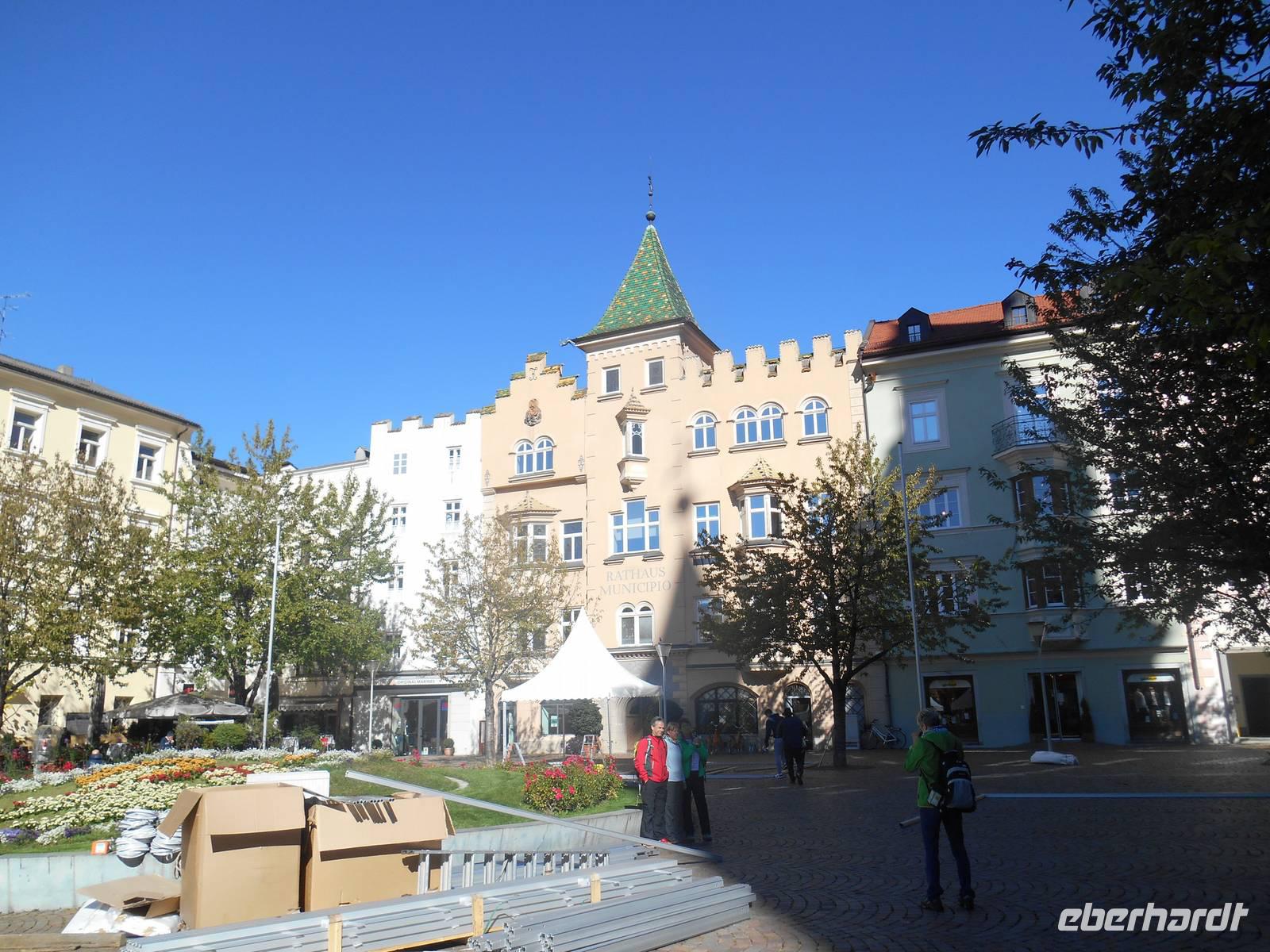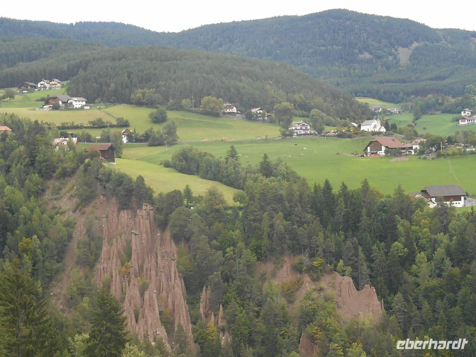 Unser Bus brachte uns zuerst in die größte Stadt Südtirols, nach Bozen, heute u. a. Sitz der Landesregierung, Universitätsstadt und auch Bischofsstadt. Gemeinsam ging es vom Parkhaus zu Fuß in nur knapp zehn Minuten in die „gute Stube" Bozens, dem Waltherplatz. Davor erhebt sich der mächtige Dom Maria Himmelfahrt. Herz der Stadt sind natürlich die Lauben - Tür an Tür laden hier Boutiquen, der traditionsreiche Obstmarkt und natürlich die Feinkostläden, für die Bozen über die Stadtgrenzen hinaus bekannt ist, zu jeder Jahreszeit zum Bummeln und Flanieren ein. Nach einem kurzen Rundgang durch die historische Altstadt endete unsere kleine Führung am Archäologischen Museum, welches einige unserer Gäste besuchten. Hier ist die Geschichte von Südtirol dokumentiert und ausgestellt. Modelle, Rekonstruktionen und Videos geben auf anspruchsvolle und unterhaltsame Weise einen Einblick in die frühe Vergangenheit des Alpenraums. Und der Star in diesem Museum ist natürlich „Ötzi", der Mann aus dem Eis. Nach dem Mittagessen fuhren wir mit unserem Bus auf den Ritten hinauf, der einstigen Sommerfrische der Bozner. Die Fahrt ging vorbei an den Weinhängen, führte durch kleine Orte, immer mit herrlichem Blick auf die gegenüberliegende Bergwelt und ins Eisacktal. In Lengmoos angekommen, gelangten wir dann auch nach einem kurzen Spaziergang zu den bekannten Rittner Erdpyramiden, die bis zu 15 Meter hoch sind. Sie bestehen aus Lockermaterial, welches aus eiszeitlichen Moränen heraus gewittert wurde, in denen sich Porphyr- und Granitblöcke befinden. Beschirmt durch Platten, hält der Unterbau, stürzt allerdings die Platte ab, wird auch die Pyramide rasch zerstört. Am Abend verwöhnte uns die Hotelküche mit einem reichhaltigen Südtiroler Abendessen.