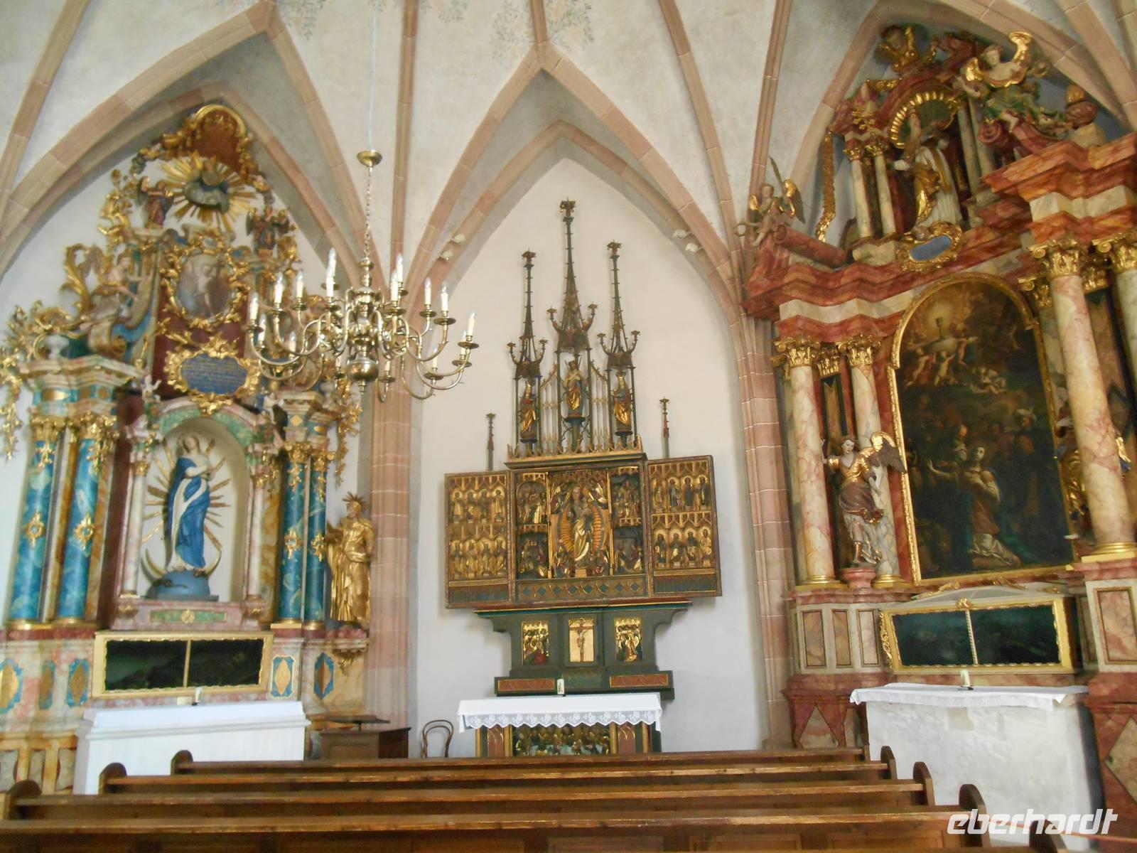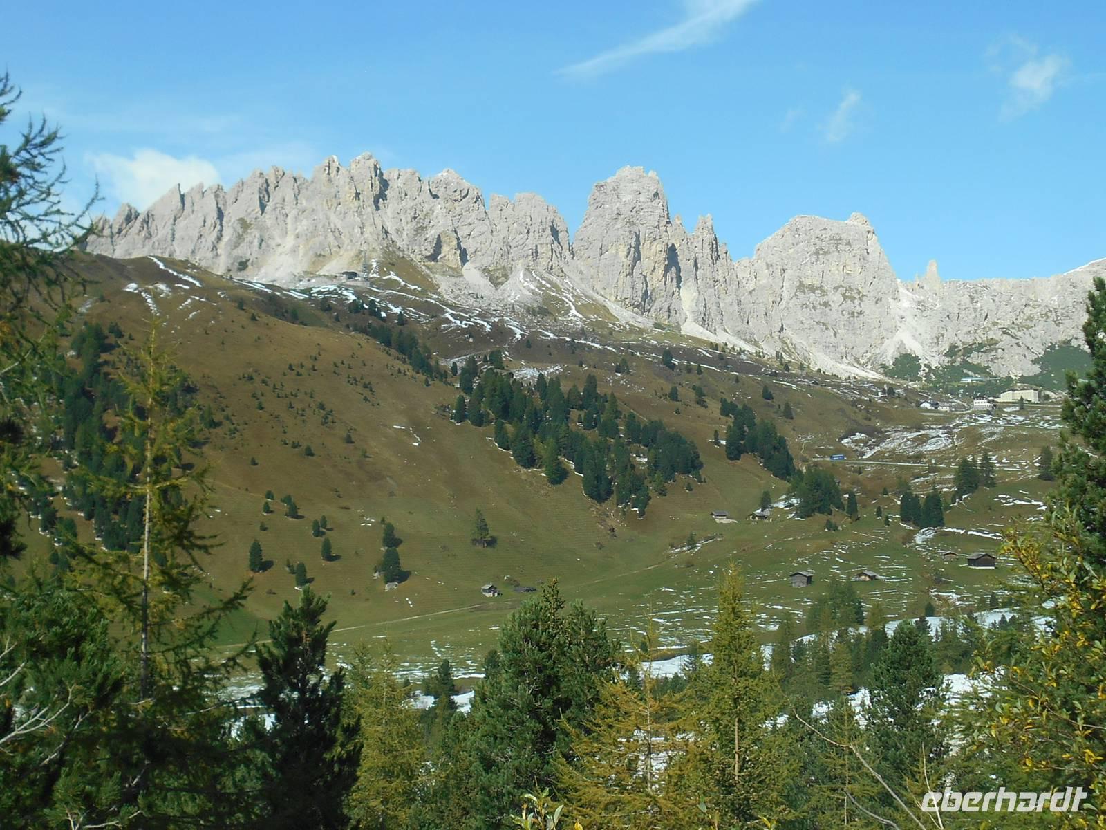 Mit guten Wetterprognosen im Gepäck und unserem örtlichen Reiseleiter Siegfried Schwingshackl brachen wir am Morgen zur Großen Dolomitenrundfahrt auf. Die traumhaften und sagenreichen Dolomiten mit ihren wildzerklüfteten Felsen gehören zu den meist beschriebenen und abgebildeten Gebirgslandschaften überhaupt. Sie sind Teil der Südalpen und erstrecken sich in einem weiten Bogen im Norden Italiens zwischen Pustertal, Eisack, Etsch, Val Sugana und Piave. „Entdeckt" wurden die sogenannten „bleichen Berge" von dem französischen Geologen Dolomieu, der Ende des 18. Jahrhunderts als erster ihren Aufbau untersuchte und nach dem sie und ihr Gestein auch benannt wurden. Erdgeschichtlich sind die durch ein dichtes Talnetz in viele über 3.000 Meter hohe Gebirgsstöcke geteilten Dolomiten jedoch wesentlich älter. Durch das Eggental ging es vorerst in Richtung Karerpass. Den ersten Stopp legten wir am Karersee, einem kleinen smaragdgrünen Bergsee - in dem sich übrigens bei entsprechenden Lichtverhältnissen der Rosengarten und der Latemar spiegeln - ein. Wegen seiner beeindruckenden Farbe wir der Karersee im Ladinischen auch „Lec de Ergobando" (Regenbogensee) genannt. Dies ist aber nicht der einzige Grund für seinen Namen... Siegfried erzählte uns so manch nette Geschichten... Einer Sage zufolge lebte nämlich im Karersee einst eine wunderschöne Wasserjungfrau, in die sich der Hexenmeister von Masaré verliebte. Um ihre Gunst zu gewinnen, hatte die Hexe Lanwerda die Idee, er solle sich doch als Juwelenhändler verkleiden und einen Regenbogen von Rosengarten bis Latemar schlagen. Diesen Rat befolgte er, vergaß jedoch sich zu verkleiden. So wurde er von der Wasserjungfrau entdeckt, welche für immer im See verschwand. Der Hexenmeister war so wütend, dass er die Regenbogenstücke und Juwelen in den See warf - deshalb schimmert der See heute immer noch in prächtigen Regenbogenfarben. Weiter ging es nunmehr über den Karerpass - zu Füßen des Rosengartens - hinab ins Fassatal nach Canazei und bis zum 2.239 Meter hohen Pordoijoch. Unsere Mittagspause legten wir anschließend in Arabba ein, wo uns ein sehr schmackhaftes Essen im Hotel „Evaldo" erwartete. Gut gestärkt setzen wir unsere Dolomitenfahrt über den Campolongo-Pass nach Corvara im Gadertal fort. Von hier aus kamen wir über das Grödnerjoch nach St. Ullrich, dem Hauptort des Grödnertales. Hier legten wir unseren letzten Aufenthalt des heutigen Tages ein. Der Ort ist wegen seines malerischen Ortskerns und seines quirligen Lebens ein beliebtes Urlaubsziel in den Dolomiten. Ein wichtiger Bestandteil der Tradition in St. Ulrich ist die Holzschnitzerei - zu Beginn des 17. Jahrhundert entstand sie als Beschäftigung in den Wintermonaten, daraus entwickelte sich ein Kunsthandwerk, das heute in aller Welt bekannt ist. Am frühen Abend kamen wir nach Steinmannwald zurück und mit den herrlichen Eindrücken des heutigen Tages genossen wir gemeinsam ein wiederum schmackhaftes Abendessen in unserem Hotel.