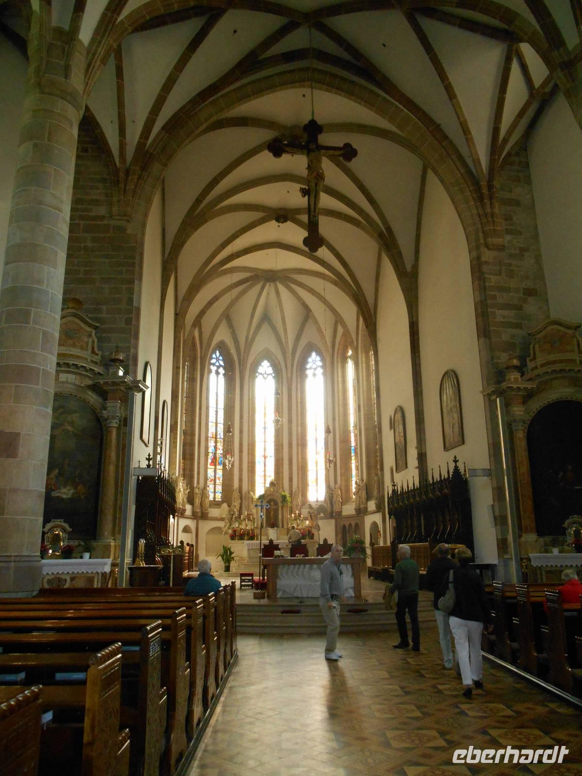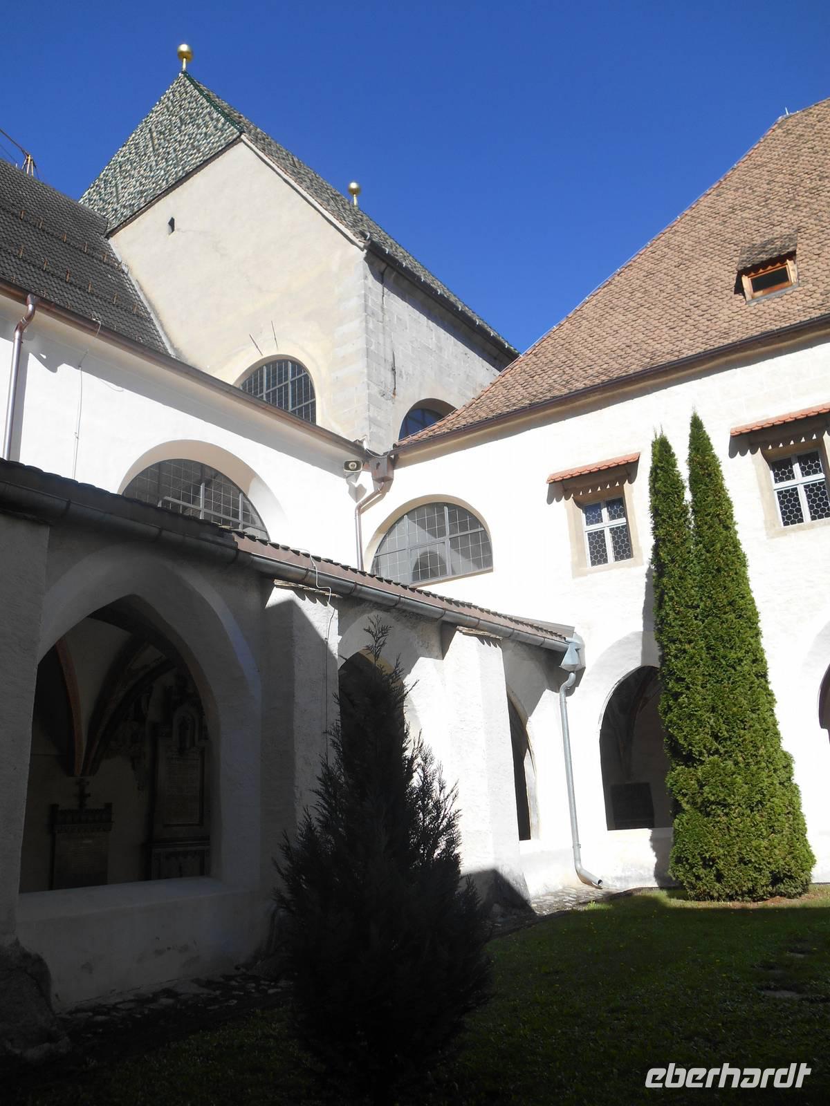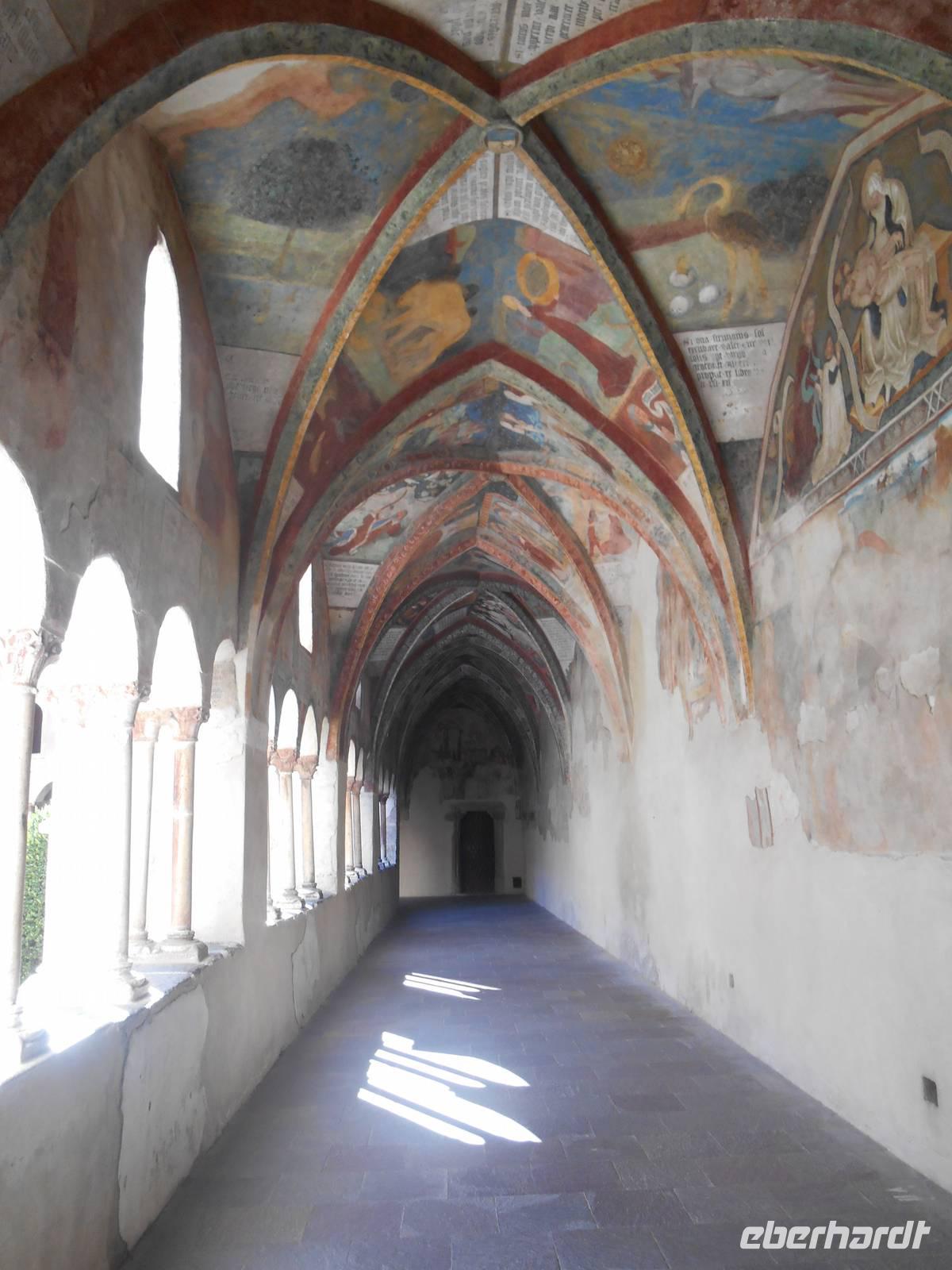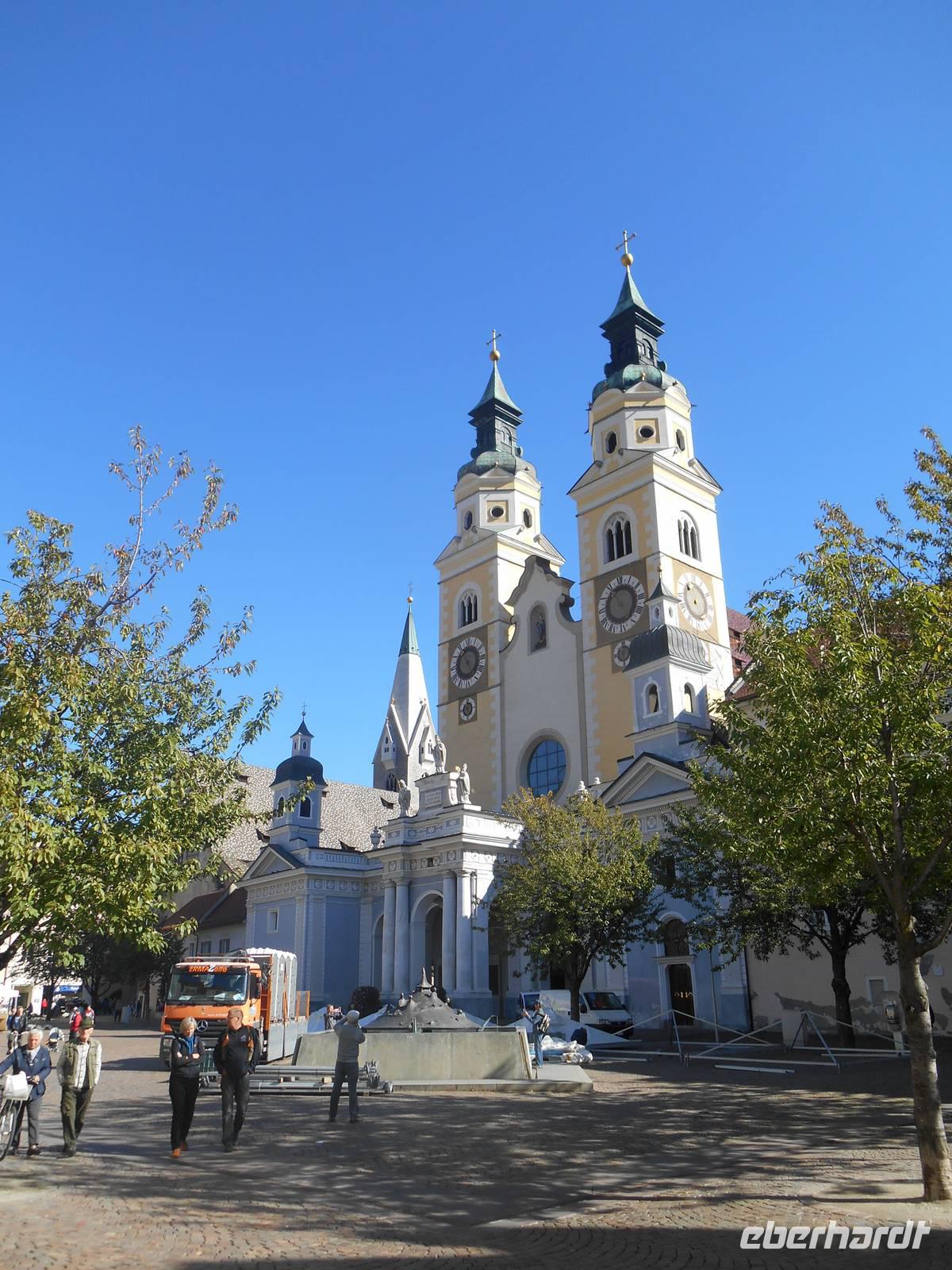 Wir fuhren heute vorerst nach Brixen. Wo Eisack und Rienz zusammenfließen, liegt die über 1.000-jährige Stadt. Die alte Bischofsstadt verbreitet mit ihren Gassen und Bürgerhäusern, Laubengängen und Brücken noch heute ein ausgesprochen romantisches Flair. Im Brixener Talkessel konnte man verschiedene prähistorische Siedlungen nachweisen - die Stadt in ihrer heutigen Form, die aus einem Feudalhof namens „Prishna" entstand, entwickelte sich zwischen dem 5. und 8. Jahrhundert. Der weithin sichtbare Dom - in seiner heutigen Gestalt ein barocker Neubau aus dem 18. Jahrhundert - deutet darauf hin, dass Brixen über Jahrhunderte Sitz eines Bistums und eines geistlichen Fürstentums war. Der Dom mit dem Kreuzgang und seinen spätgotischen Fresken gehören heute zu den herausragenden Sehenswürdigkeiten Brixens. Spuren der Geschichte fanden wir hier auf Schritt und Tritt. Besonders die Laubengänge der Altstadt erinnerten an Handelstraditionen. Wir entdeckten die Stadt ganz individuell und fuhren anschließend zum Kloster Neustift weiter. Das Mitte des 12. Jahrhunderts gegründete Kloster befindet sich nur etwa 3 Kilometer nördlich von Brixen und war jahrhundertelang Wohnsitz der Brixener Bischöfe und ein Zentrum des Landes für Bildung, Kunst und Wissenschaft. Das berühmte Augustiner-Chorherrenstift mit barocker Kirche besichtigten wir abschließend im Rahmen einer interessanten Führung. Vor dem heutigen Abendessen verabschiedeten wir uns ganz offiziell von unserer Gastgeberfamilie des Hotels - ein besonders großer Dank ging dabei an die Küche des Hauses!