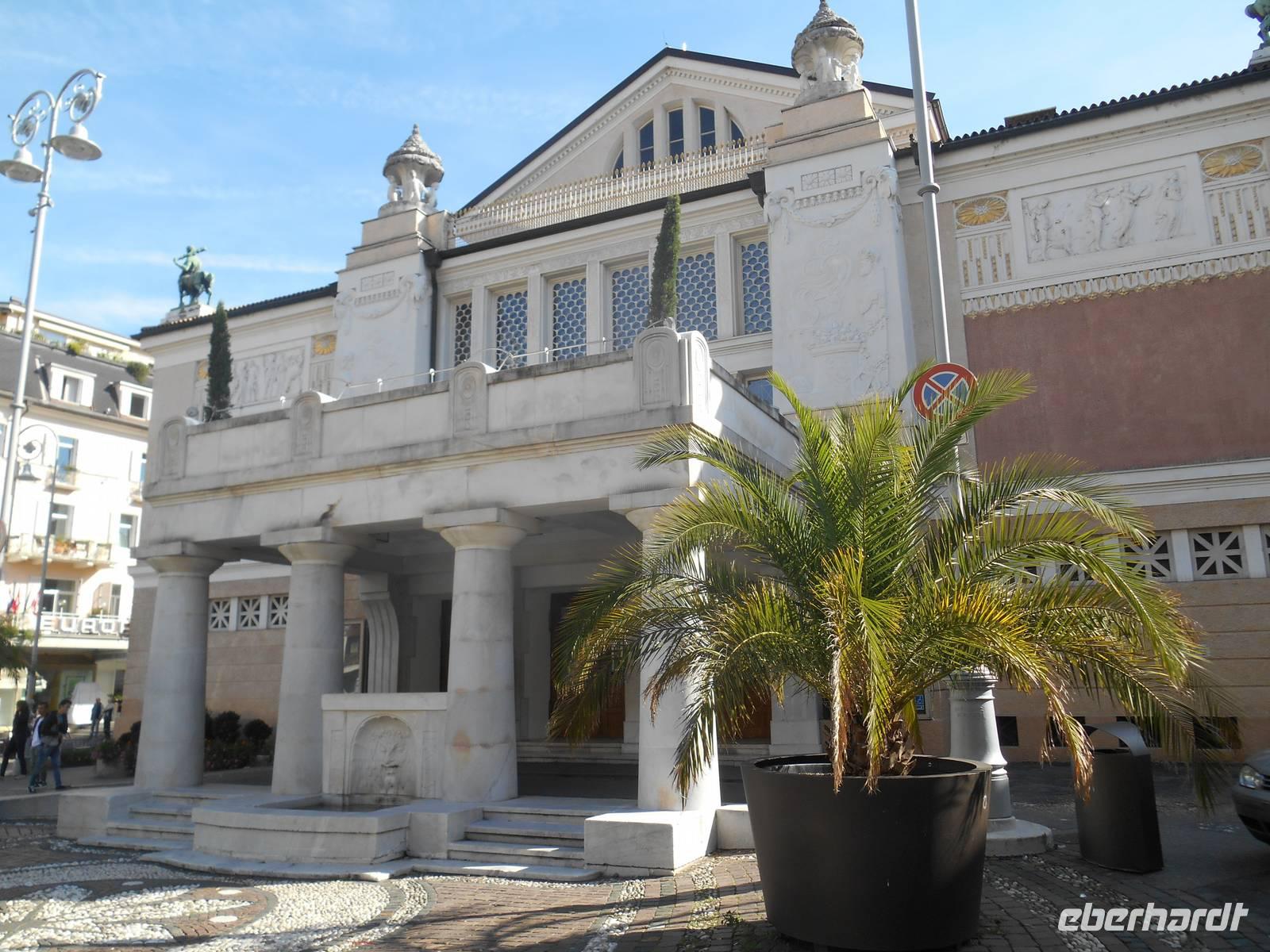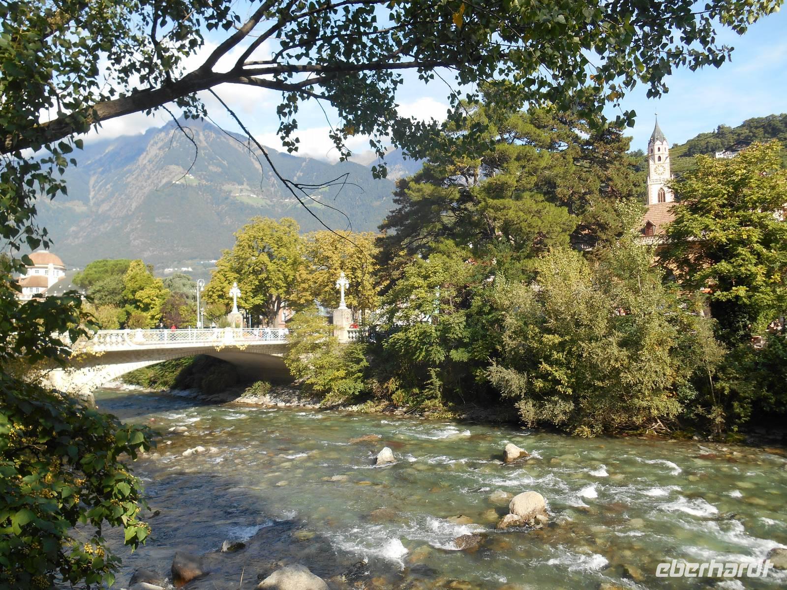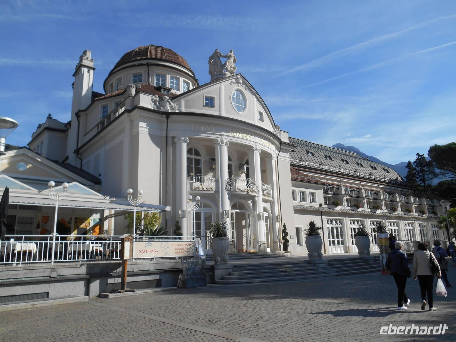 Am Vormittag erreichten wir Meran, für Südtiroler Verhältnisse haben wir es hier übrigens mit einer Großstadt zu tun - zwar nicht auf dem Papier und in den Statistiken, dafür reichen die gut 30.000 Einwohner der zweitgrößten Stadt Südtirols nicht aus - aber die Atmosphäre der Stadt an der Passer ist weltstädtisch-hektisch geprägt. Immer noch, obwohl die Glanzzeiten, als sich Adel und wohlhabendes Bürgertum aus ganz Europa in der habsburgischen Kurstadt tummelten, längst vorbei sind. Heute wird der verblichene Ruhm eher künstlich gepflegt und poliert. Meran liegt in einem weiten Talkessel, umgeben von Bergen. Nur nach Süden öffnet sich der Kessel weitflächig im breiten Tal der Etsch. Von den Gebirgsketten gegen die rauen Nordwinde geschützt, hat Meran ein überaus mildes, fast schon mediterranes Klima. Wir unternahmen einen kleinen gemeinsamen Stadtrundgang und sahen so beispielsweise das Stadttheater, eines der wenigen erhaltenen Jugendstiltheater Europas. Wir spazierten weiter durch die Laubengasse, deren ältesten Häuser in der zweiten Hälfte des 13. Jahrhunderts erbaut wurden und den Reichtum des aufstrebenden mittelalterlichen Städtchens widerspiegeln. Sehenswert ist auch die Stadtpfarrkirche St. Nikolaus aus dem frühen 14. Jahrhundert, die reiche Innenausstattung vereinigt die Kunstauffassungen von der Gotik bis zum Barock. Die meisten nutzen die freie Zeit in Meran für einen ausgiebigen Bummel auf der Kurpromenade - das Alte und das Neue Kurhaus, die Bauelemente des Klassizismus und des Jugendstils vereinigen, stehen nebeneinander. Den Nachmittag verbrachten wir auf dem Gelände des unweit von hier entfernten Schlosses Trauttmansdorff. Am sonnigen Hang oberhalb von Meran, wo einst Kaiserin Sissi flanierte, erstrecken sich die blühenden Gärten von Schloss Trauttmansdorff. Hier erhielten wir Einblicke in exotisch-mediterrane Landschaften, Ausblicke auf die umliegenden Bergketten und die Stadt Meran - die Gärten von Schloss Trauttmansdorff versammeln in einem natürlichen Amphitheater über 80 Gartenwelten. Nach sieben Jahren Bauzeit im Juni 2001 eröffnet, erstrahlt das Gesamtkunstwerk heute in seiner ganzen Pracht. 2005 wurde die 12 Hektar große Anlage sogar zum schönsten Garten Italiens gekürt! Inmitten der Gärten thront das Schloss, das Graf Trauttmansdorff 1850 aus mittelalterlichen Ruinen wieder errichten ließ. Kaiserin Elisabeth, Sissi, schätze Schloss Trauttmansdorff ab 1870 als Wintersitz. Heute beherbergt es das „Touriseum", Südtirols Landesmuseum für Tourismus, das uns auf höchst unterhaltsame Weise etwa zweihundert Jahre alpine Tourismusgeschichte näher brachte.
