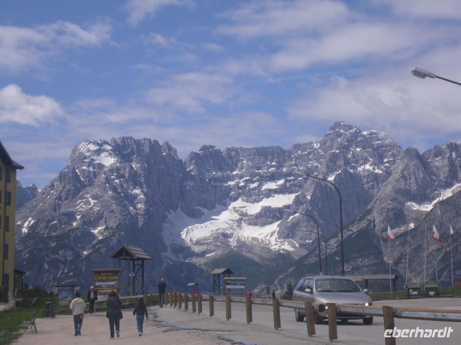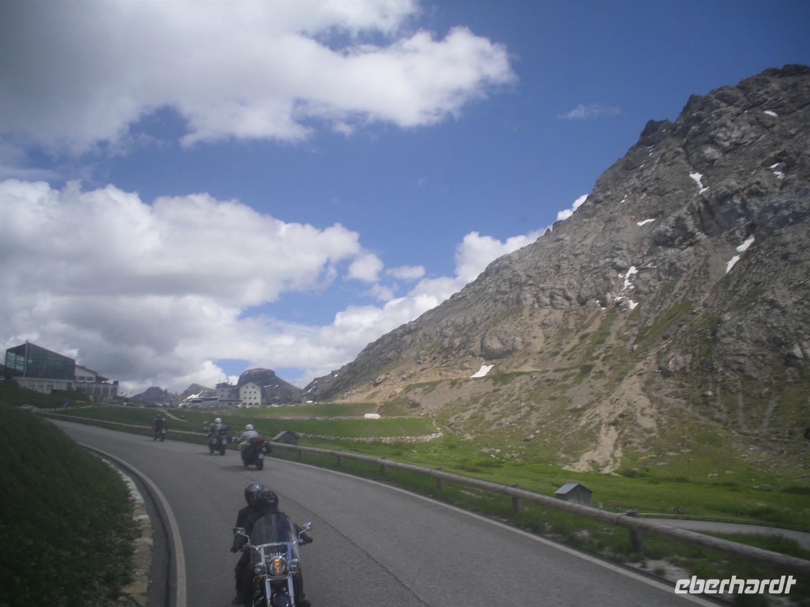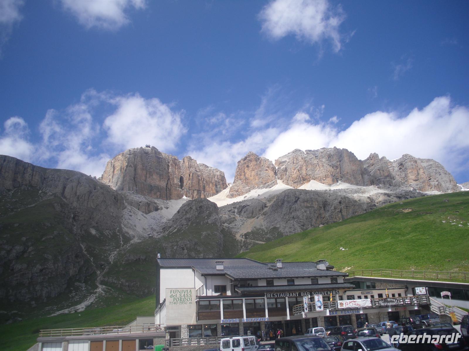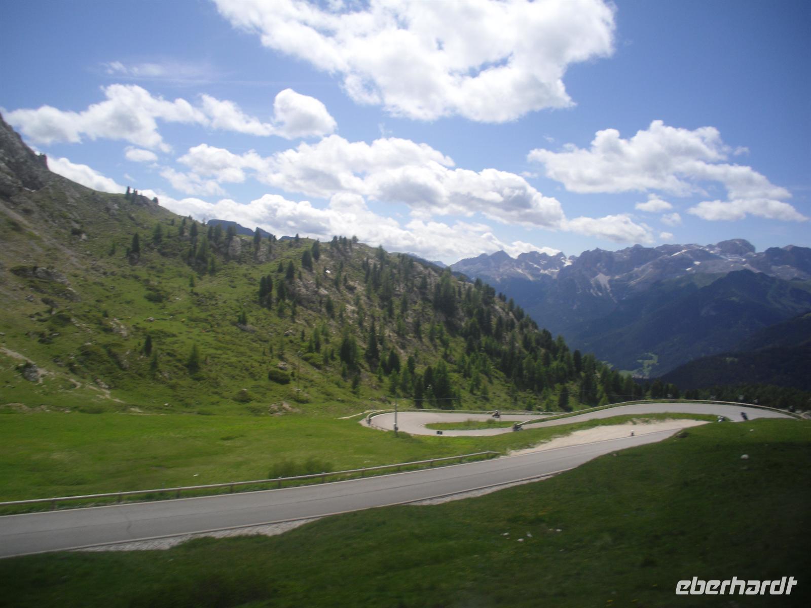 Nach einem für italienische Verhältnisse „reichhaltigen Frühstücksbuffet“ mit Wurst, Käse und Eiern - für einen Italiener völlig unnormal, wie man bereits am Morgen so viel essen kann! - brechen wir mit guten Wetterprognosen im Gepäck und unserem örtlichen Reiseleiter Siegfried Schwingshackl zur Großen Dolomitenrundfahrt auf.