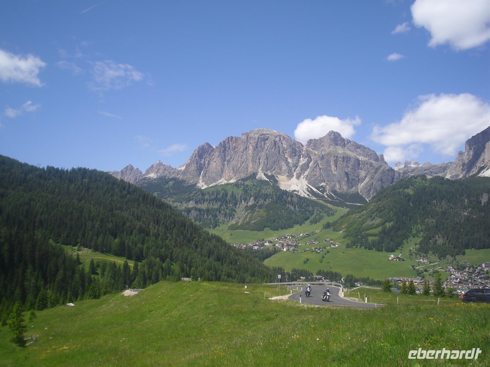 Nun fahren wir durch das Höhlensteintal mit einem kurzen Fotostopp, wo wir zumindest zwei der Drei Zinnen erblicken können, bis zum Misurina See. Weiter geht unsere Fahrt über den Passo Tre Croci und Cortina d´Ampezzo zum Falzárego-Pass. Hier machen wir unseren nächsten Halt, bevor wir über den Valparola-Pass, St. Kassian und Corvara zu unserer Mittagspause an einem schönen Aussichtspunkt oberhalb von Corvara ankommen. Heute gibt es übrigens leckere Bratwürste, die in dieser herrlichen Natur natürlich besonders gut schmecken! Gut gestärkt setzen wir unsere Dolomitenfahrt über den Campolongo-Pass, Arabba und hinauf zum Pordoijoch fort. Der letzte Pass des heutigen Tages ist das Sellajoch, wo wir auch einen letzten Stopp einlegen. Durch die lieblichen Orte des Grödnertales und über die Brennerautobahn kommen wir am frühen Abend nach Stilfes zurück. Mit den herrlichen Eindrücken des heutigen Tages genießen wir am Abend dann ein italienisches 4-Gang-Menü in unserem Hotel.