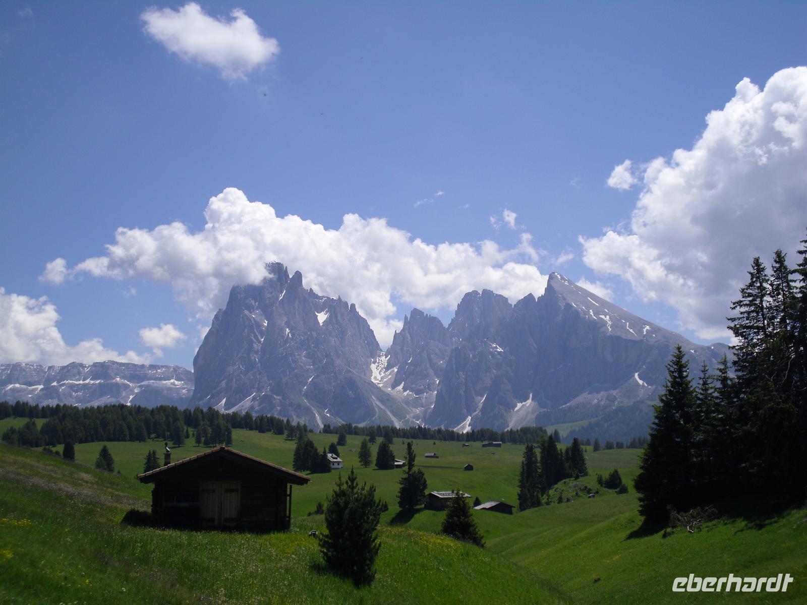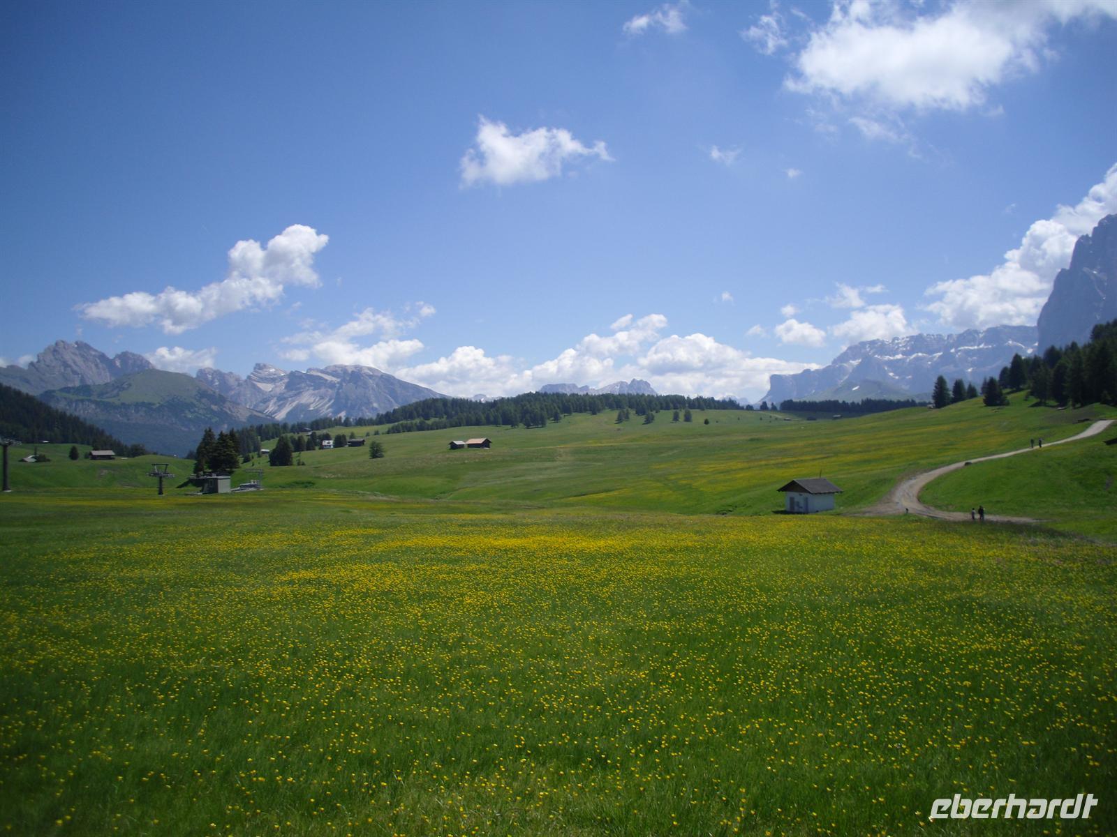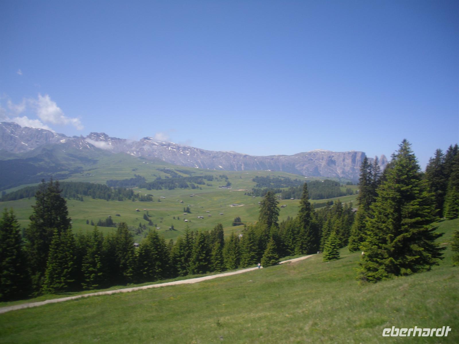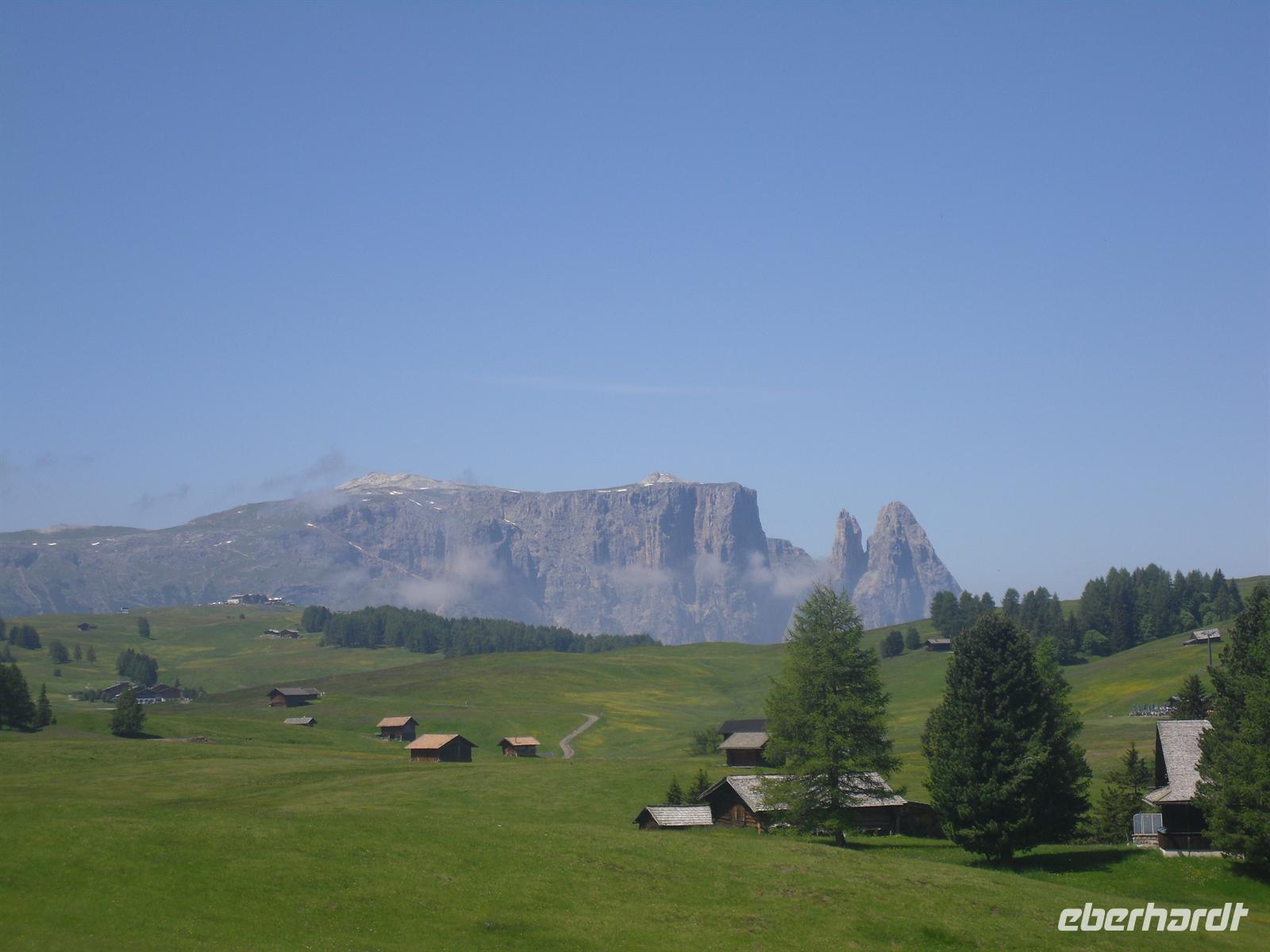 Am Morgen brechen wir nach St. Ulrich im Grödner Tal auf. Es ist herrliches Wetter und nichts steht einer kleinen Wanderung auf der mit reichlich 50 Quadratkilometern größten Hochalm Europas im Wege.