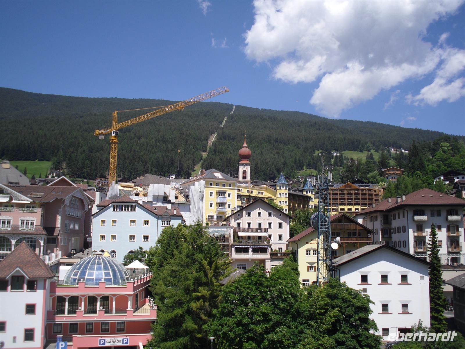 Mit einer modernen Umlaufbahn fahren wir von St. Ullrich aus in nur etwa knapp zehn Minuten auf die Seiser Alm hinauf. Die meisten von uns nehmen an einer gemeinsamen kleinen Wanderung mit mir teil. Leider sind viele Wege hier oben ziemlich nass, denn die letzten Wochen soll es hier in Südtirol sehr viel geregnet haben - naja, hauptsache heute lacht die Sonne...! Die Aussichten hier oben sind phantastisch - die Berge wie Langkofel und Schlern sind zum Greifen nah! Im Juni und Juli entfalten die blühenden Wiesen hier oben auf etwa knapp 2.000 Metern eine ungeahnte Pracht. In den letzten Jahrzehnten hat sich die Seiser Alm zu einem äußerst belebten Wander- und Wintersportgebiet entwickelt. Wieder unten in St. Ulrich angekommen, haben wir anschließend sogar noch etwas Zeit, um einen kleinen Spaziergang durch den Ort zu unternehmen.