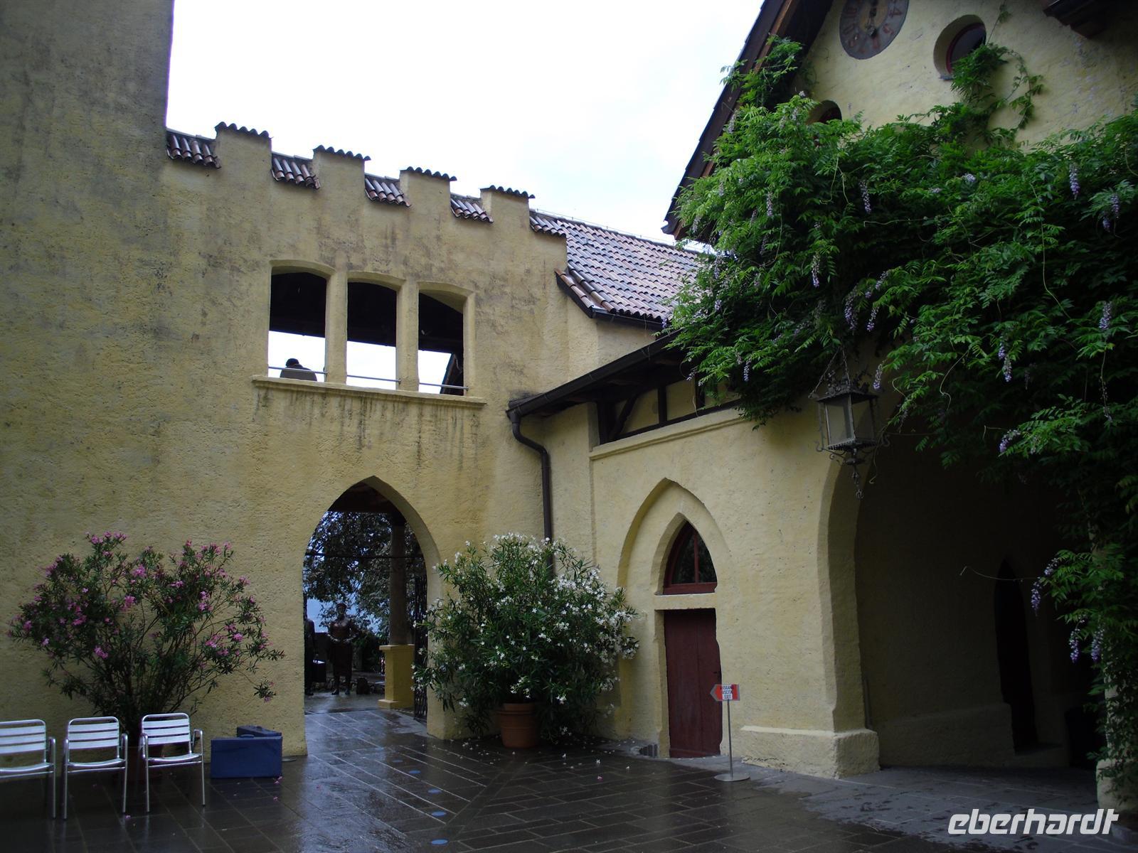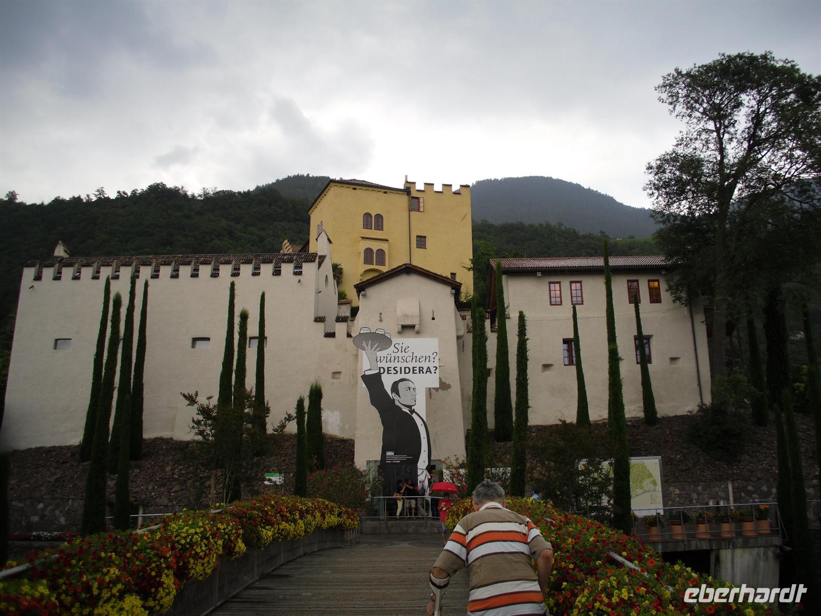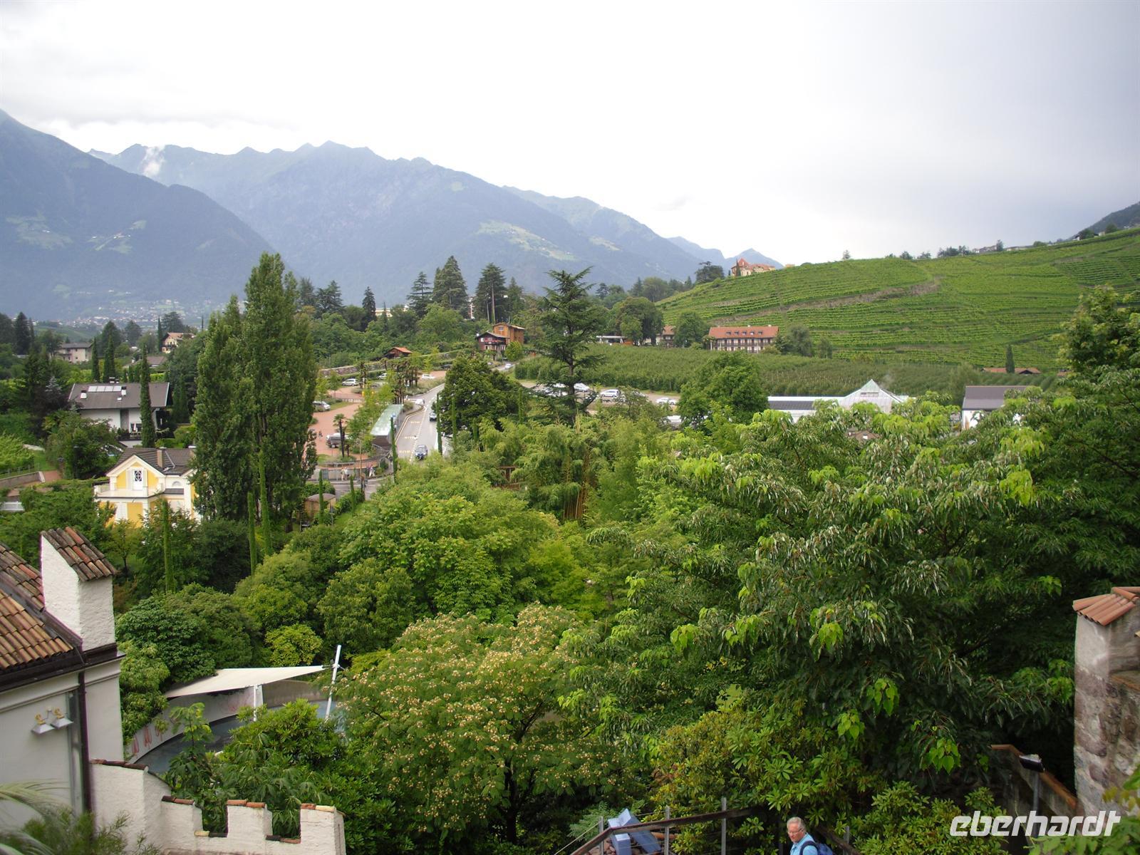 Von den Gebirgsketten gegen die rauhen Nordwinde geschützt, hat Meran ein überaus mildes, fast schon mediterranes Klima. Wir unternehmen einen kleinen gemeinsamen Stadtrundgang und sehen so beispielsweise das Stadttheater, eines der wenigen erhaltenen Jugendstiltheater Europas. Wir spazieren weiter durch die Laubengasse, deren ältesten Häuser in der zweiten Hälfte des 13. Jahrhunderts erbaut wurden und den Reichtum des aufstrebenden mittelalterlichen Städtchens widerspiegeln. Sehenswert ist auch die Stadtpfarrkirche St. Nikolaus aus dem frühen 14. Jahrhundert, die reiche Innenausstattung vereinigt die Kunstauffassungen von der Gotik bis zum Barock. Die meisten nutzen die freie Zeit in Meran für einen ausgiebigen Bummel auf der Kurpromenade - das Alte und das Neue Kurhaus, die Bauelemente des Klassizismus und des Jugendstils vereinigen, stehen nebeneinander. Es ist sehr schwül heute und ein Gewitter bahnt sich bereits bei der Abfahrt in Meran zum nur unweit von hier entfernten Schloss Trauttmansdorff an.... Am sonnigen Hang oberhalb von Meran, wo einst Kaiserin Sissi flanierte, erstrecken sich die blühenden Gärten von Schloss Trauttmansdorff.