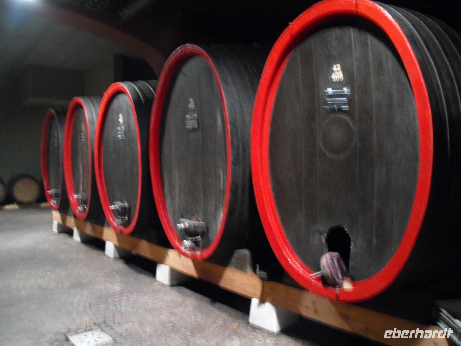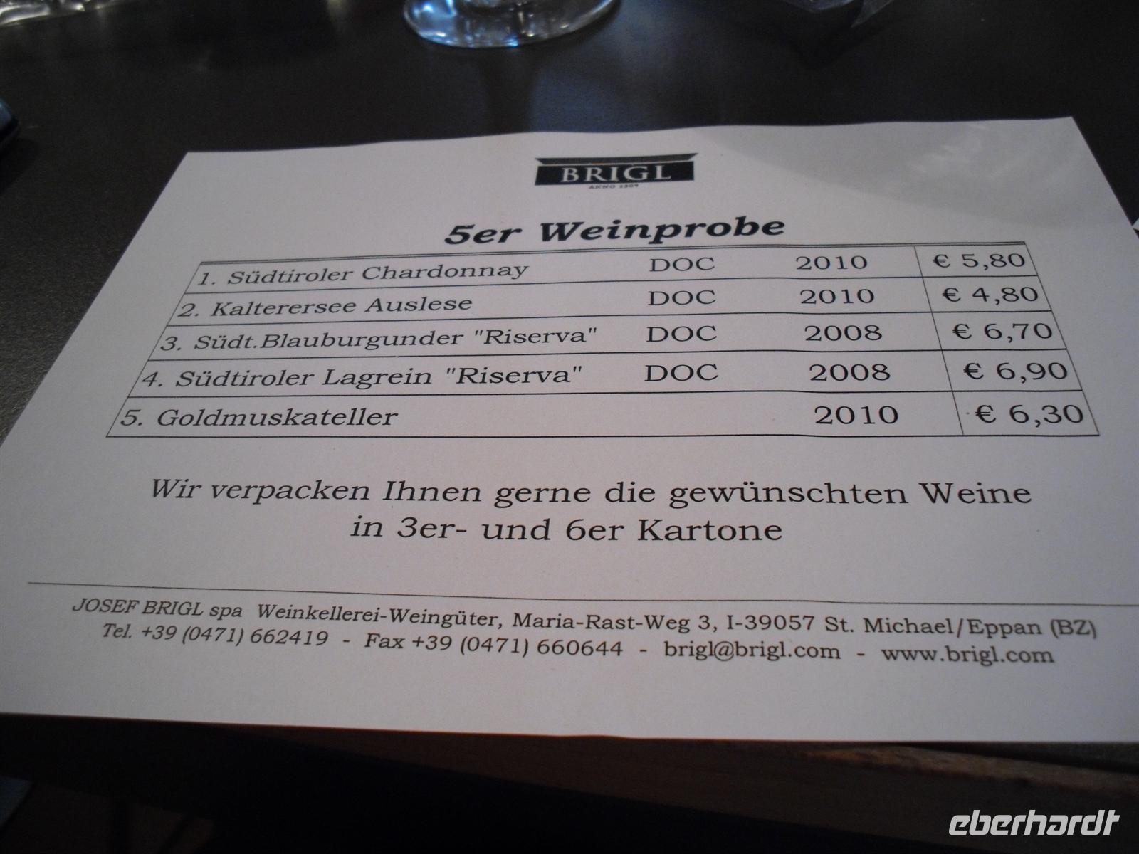 Die berühmten Weindörfer Salurn, Neumarkt und Tramin lassen wir hinter uns und legen kurz nach 13 Uhr unsere Mittagspause am Kalterer See ein. Der Kalterer See ist übrigens der wärmste Alpensee und hat den Weinen der ihn umgebenden Lagen den Namen gegeben. Unser Buschauffeur Günther hat heute eine deftige Kartoffelsuppe zubereitet und nun lassen wir es uns hier endlich schmecken - hm, wirklich lecker...! Jetzt haben wir auch eine Grundlage für die bevorstehende Weinverkostung geschaffen... In St. Michael erreichen wir am frühen Nachmittag das Weingut „Brigl“. Hier werden wir während einer kleinen Kellerführung mit dem Weinanbau vertraut gemacht und verkosten anschließend fünf auserlesene Südtiroler Weine. Neben vielen fachlich interessanten Informationen über die einzelnen Weine kommt auch der Humor nicht zu kurz - wir haben eine Menge Spaß! Selbst das Wetter kann uns heute nichts mehr anhaben, denn es regnet mittlerweile in Strömen...!
