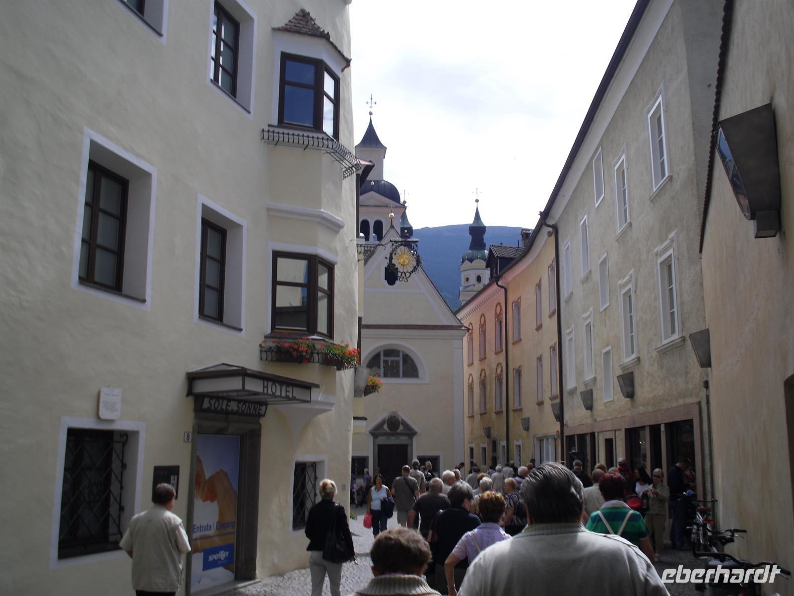 Wir fahren heute vorerst nach Brixen. Wo Eisack und Rienz zusammenfließen, liegt die über 1.000-jährige Stadt. Die alte Bischofsstadt verbreitet mit ihren Gassen und Bürgerhäusern, Laubengängen und Brücken noch heute ein ausgesprochen romantisches Flair.
