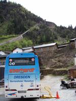 Aus Dresden kommend fahren wir zunächst Richtung Franken. Am Rasthof Vogtland die erste Pause, in behindertengerechten Transferfahrzeugen treffen dort auch die restlichen Gäste ein. Vorbei an Nürnberg führt uns die A9 nach München. Es ist wenig Verkehr, also quer durch die Stadt. Wir fahren an der neuen BMW Welt, dem Olympiagelände vorbei und erhaschen aus einiger Entfernung einen Blick auf die Frauenkirche. Am Luise Kieselbach Platz wird an der Untertunnelung gearbeitet - ein gigantisches Projekt. Der Waldfriedhof und das Schloß Fürstenried sind für uns die letzten Impressionen der bayerischen Landeshauptstadt. Weiter die Autobahn Richtung Garmisch. In Tirol angekommen geht es über Seefeld mit 16% Prozent Gefälle den Zirler Berg hinunter ins Inntal um bei Innsbruck unmittelbar wieder mit der Auffahrt zum Brennerpass zu beginnen. Die Autobahn welche auch über die berühmte Europabrücke führt, ist immer wieder ein Erlebnis. Vom Brenner aus folgen wir dem Eisack Fluss bis wir ins Pflerschtal abzweigen. Das Personal des Hotel Alpin erwartet uns schon.