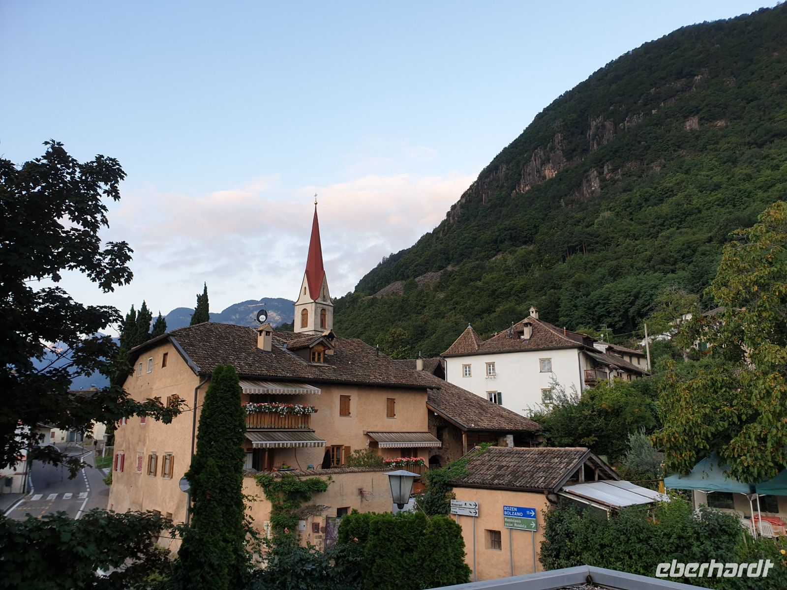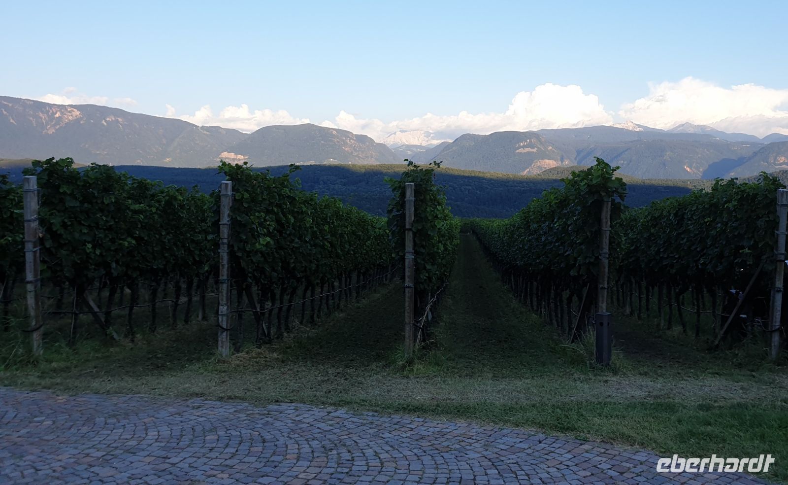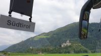 Die dort zusteigenden Gäste kommen aus dem Raum Hamburg, haben durch die vom Veranstalter organisierte Vorübernachtung in rollstuhlgerechten Zimmern eines hiesigen Hotels, einen entspannten Reisebeginn. Über Dresden, Chemnitz und das Vogtland geht es nach Nürnberg, wo sich unsere Reisegruppe komplettiert. Mit zwanzig Gästen erwartungsvollen Gästen rollt der Bus durch München weiter nach Garmisch, wo wir die Schanzenanlage des ehemaligen Olympischen Stadions sehen. Die Isar querend passieren wir Tirol, die Fahrt über den Seefelder Sattel, speziell die steile Abfahrt über den Zirler Berg hinunter ins Inntal bei Innsbruck bietet dabei besonders schöne Ausblicke. Hinter der Tiroler Landeshauptstadt, der Blick geht zum Bergisel mit seiner von Hadid entworfenen Schanze, beginnt die Auffahrt zum Brenner. Die Passhöhe, niedrigster aller Übergänge über den Hauptalpenkamm, markiert dann gleichzeitig den Übertritt nach Südtirol. Talwärts fahrend queren wir nun das Pflerschtal. Nicht wenige unserer Gäste kennen diese Destination als Standort der bisherigen Südtirolreise "mit und ohne Rollstuhl", welche sicher auch wieder einmal in unserem Reiseprogramm zu finden sein wird. Diesmal wird uns allerdings der Süden Südtirols, Teile des Veneto und Trentos interessieren. Also rollt der Bus weiter gen Süden; vorbei an Sterzing, Brixen nach Bozen, wo wir die Brennerautobahn verlassen und nach einigen Kilometern entlang der Südtiroler Weinstraße Oberplanitzing, eine Fraktion der Gemeinde Kaltern erreichen.