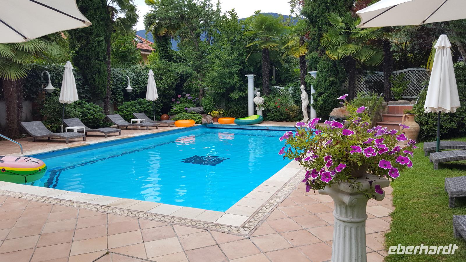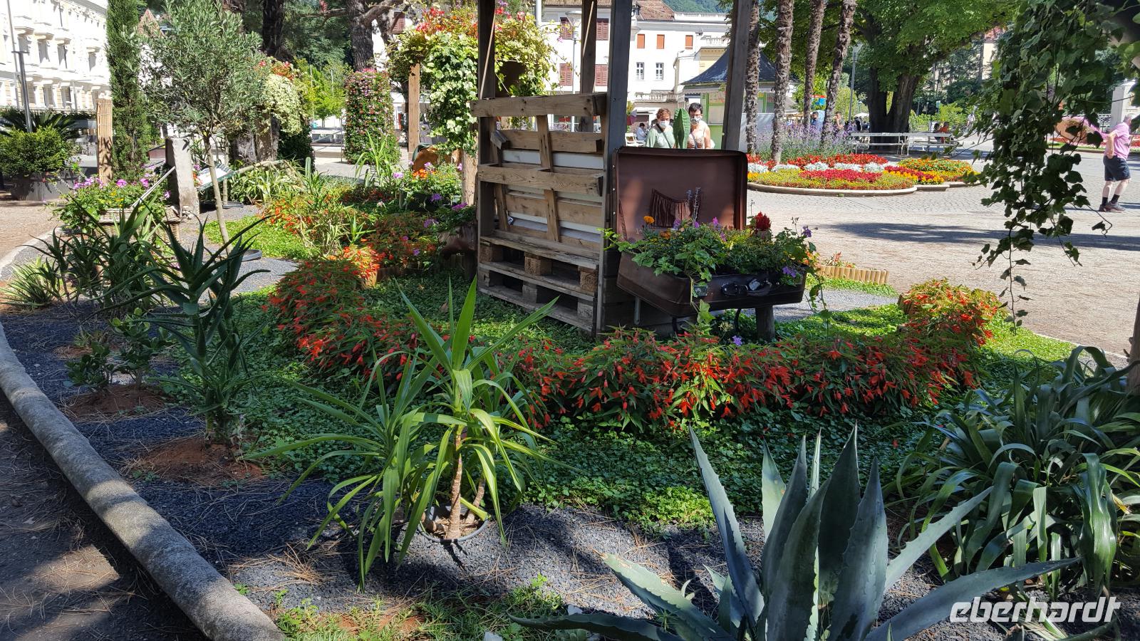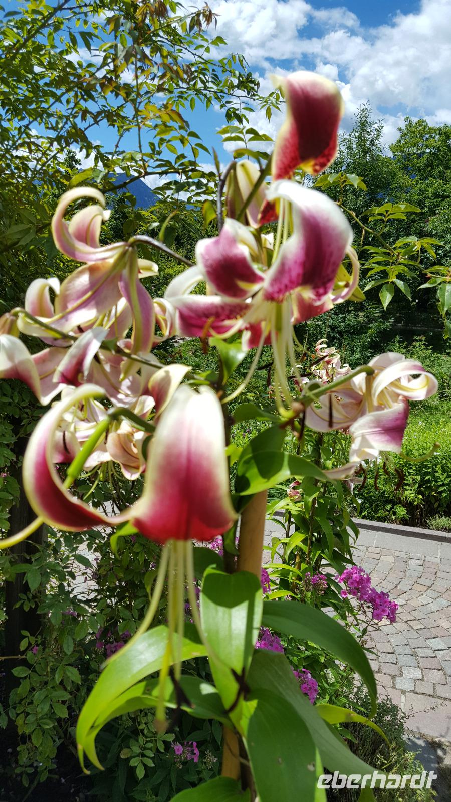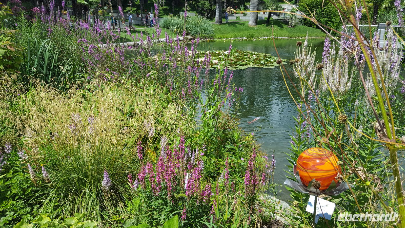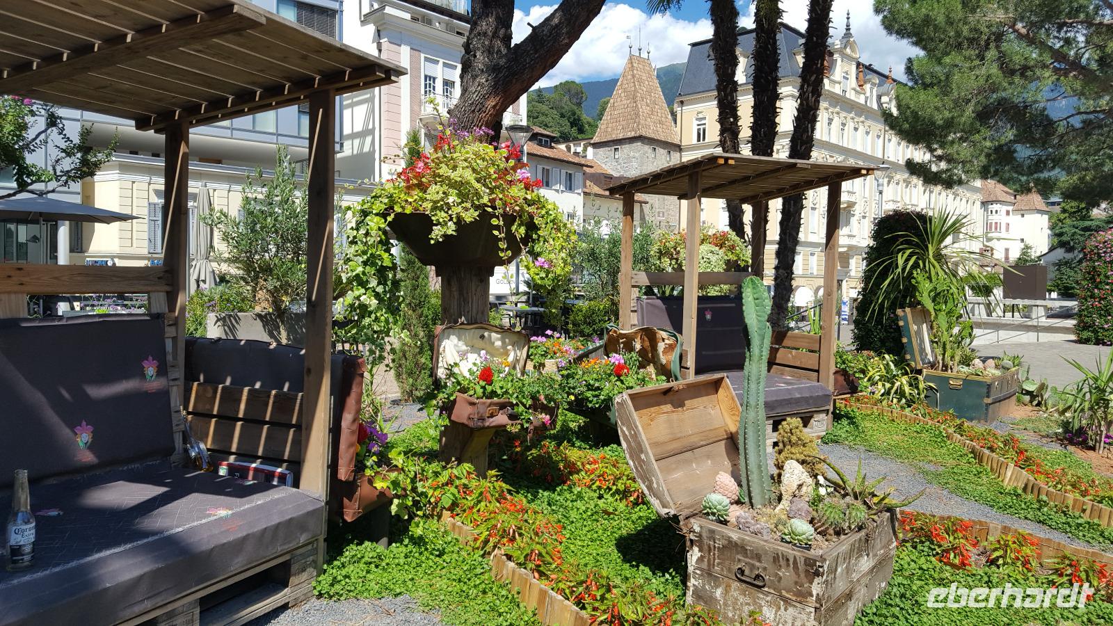Am letzten Tag führte uns ein kurzer Spazierweg zum Schloss Trauttmansdorff mit den blühenden Gartenwelten. Auf 12 Hektar wurden in unterschiedlichen Ebenen verschiedene Pflanzen und Bäume angebaut, die sich harmonisch in die Landschaft einfügten. Diverse Wasserläufe und ein See mit Teichrosen schaffen eine harmonische Atmosphäre, die zum Träumen einlädt. Abwechslungsreich sind die verschiedenen Aussichtspunkte, die den weiten Blick ins Passeier Tal und ins Vinschgau ermöglichten. 25 bis 30 fleißige Gärtner bemühen sich die ca. 80 Gartenlandschaften mit Pflanzen aus aller Welt zum Blühen zu bringen.