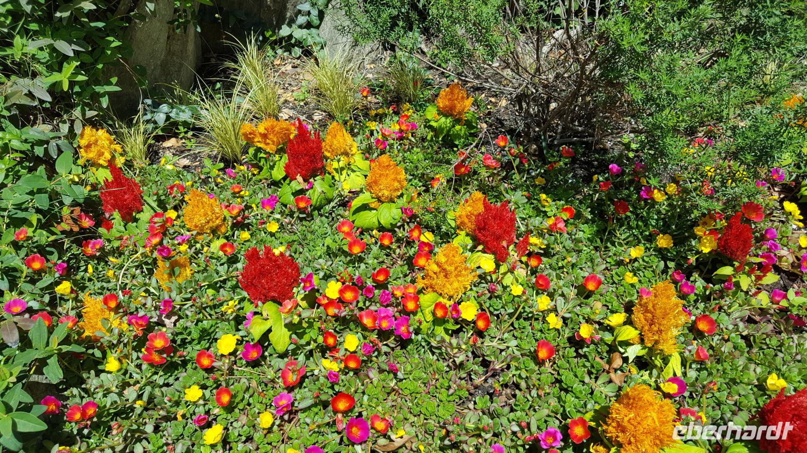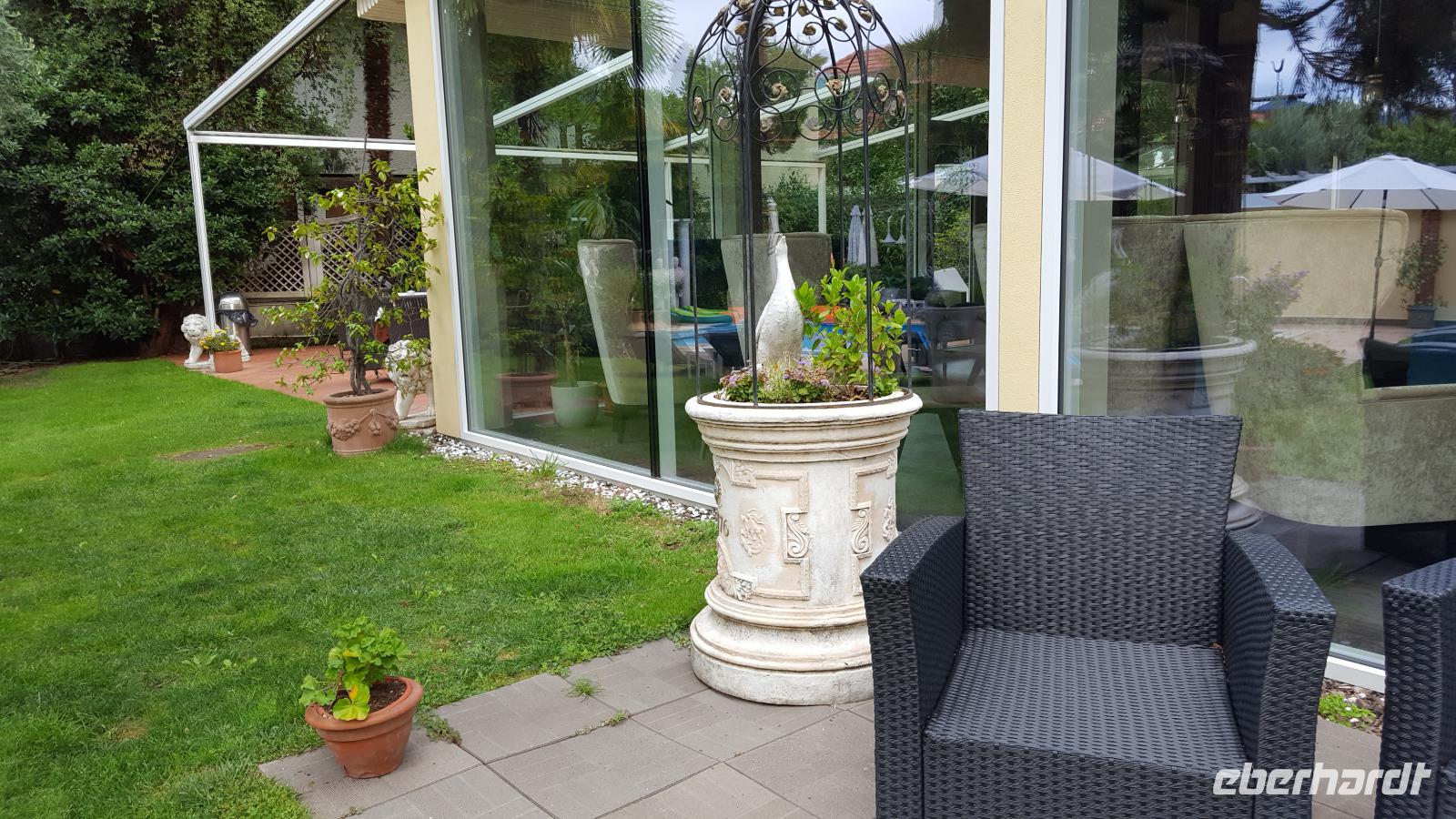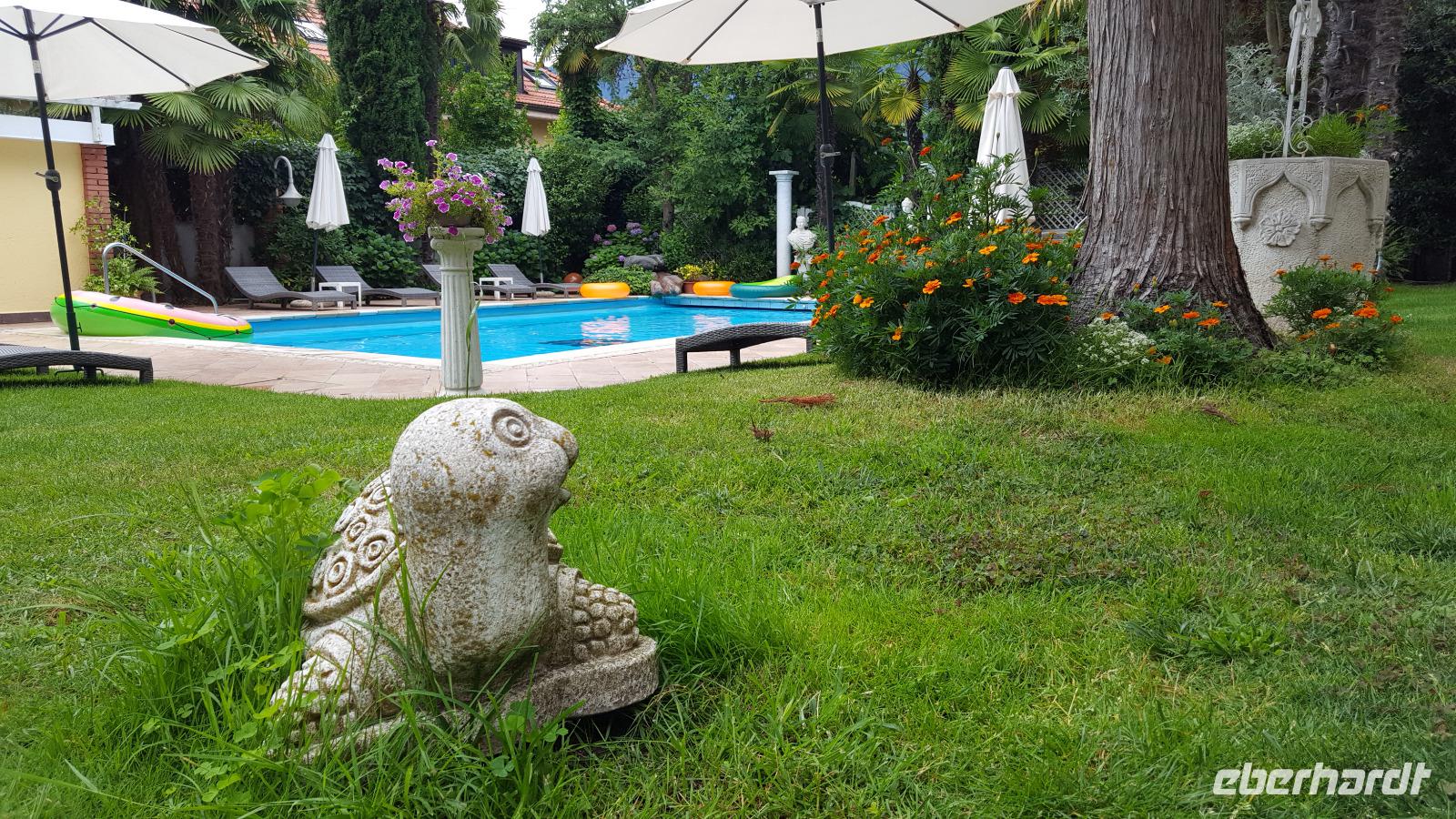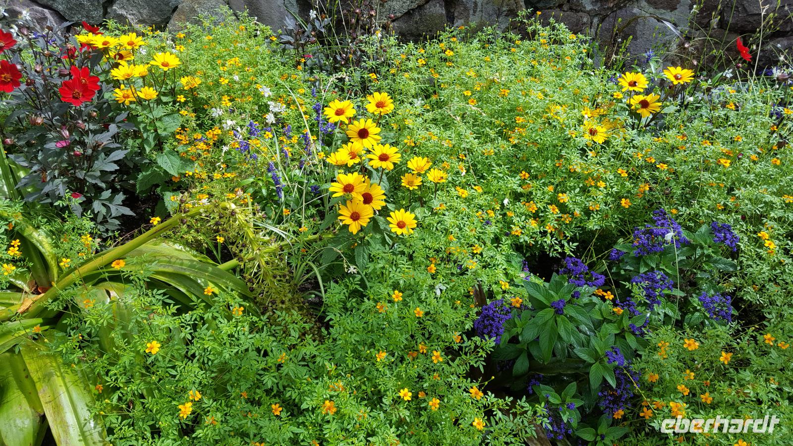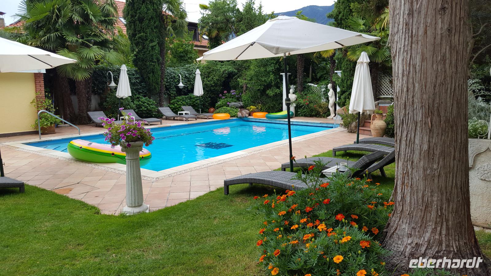 Am letzten Tag führte uns ein kurzer Spazierweg zum Schloss Trauttmansdorff mit den blühenden Gartenwelten. Auf 12 Hektar wurden in unterschiedlichen Ebenen verschiedene Pflanzen und Bäume angebaut, die sich harmonisch in die Landschaft einfügten. Diverse Wasserläufe und ein See mit Teichrosen schaffen eine harmonische Atmosphäre, die zum Träumen einlädt. Abwechslungsreich sind die verschiedenen Aussichtspunkte, die den weiten Blick ins Passeier Tal und ins Vinschgau ermöglichten. 25 bis 30 fleißige Gärtner bemühen sich die ca. 80 Gartenlandschaften mit Pflanzen aus aller Welt zum Blühen zu bringen.