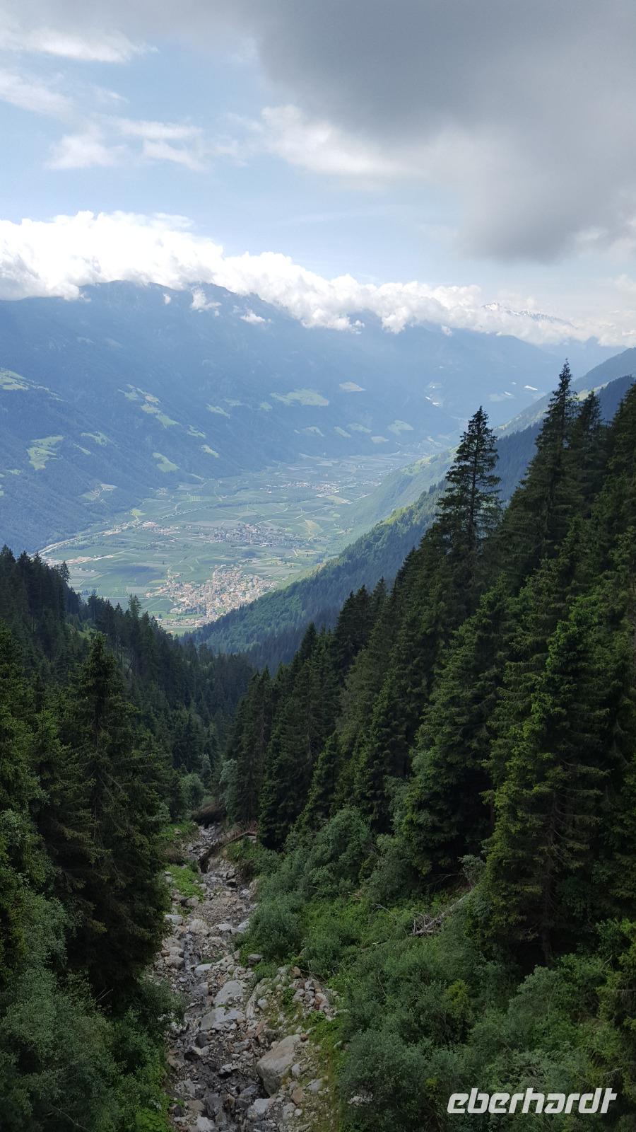 Grüne Täler mit ländlichem Charme erblickten wir im Vinschgau im oberen Teil des Etschtals. Der Höhepunkt des Tages liegt in der 1000 Stufen-Schlucht, die eine oder andere Schweißperle auf die Stirn zauberte. Die Belohnung ist die fantastische Aussicht vom Sonnenberg auf Naturn. Im Linthof kehrten wir ein zur verdienten Mittagspause. Ästhetisch lag unter uns Schloss Juval, die Sommerresidenz von Reinhold Messner. Weiter ging es stetig bergauf- und bergab bis zum Untervernatschhof am Katharinberg. Dieser Ort lag verträumt im Schnalstal.