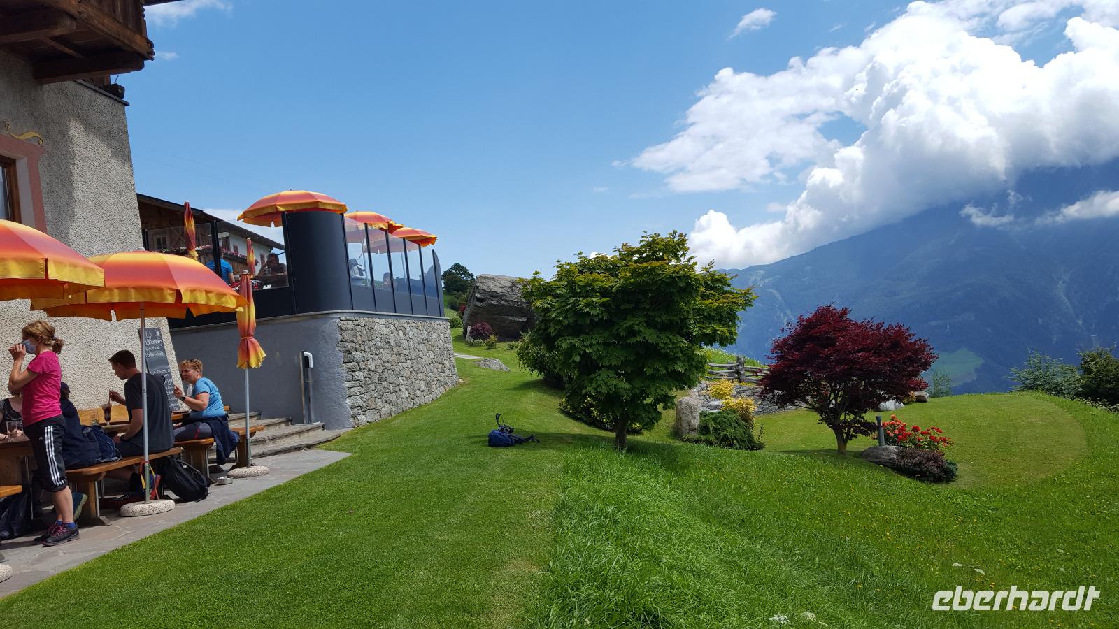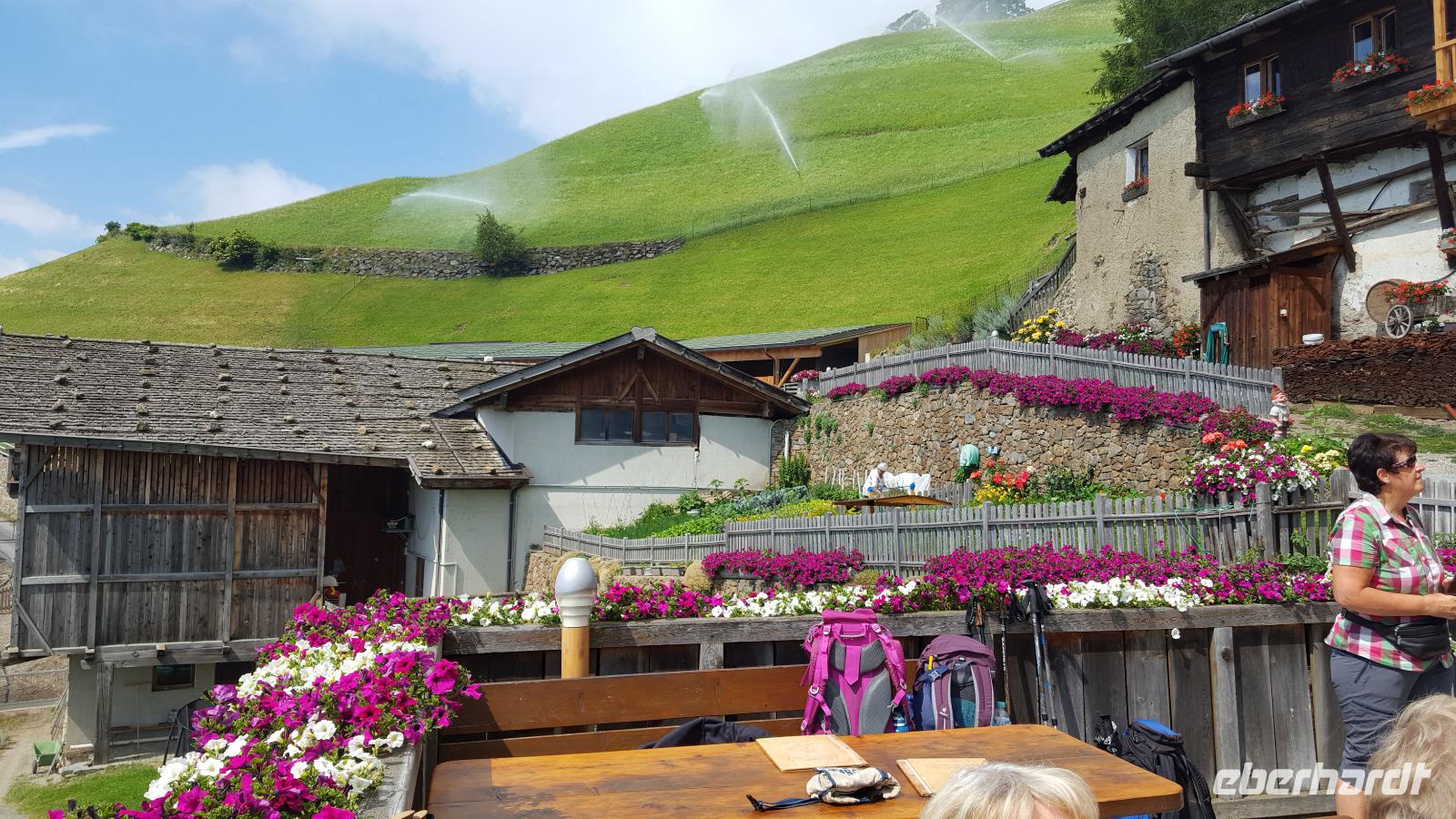 1.200 Höhenmeter schlängelte sich der Wanderweg hinab zur Lazinser Alm. Nach einer Rast gelangen wir nach Pfelders, im Pfelderer Tal, einem Seitental des hinteren Passeiertals auf 1.630 Höhenmeter. Dort wurden wir erwartet und ein Shuttle Bus brachte uns zurück nach Meran.