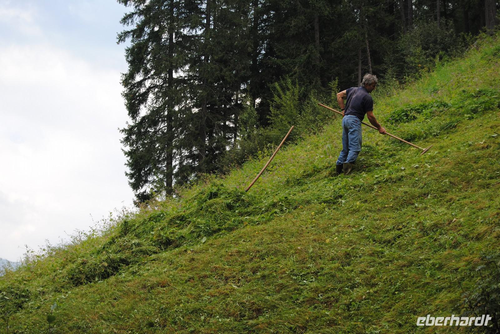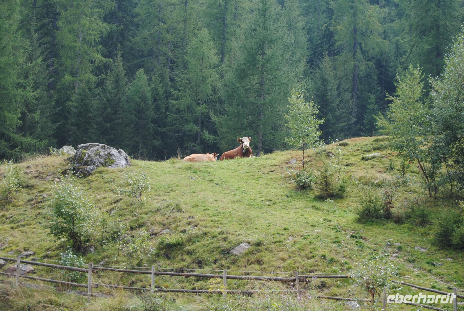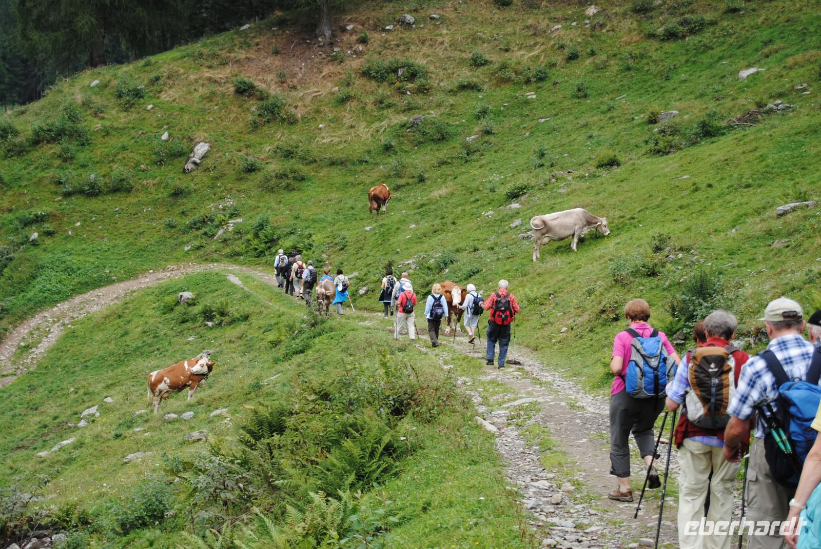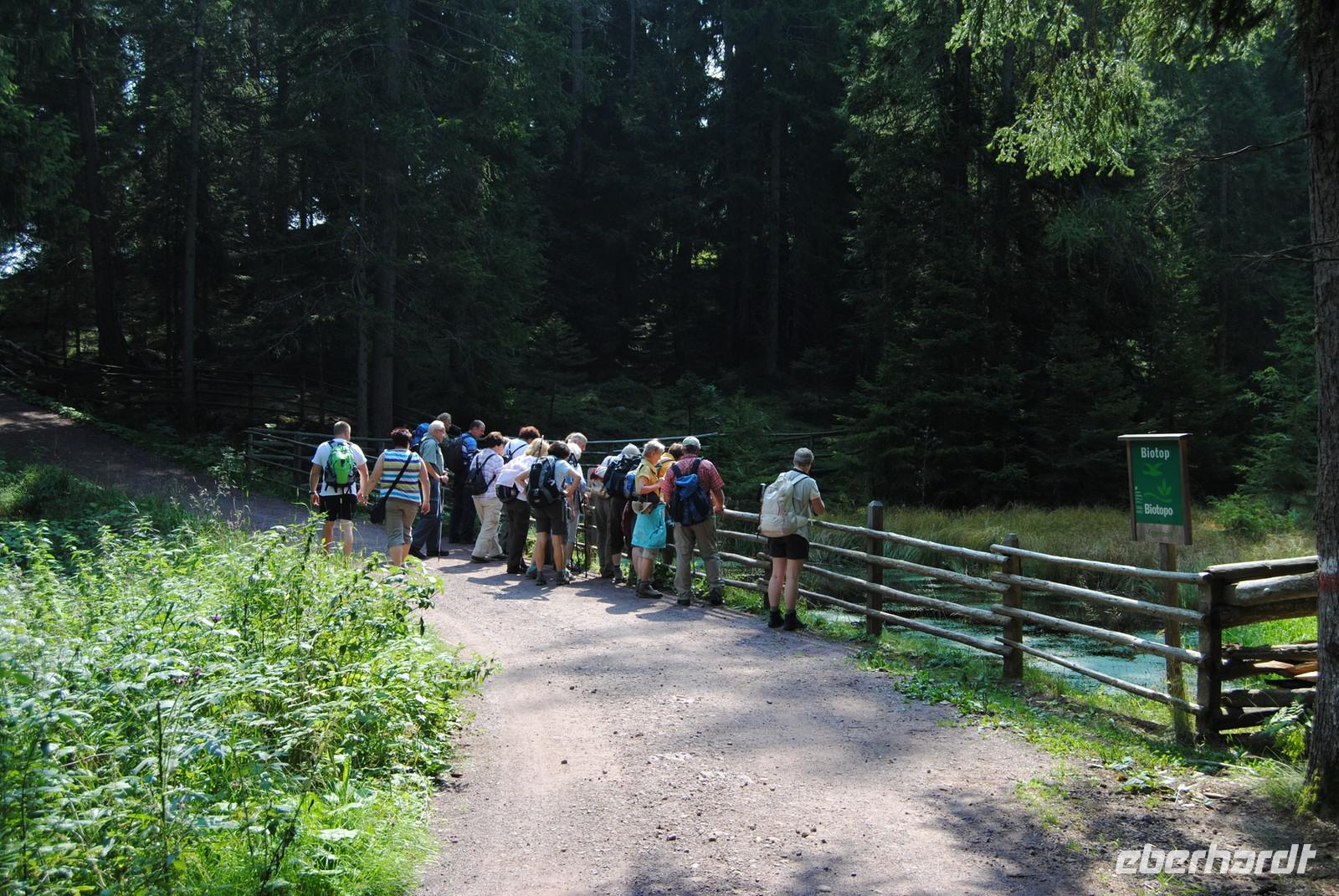 Da über Nacht Regenwolken die Region um Meran einhüllten, entschieden wir uns an diesem Tag anstatt der Wanderung um das Haflinger Gebiet zu einer Wanderung in das Ultental. Auf der Busfahrt bis zum Ausgangspunkt unserer Wanderung, dem Ort St. Nikolaus, erzählte uns Toni interessantes über das autonome Südtirol und deren Geschichte. Nachdem wir den Bus in St. Nikolaus verließen, wanderten wir über den Ultener Höfeweg bis fast in den Ort St. Gertraud. Hier nahmen wir über den Dächern des kleinen Ortes im Ultener Hof unser Mittag ein und probierten so manche Tiroler Köstlichkeit. Auf dem Rückweg nach St. Nikolaus besuchten wir die unterhalb von St. Gertraud die Ultener Lärchen, die mit einem Alter von fast 2000 Jahren, die ältesten Nadelbäume Europas sind. Im Anschluss folgten wir weiter dem Ultener Höfeweg und erreichten am Nachmittag wieder St. Nikolaus, wo uns bereits unser Busfahrer Roy mit dem Bus erwartete.