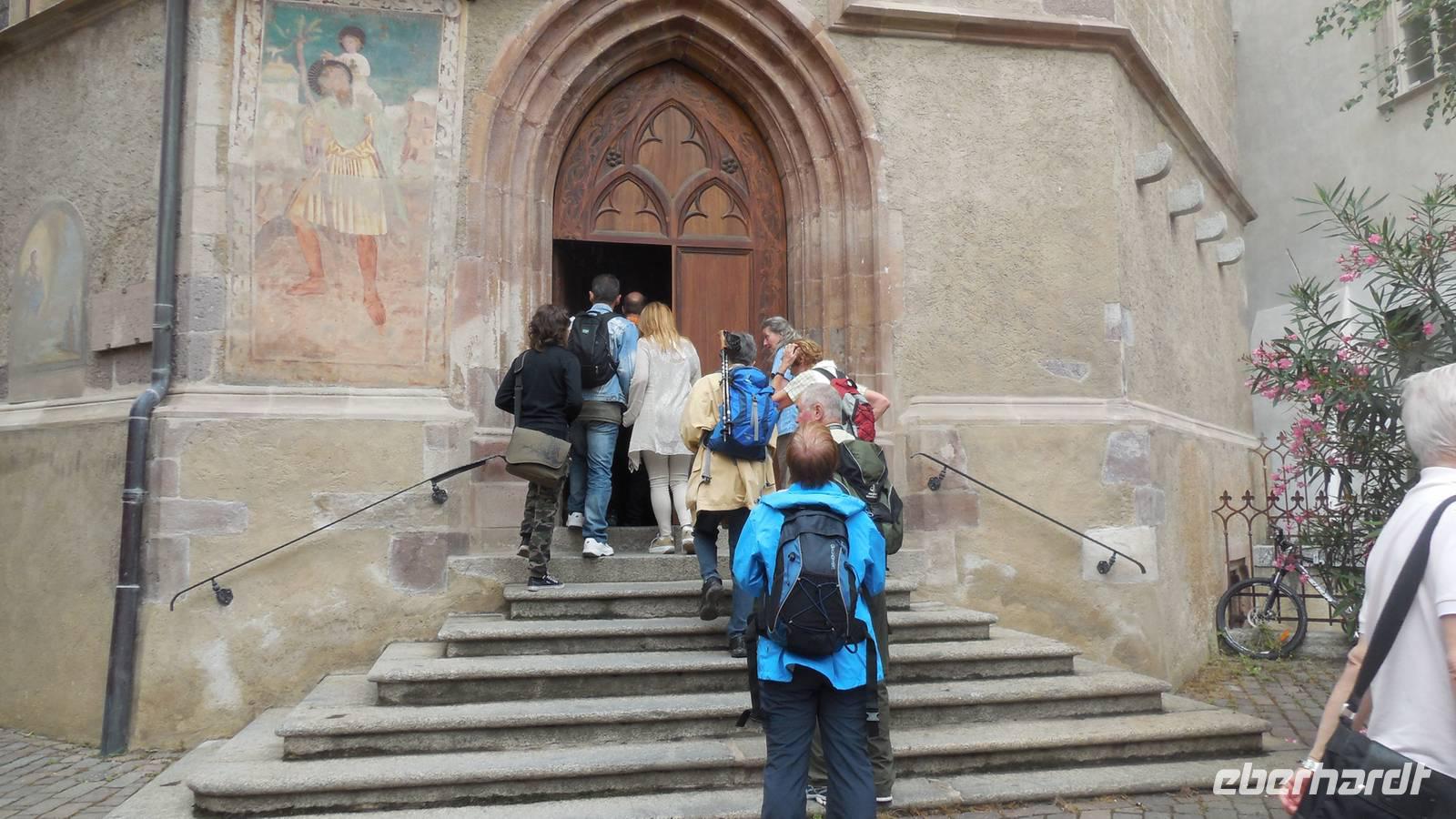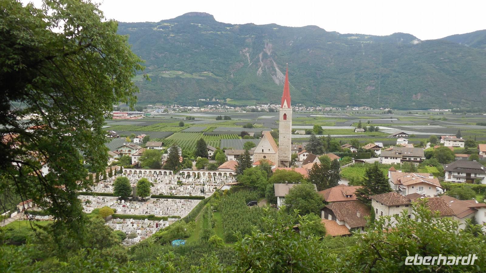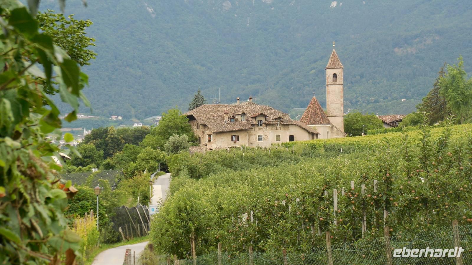 Zum ersten Wandertag fuhr uns Frank ins nahgelegene Örtchen Töll, von dem aus unsere heutige Tour startete. Der einfache und größtenteils flache Marlinger Waalweg war genau richtig als Auftakt für diese Woche. Durch die eindrucksvollen Apfelplantagen wanderten wir durch Wiesen und Weinberge bis nach Lana. Zwischendurch legten wir die eine oder andere Pause ein, bei der sich jeder etwas stärken und die Aussicht genießen konnte. Unser Ziel war Niederlana und die Besichtigung des berühmten Schnatterpeck-Flügelaltars. Der hiesige Kirchenführer Sepp erklärte uns ein paar wichtige Dinge zum Altar und wir konnten den beeindruckenden Flügel-Altar auf uns wirken lassen. Anschließend erwartete uns Frank an der Kirche, um uns zurück ins Hotel zu bringen. Den restlichen Nachmittag konnte jeder individuell verbringen. Am Abend erwartete uns wieder ein schmackhaftes Abendessen.