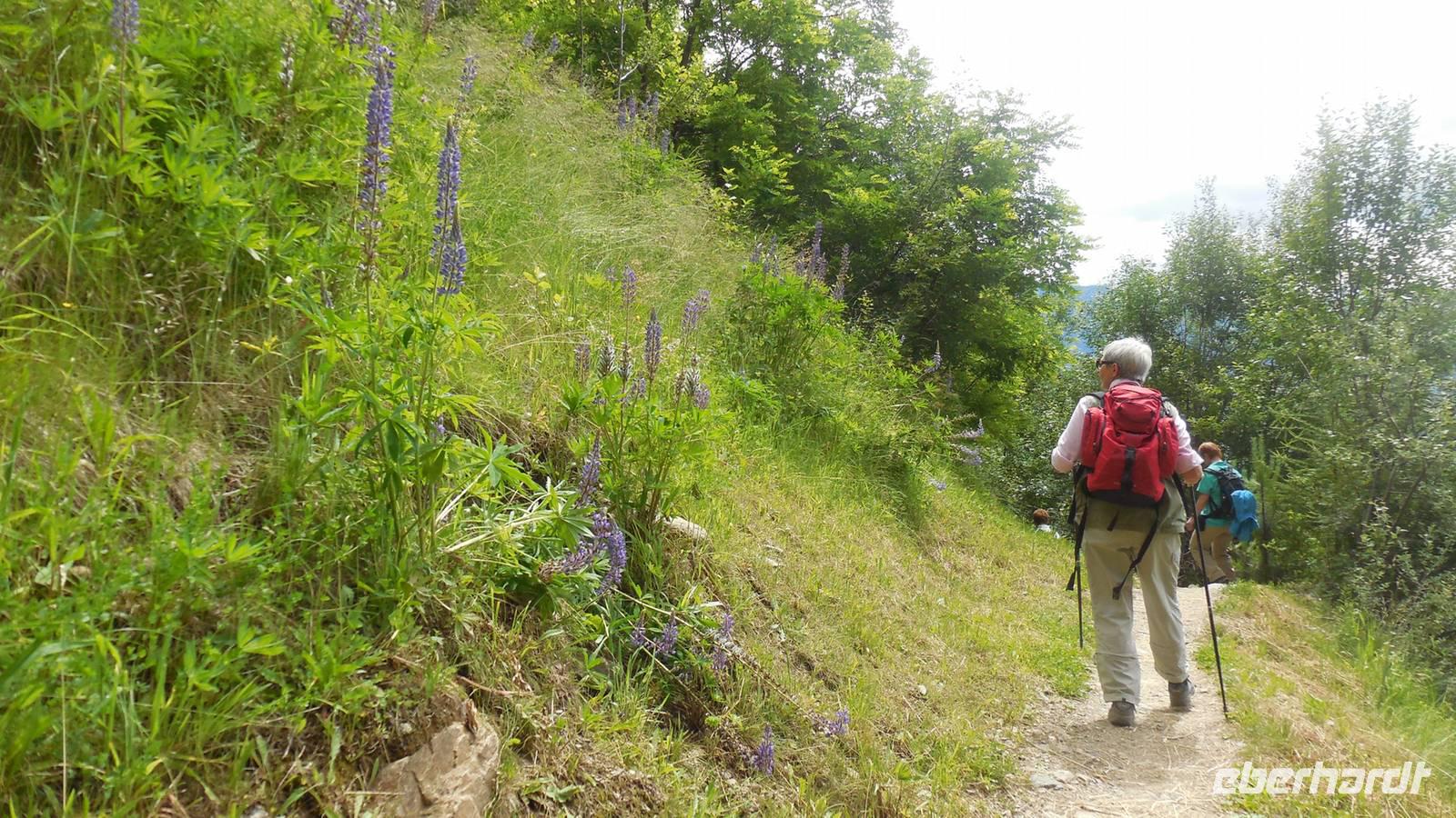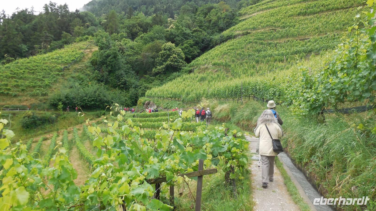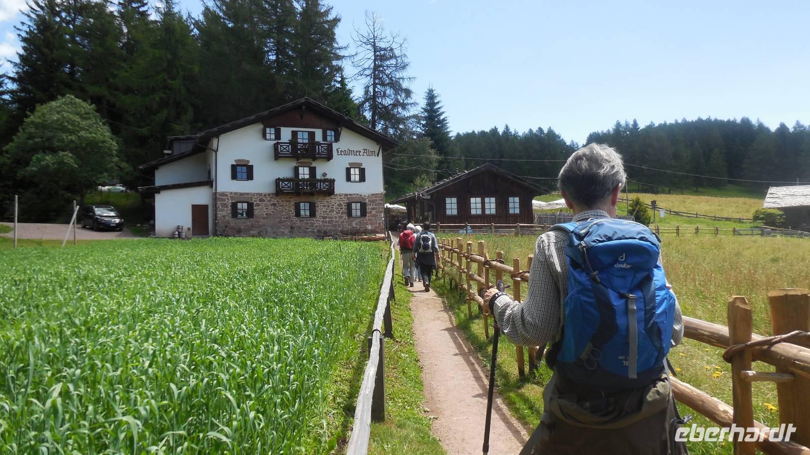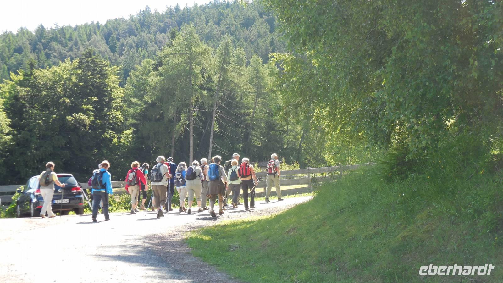Nach einer gewittrigen und regnerischen Nacht, hatte sich das Wetter zum Glück beruhigt. Gut gesättigt von einem leckeren Frühstück, begrüßte uns unser Wanderführer Toni und stimmte uns in wohltuend gut gelaunter Art auf den heutigen Tag ein. Toni war ein zünftiger Wanderbursche aus Eppan, der seine Leidenschaft auch zur Berufung gemacht hatte, und das er seine Arbeit gern macht, war gleich im ersten Moment zu spüren.
