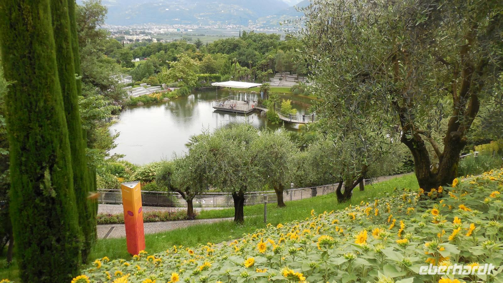 Unseren letzten Urlaubstag vor der Heimreise, der eigentlich für alle zur freien Verfügung stand, verbrachten wir wieder aktiv. Ich freute mich, dass alle an der fakultativen Wanderung zum Kalterer See teilnehmen wollten. Da uns aber Toni heute leider keine Gesellschaft leisten konnte, vertrat ihn sein Freund Franko um uns zu dieser Wanderung zu begleiten. Wir fuhren weiter südlich bis Eppan und freuten uns auf die heutige Tour erst zum kleinen und großen Montiggler See und weiter zum Kalterer See. Der Weg führte uns größtenteils durch den Wald, bevor wir als erstes am kleinen Montiggler See ankamen. Dort nutzten wir das sonnige Wetter für ein paar Fotos und liefen weiter zum Großen Montiggler See. Auch ein Gruppenfoto durfte natürlich nicht fehlen. Unser Ziel war nun nicht mehr so weit und so spazierten wir durch das Frühlingstal zum Kalterer See. Dort erwartete uns bereits Frank, doch bevor wir den Heimweg antraten, genehmigten wir uns noch ein leckeres Eis oder ein warmes Süppchen. Anschließend fuhren wir wieder nach Meran, der Großteil der Gruppe nutzte den freien Nachmittag um das bekannte Schloss Trauttmansdorff und seine Gärten zu besuchen. Vier Rund- und drei Panoramawege erschließen über 80 Gartenlandschaften mit Pflanzen aus aller Welt, wechselnden Blühhöhepunkten und beeindruckenden Ausblicken auf die umgebende Bergwelt. Zum Abschluss einer gelungenen Wanderwoche ließen wir uns noch einmal vom Hotelteam bei einem schmackhaften Menü verwöhnen.