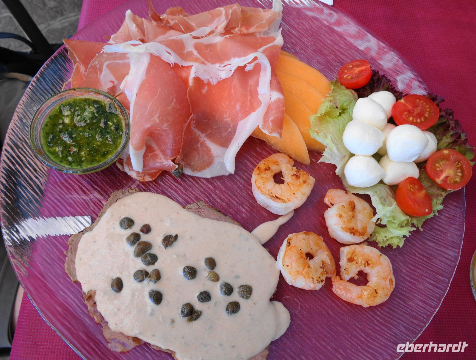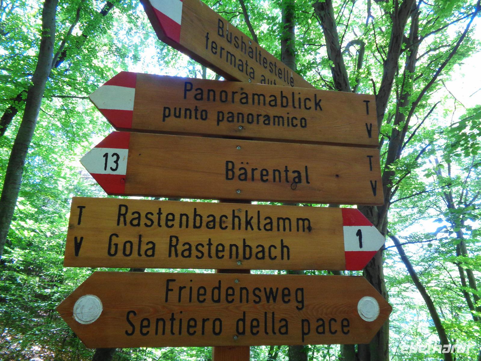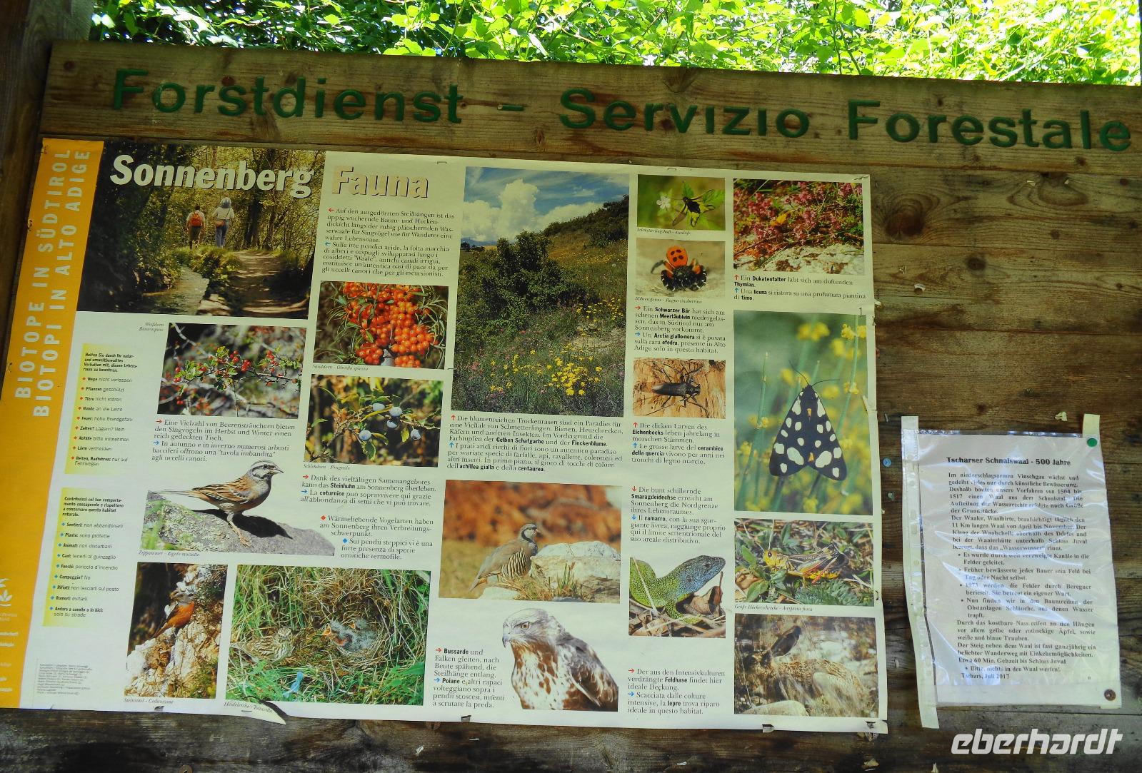 Erwartungsvoll machten wir uns heute auf zu unserer ersten Wanderung. Bei herrlichem Wetter starteten wir oberhalb von Kaltern auf dem Friedensweg in Richtung Altenburg. Auf angenehm schattigen Waldwegen erreichten wir das erste Highlight des Tages, die wildromantische Rastenbachklamm. Mit ihren Wasserfällen, den efeubewachsenen Bäumen und umgestürzten, verwitternden Stämmen ist sie ein beeindruckendes Naturdenkmal. Manche Passagen auf dem steinigen, zum Teil steilen Weg waren durchaus eine Herausforderung für die Trittsicherheit der Teilnehmer. In Altenburg, der höchstgelegenen Fraktion von Kaltern, genehmigten wir uns auf 612 m Höhe ein schmackhaftes Mittagsmahl auf der schattigen Terrasse des Gasthofs Sonnegghof. Bevor wir uns endgültig auf den Rückweg machten, statteten wir noch der kleinen gotischen Kirche St. Vigilius mit ihrem schönen Flügelaltar einen Besuch ab. Der Rückweg führte uns über den Nusstalweg, der uns immer wieder herrliche Ausblicke auf den Kalterer See bot, bis nach St. Josef am Kalterer See. In einem der Cafés am See genehmigen wir uns noch die ein oder andere kühle Erfrischung, bevor uns unser Bus zurück zum Hotel brachte.