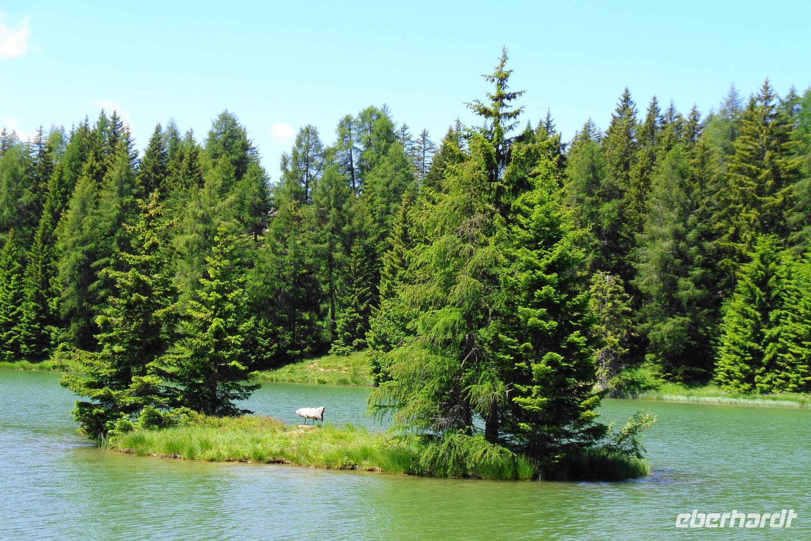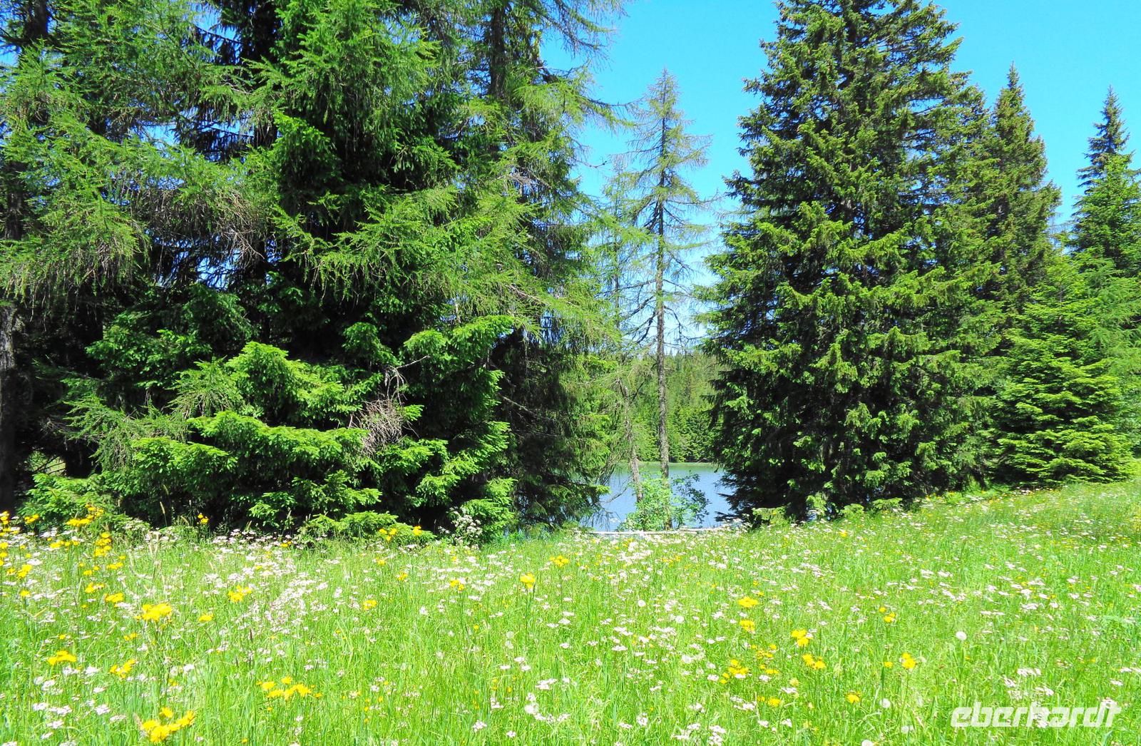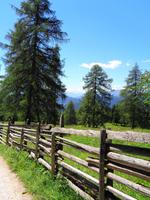 Der Weg führte uns heute mit unserem Bus über den 1500 m hohen Gampenpass nach St. Felix. Hinter St. Felix begann der ansteigende Forstweg zur Felixer Alm, wo wir wieder bei herrlichem Wetter urige Tiroler Hausmannkost serviert bekamen. Die Almwiesen brachten mit ihrer herrlichen Blumenpracht die Botaniker unter uns ins Schwärmen. Enziane, Trollblumen, Veilchen, Orchideen und viele andere Alpenblumen wurden ausgiebig bestaunt und fotografiert. Durch die charakteristischen Lärchenwälder ging es weiter zum Felixer Weiher. Der kleine Bergsee ist recht kalt, daher traute sich niemand ein erfrischendes Bad zu. Zurück ging es dann wieder durch Lärchenwälder bis oberhalb von St. Felix, wo unser Bus uns wieder aufsammelte. Am Heimweg machten wir noch einen Besuch in dem kleinen Ort St. Felix, der uns wegen seiner Lage auf 1265 m im Vergleich zur drückenden Hitze im Tal angenehm kühl erschien und besuchten die Wallfahrtskirche „Unsere Liebe Frau im Walde" und den Ortskern mit seinen altmodischen kleinen Ladengeschäften.