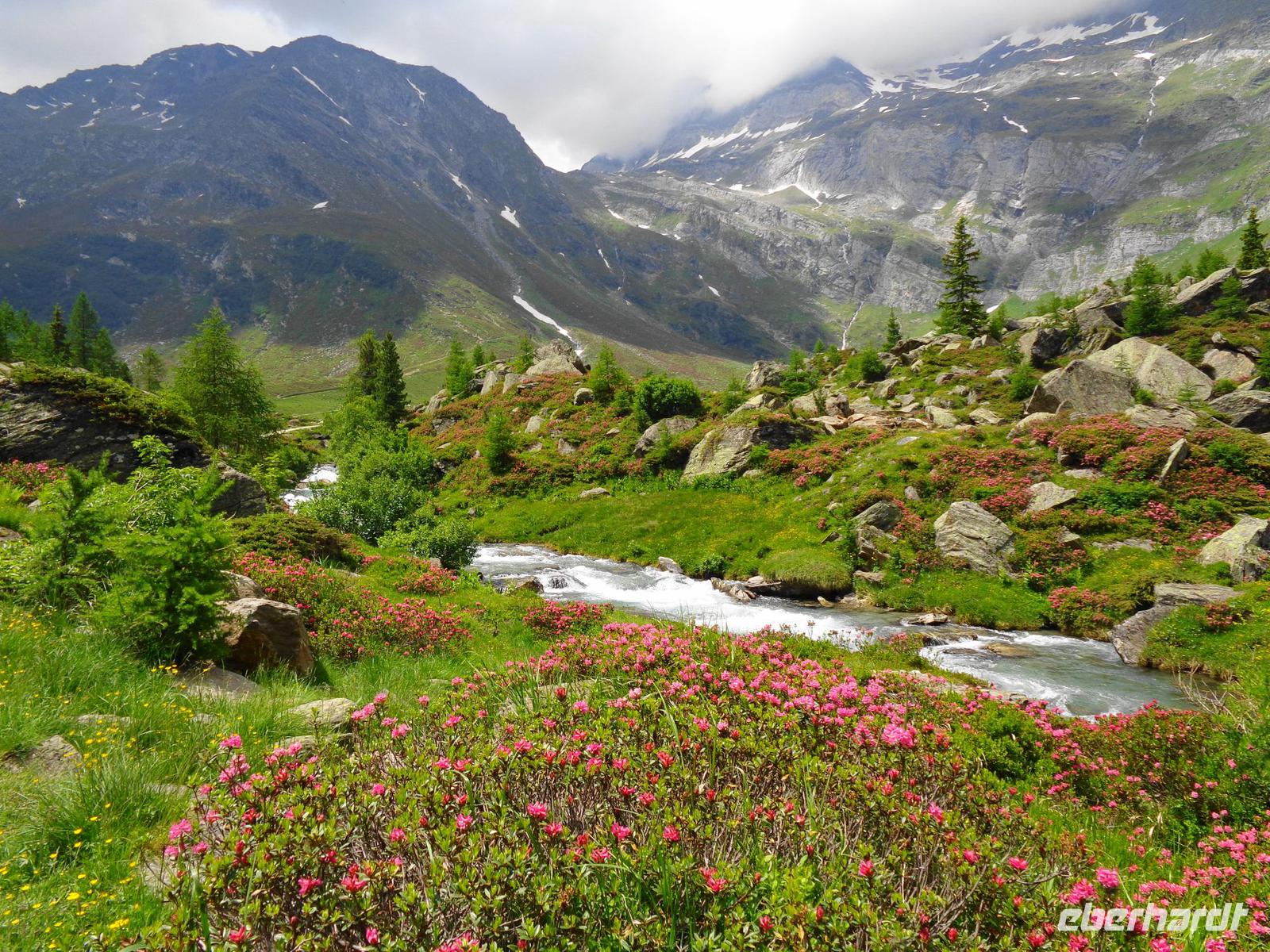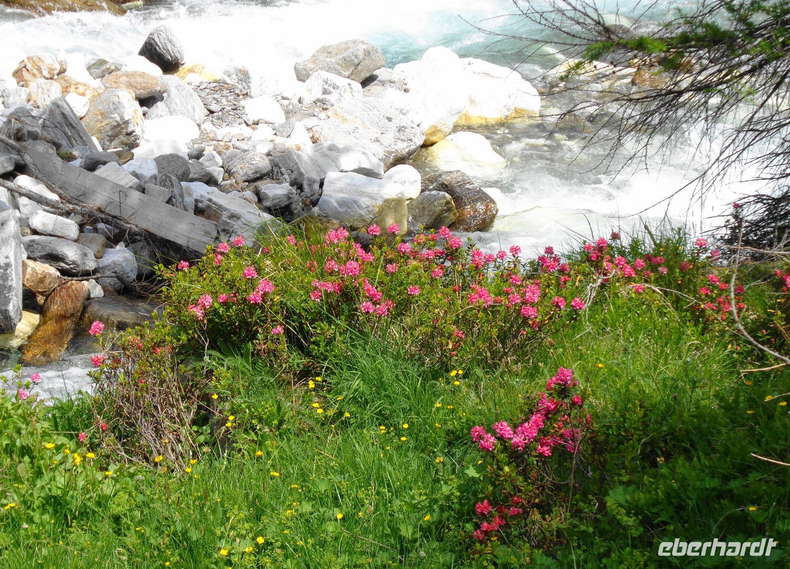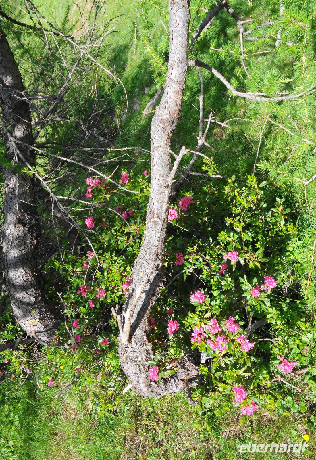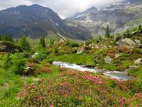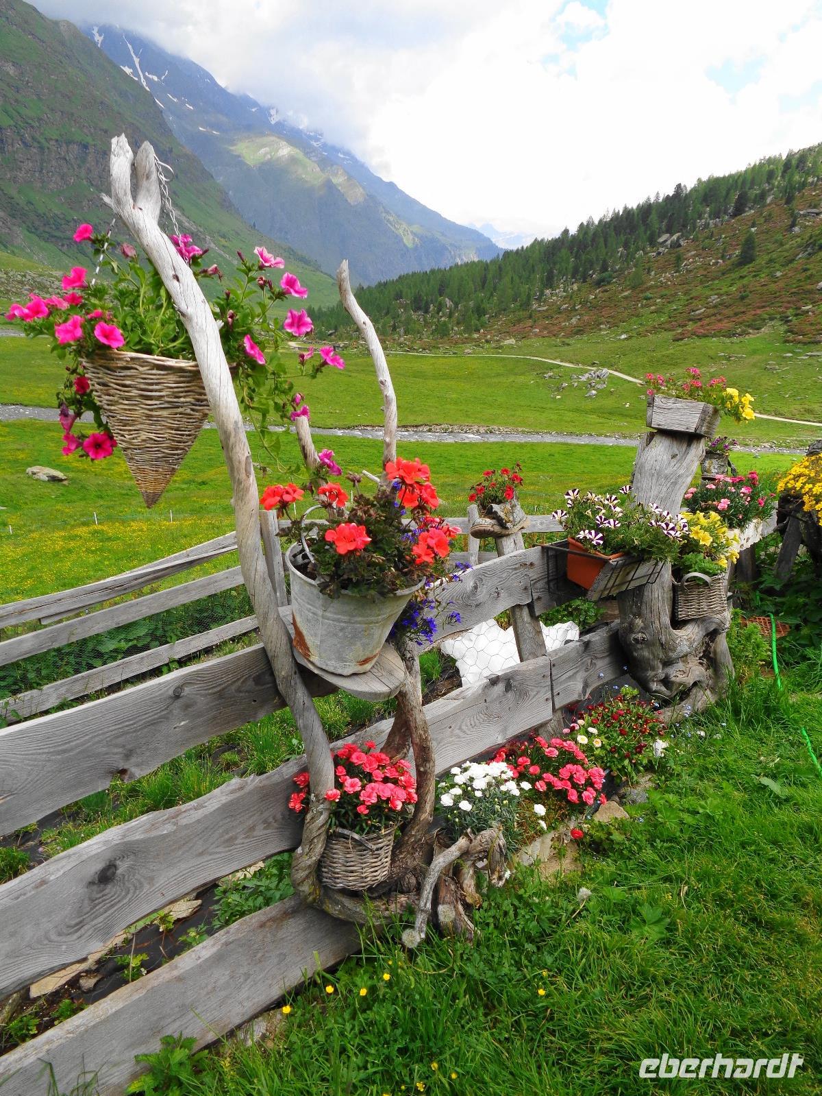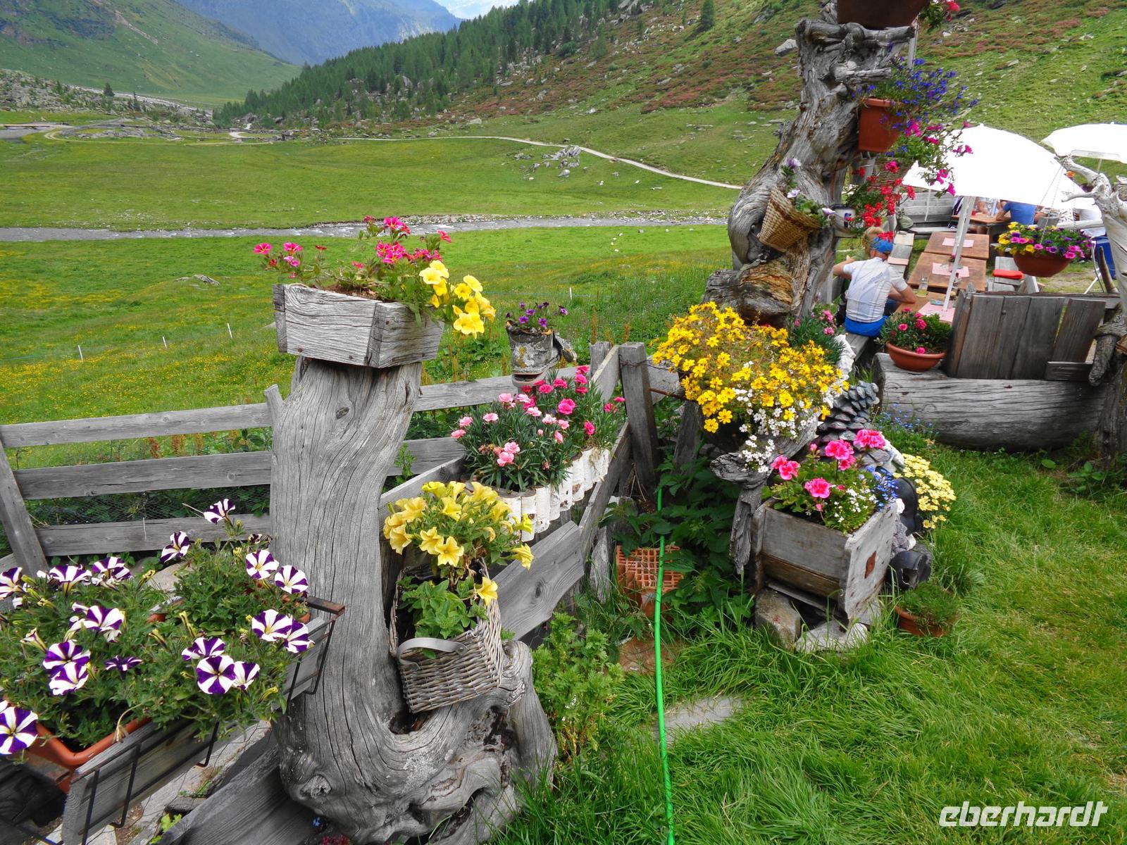 Heute erwartete uns ein absoluter Höhepunkt unter den Panorama-Wanderungen dieser Reise. Nach einer Busfahrt ins Passeiertal starteten wir in Pfelders, auf 1622 m im Südtiroler Naturpark Texelgruppe gelegen, in Richtung Talschluss und Lazinser Alm. Unsere fittesten Teilnehmer wählten mit unserem Wanderführer Kurt die etwas anstrengendere Route über den Panoramaweg. Die anderen wanderten gemütlich durch das Pfelderer Tal. Auf der Lazinser Alm trafen die beiden Gruppen wieder zusammen und genossen, wie schon gewohnt, eine typische Südtiroler Brotzeit. Wir hatten das Glück, zur Hochblüte der Alpenrosen im Tal zu sein und so erglühte das ganze Tal im rot dieser herrlichen Alpenblumen. Wir konnten uns nicht satt sehen an dem wildromantischen Alpenpanorama der Texelgruppe, den blühenden Berghängen und gurgelnden Bächen. Auf dem Rückweg machten wir noch Station auf dem Bauernhof "Bauernguet". Hier bietet Martin in seinem Hofladen Würste aus eigener Metzgerei und allerhand Selbstgemachtes an. Auch selbstgemachter Almkäse konnte in einer der zahlreichen Käsereien für zu Hause mitgenommen werden.