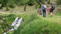 Etwas müde sind die Knochen noch von der gestrigen Wanderung, aber wir sind guter Dinge für unsere letzte Wanderung von St. Martin im Kofel zurück nach Schlanders. Ein letztes Mal entwerten wir unseren Gästepass am berühmten Automat und schon geht´s mit dem Zug zwei Stationen weiter nach Latsch. Dort angekommen, schweben wir mit der Seilbahn hinauf ins Bergdorf St. Martin im Kofel. Unsere erste Station ist die Jausenstation Egg, allerdings lassen wir diese sozusagen links liegen, denn wir nutzen den schönen Tritt und wandern vergnügt weiter. Auf dem Höhenweg hat man wieder ein atemberaubendes Panorama in das Etschtal und auf die Ortschaften Goldrain, Morter und schließlich unseren Zielort Schlanders. Und auch das Bergpanorama des Ortler-Massivs zeigt sich in voller Pracht. Da kann man sich gar nicht satt sehen! Dann erreichen wir die einstige Bergknappensiedlung Zuckbichl und Laggar, die wir für ein schönes, gemeinsames Foto nutzen. Nun ist es nicht mehr weit nach Patsch, unserem idyllischen Picknick-Plätzchen. Wir machen eine ausgiebige Rast und stoßen bei einem „Gesundheitstrunk" auf eine gelungene Wanderwoche an. Dazu verteilt Walter den selbstgebackenen Kuchen seiner Frau - was will man mehr. Nachdem alle ihr Mittagsschläfchen beendet haben, gehen wir den Abstieg nach Schlanders an. Es geht waldeinwärts über Wurzeln und Steine bis wir das prächtige Schloss Schlandersberg erblicken. Nun wandern wir entlang des Ilswaals, der uns eine willkommene Erfrischung bietet. Schuhe aus, Socken weg - ab ins kühle Nass! Herrlich erfrischend! Da fallen die letzten Kilometer bis ins Ortszentrum nicht mehr schwer. Am Hotel angekommen, werden wir schon von Monika in Empfang genommen und belohnen uns mit einem Eiskaffee oder einem Bierchen! Was für ein gelungener Tag!