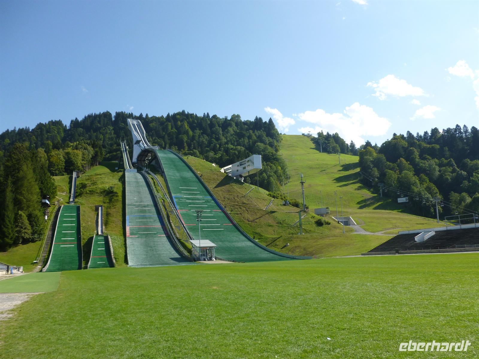 Früh am Morgen begann unsere Reise ins 691 km entfernte Südtirol, auf die wir uns schon lange freuten. Nachdem wir einen romantischen Sonnenaufgang sehen konnten, chauffierte uns unser Busfahrer Klaus gen Süden. Bei Kaiserwetter fuhren wir über Nürnberg, das Altmühltal, weiter durch den Olympiapark Münchens nach Garmisch-Partenkirchen unserem Ziel Sterzing entgegen. Es war viel los auf den Straßen und eine Menge Stau angesagt. Soweit es ging, versuchten wir diesen zu umfahren, trotz dass auch die Umgehungsstraßen stark befahren waren. So nutzten wir die Gelegenheit und verbrachten die letzte Ruhepause unseres Fahrers an der Skisprungschanze von Garmisch-Partenkirchen.