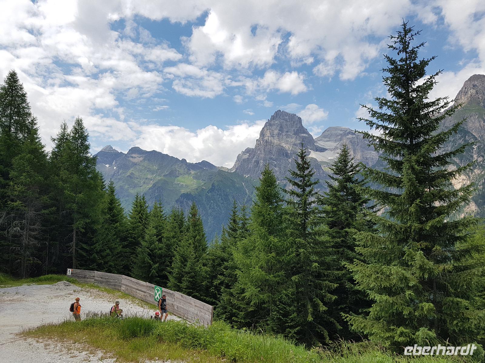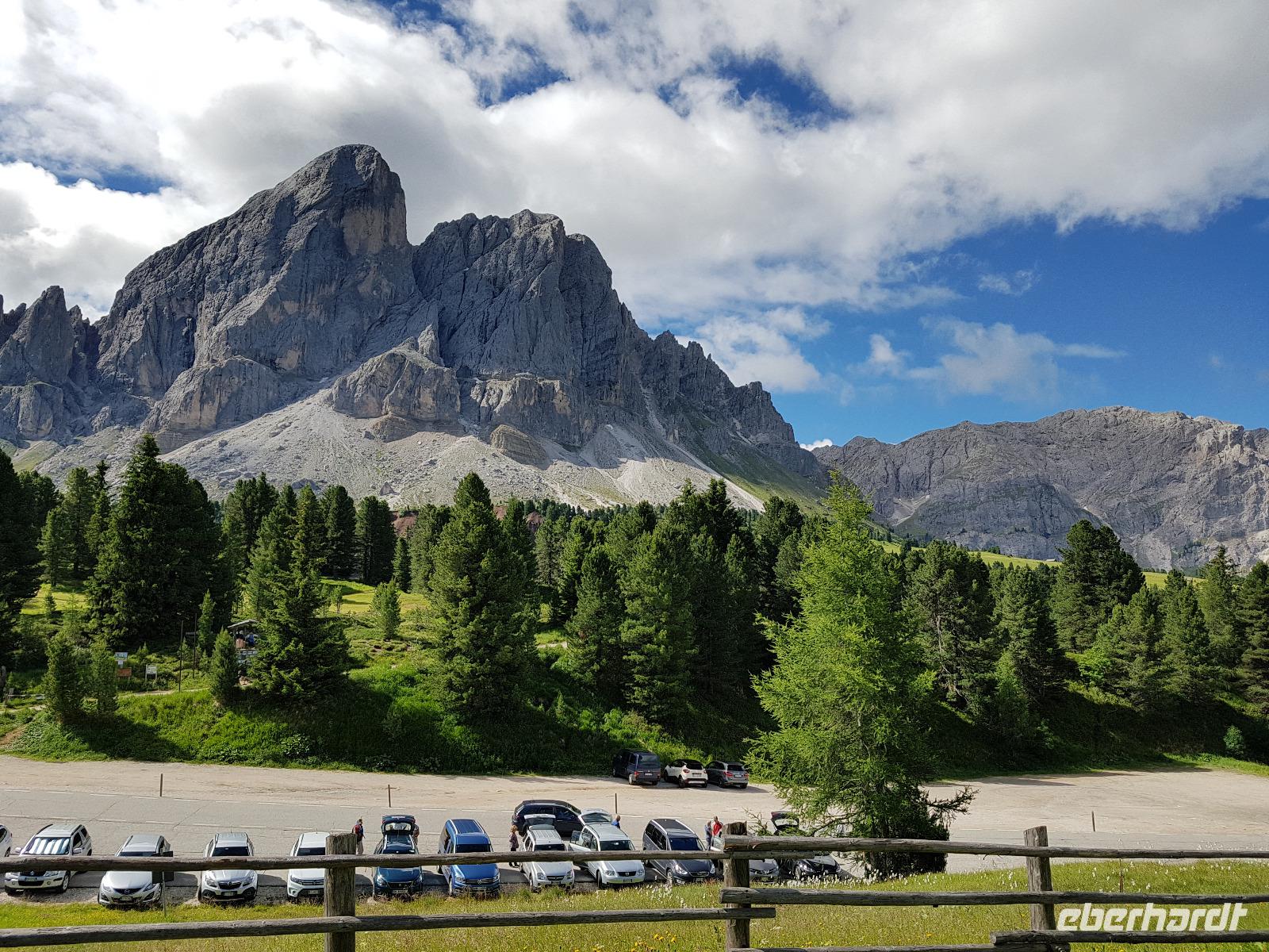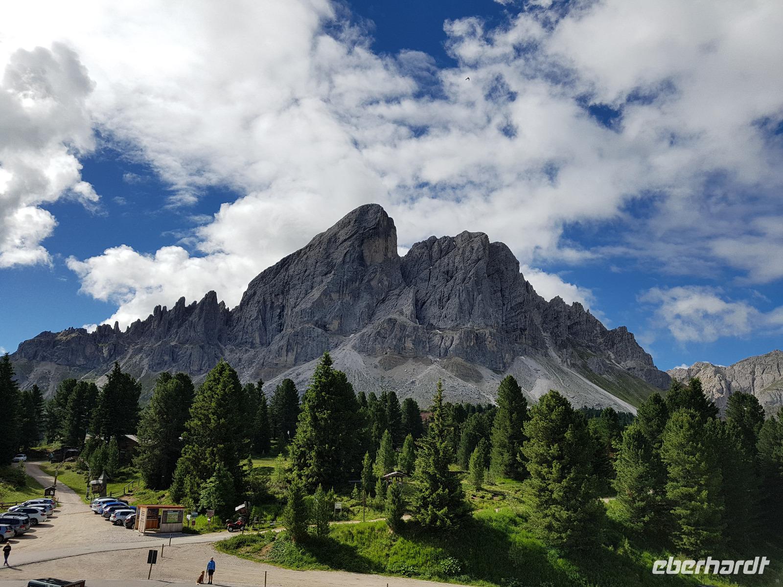 Gestärkt vom Frühstück fuhren wir um 8 Uhr, ein bisschen eher wie sonst, vom Hotel ab, da wir heute eine längere Anfahrt zur Wanderung hatten. Wir fuhren vom Hotel über das Pustertal zum Gadertal, dem ladinischen Herzen Südtirols. Über das Örtchen St. Martin in Thurn ging es zum Würzjoch, unserem Ausgangspunkt heute, das auf 2006 Metern Höhe liegt. Nach einer kurzen technischen Pause starteten wir die zweite Wanderung am Fuße des Peitlerkofels.