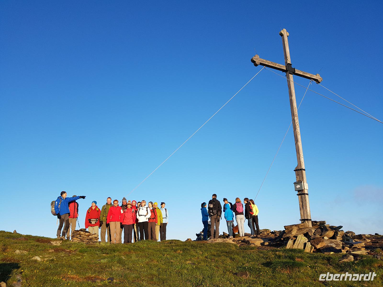 Kurz vor unserem letzten gemeinsamen Abendessen trafen wir uns alle mit Siegfried und Familie Wieser im Gastraum des Hotels um die ganze Woche in Erinnerung zu bringen. Wir stoßen alle an auf die in jeder Hinsicht gelungene Wanderwoche. Wir bedanken uns ganz herzlich bei Siegfried für seine interessanten Ausführungen und sehr gute Betreuung auf den Wanderungen. Wir können nicht so einfach so eine schöne erlebnisreiche Wanderwoche vergessen. Wer einmal hier gewandert ist, den zieht es immer wieder hin. So ist es für einige Gäste von uns, die hier schon sogar zum 11. Mal gewesen sind, oder Bernd? Beim Abendessen ließen wir es uns wieder schmecken und bedanken wir uns bei der Bedienung und Köche vom Hotel Wieser. Es hat jeden Tag alles sehr gut geschmeckt, immer wieder vorzüglich. Nach dem Abendessen ließen wir die Reise und diese wunderschönen Tage ausklingen.