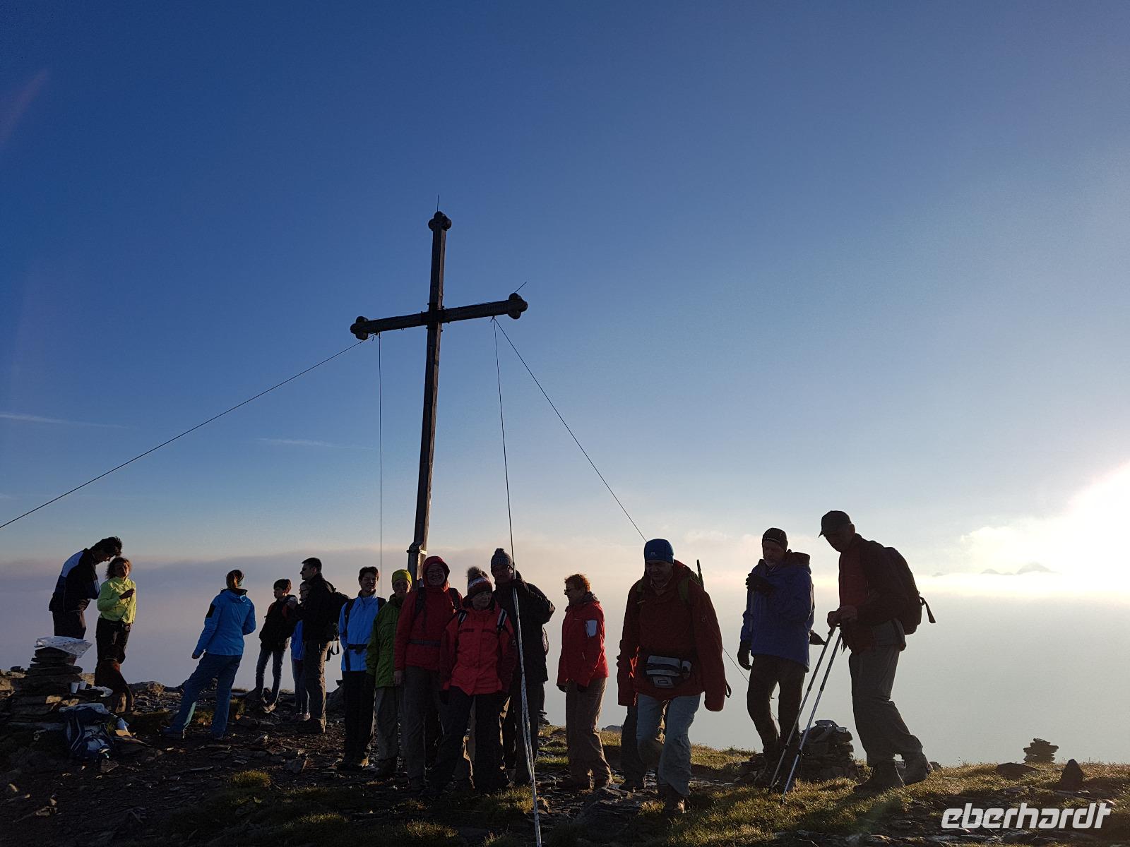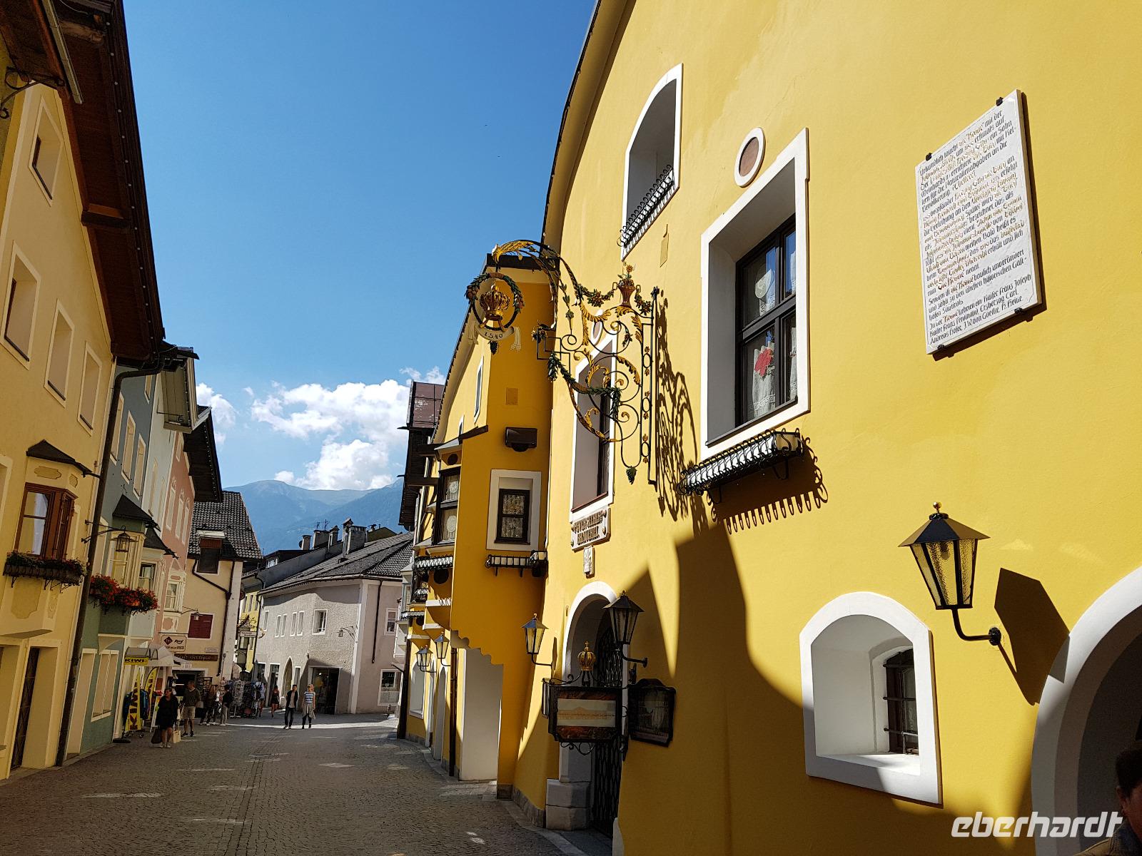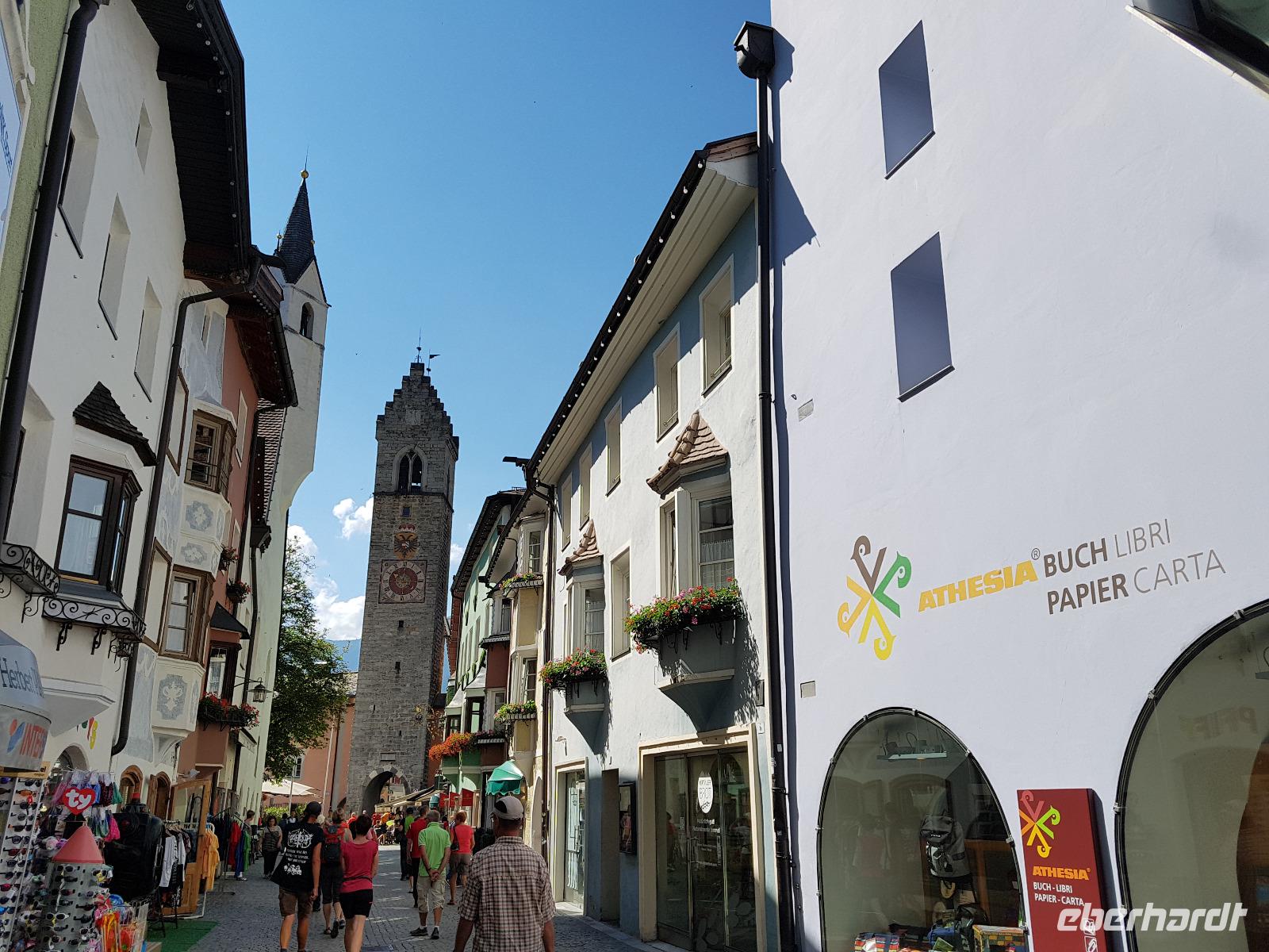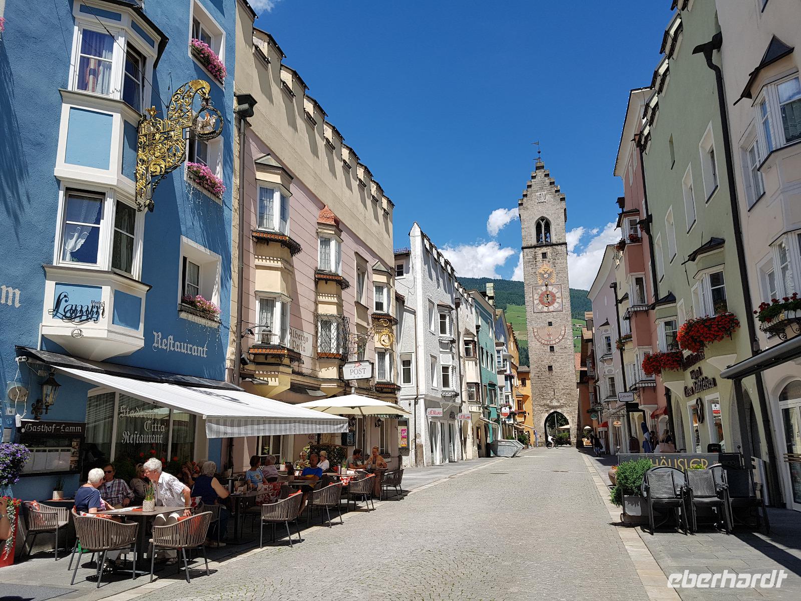 Wir sahen Wolken, die nocht über den Bergen hingen und wussten nicht, ob wir überhaupt etwas sehen würden. Aber man darf die Hoffnung nie nie verlieren. Es sah nicht gut aus, aber die Hoffnung war da. Plötzlich war die Kraft der Sonne stärker, der Wind bewegte die Wolken fort und wir hatten einen besonderen Sonnenaufgang mit und ohne Wolken. Fast wie letztes Jahr. Am Anfang zeigte sich die Sonne kurz und ziemlich schüchtern, aber danach mit voller Kraft. Wir machten tolle Bilder und werden dieses Erlebnis nie vergessen. Ja, unsere Sonnenaufgangswanderung zum Zinseler hat sich gelohnt und wie. Ja, ja und tausend mal ja;) Wieder im Hotel hatten wir ein ordentliches Frühstück und noch 50 Minuten Zeit nochmals zu schlafen bevor wir um 10 Uhr uns wieder auf den Weg nach Sterzing machten, zur Stadtbesichtigung der Heimatstadt unseres Wanderführers, die Fuggerstadt Sterzing. Mit Siegfried hatten wir eine sehr informative Stadtführung und besuchten die Pfarrkirche Hl.-Geist-Kirche am Stadtplatz und das Rathaus mit seinem historischen Ratssaal. Später hatten wir auch genug Freizeit zum individuellen Bummeln, die letzten Einkäufe zu tätigen oder einfach auf einer Terrasse zu sitzen, etwas zu trinken und Leute gucken. Mir persönlich hat es sehr gut gefallen, der 47 Meter hohen Zwölferturm unter anderen schönen Bauwerken mitten in der Altstadt, wodurch die Fußgängerzone mit vielen Gaststätten, Geschäften und Sehenswürdigkeiten geht. Einige kauften Speck und Bergkäse für Deutschland zum mitzunehmen.