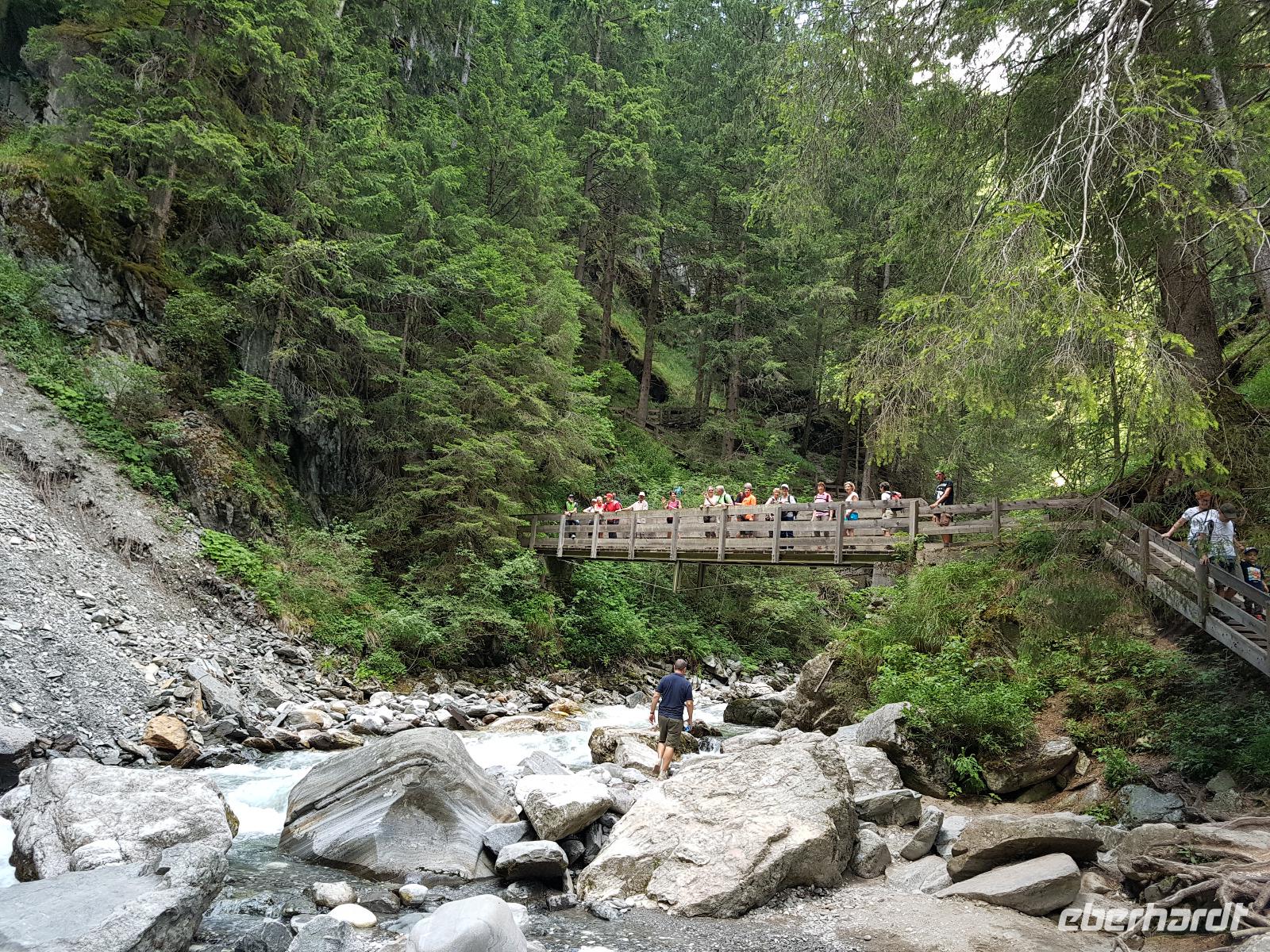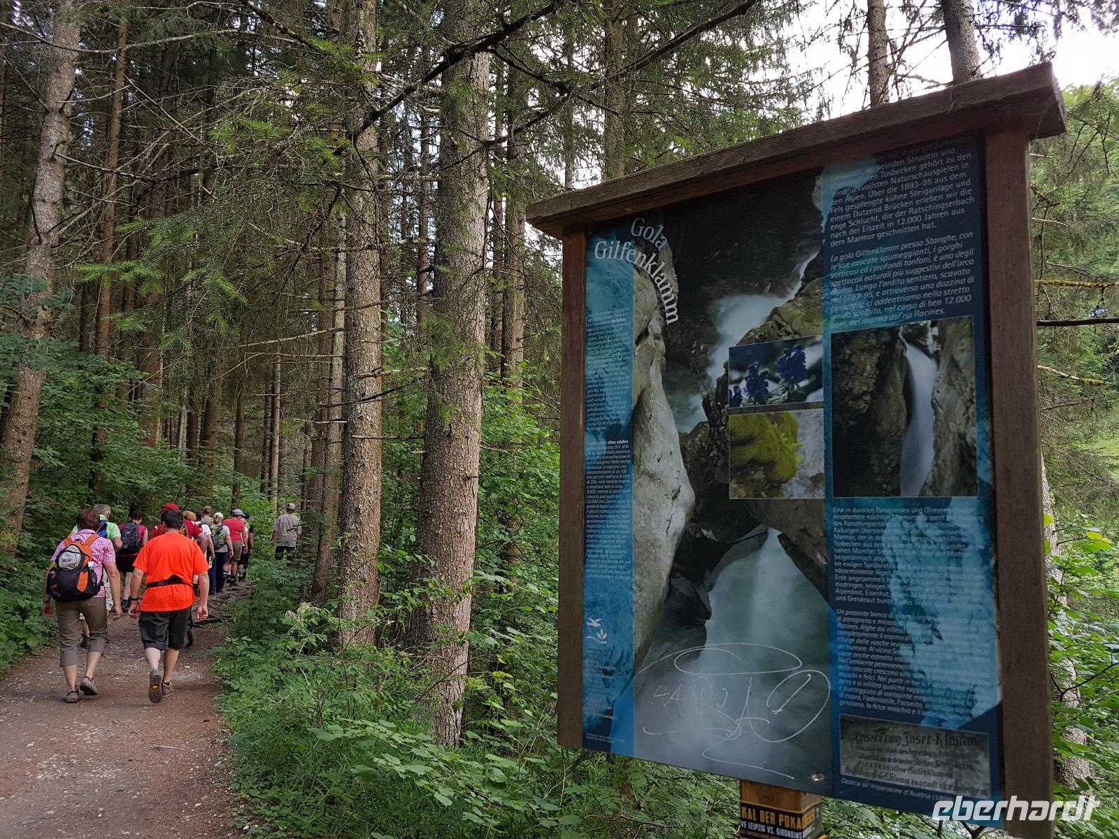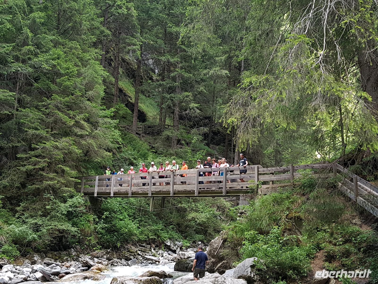 Um 13.30 Uhr trafen wir uns wieder am Bus, da auf uns noch ein nächstes Highlight wartete: die kleine Wanderung durch die Gilfenklamm. Wir fuhren nicht mehr ganz so weit in das Ridnauntal nach Stange und kamen an die wild-romantische Klamm mit ihren Wasserfällen und Stromschnellen, die wir in Ruhe und ohne Eile durchwanderten. Wir wanderten hier ca. eine Stunde eine der schönste Felsschluchten der Alpen entlang. Ein besonderes Naturschauspiel. Die Klamm ist tief in weißen Marmor eingeschnitten. Vom Taleingang ging es weiter den Ratschinger Bach entlang, wo der Klamm mit lautem Getöse durch Kaskaden und Wannen hinunter stürzt. Auf der Anlage mit Gelände konnten wir ganz nah am Rand entlang laufen bis Jaufensteg, wo der Busfahrer wieder für uns da war. Insgesamt, heute mit Sonnenaufgang auf Zinseler und Gilfenklamm sind wir 14,1 Kilometer - 18.006 Schritte in 3 Stunden und 20 Minuten- 528 Meter Aufstieg und 350 Abstieg. Und alles immer leicht anspruchsvoll. Wir fuhren zurück zum Hotel, wo wir am frühen Nachmittag Kuchen und Kaffee genossen. Der Sohn vom Joachim servierte uns selbst gebackenen Kuchen. Es war köstlich. Wir hatten im Hotel wieder Freizeit bis zum Abendessen und einige von uns nutzen wieder das Schwimmbad oder den Wellnessbereich mit Sauna. Um 19 Uhr hatten wir wieder ein tolles Abendessen und hatten wieder einen weiteren tollen Tag mit vielfältigen Eindrücken uns gegenseitig zu erzählen.