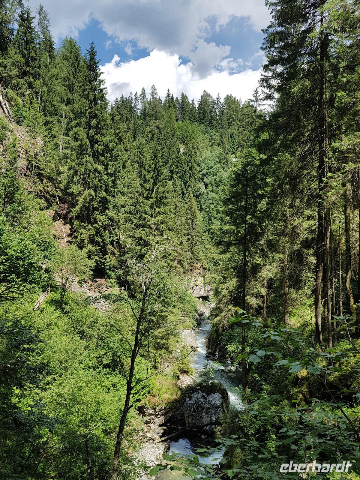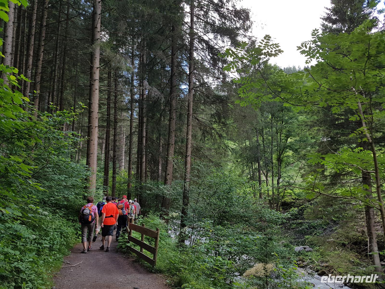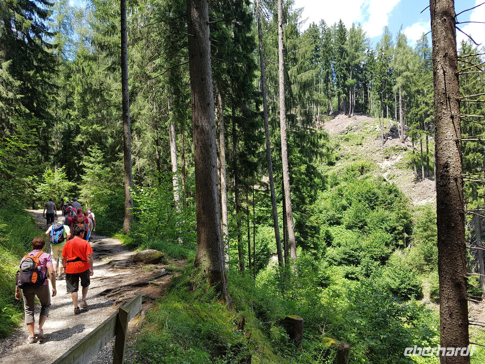 Um 13.30 Uhr trafen wir uns wieder am Bus, da auf uns noch ein nächstes Highlight wartete: die kleine Wanderung durch die Gilfenklamm. Wir fuhren nicht mehr ganz so weit in das Ridnauntal nach Stange und kamen an die wild-romantische Klamm mit ihren Wasserfällen und Stromschnellen, die wir in Ruhe und ohne Eile durchwanderten. Wir wanderten hier ca. eine Stunde eine der schönste Felsschluchten der Alpen entlang. Ein besonderes Naturschauspiel. Die Klamm ist tief in weißen Marmor eingeschnitten. Vom Taleingang ging es weiter den Ratschinger Bach entlang, wo der Klamm mit lautem Getöse durch Kaskaden und Wannen hinunter stürzt. Auf der Anlage mit Gelände konnten wir ganz nah am Rand entlang laufen bis Jaufensteg, wo der Busfahrer wieder für uns da war. Insgesamt, heute mit Sonnenaufgang auf Zinseler und Gilfenklamm sind wir 14,1 Kilometer - 18.006 Schritte in 3 Stunden und 20 Minuten- 528 Meter Aufstieg und 350 Abstieg. Und alles immer leicht anspruchsvoll. Wir fuhren zurück zum Hotel, wo wir am frühen Nachmittag Kuchen und Kaffee genossen. Der Sohn vom Joachim servierte uns selbst gebackenen Kuchen. Es war köstlich. Wir hatten im Hotel wieder Freizeit bis zum Abendessen und einige von uns nutzen wieder das Schwimmbad oder den Wellnessbereich mit Sauna. Um 19 Uhr hatten wir wieder ein tolles Abendessen und hatten wieder einen weiteren tollen Tag mit vielfältigen Eindrücken uns gegenseitig zu erzählen.