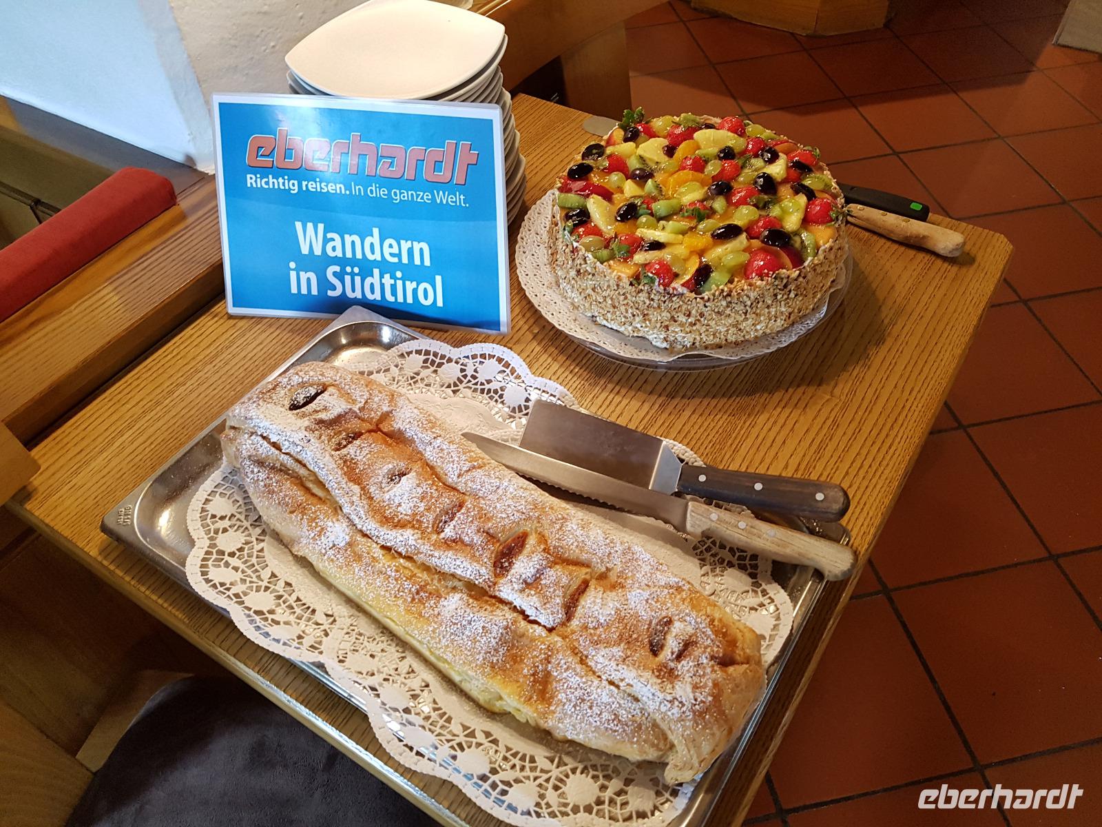 Heute ist es endlich soweit und die Wanderreise kann los gehen in Richtung Südtirol. Um 4 Uhr früh fuhren wir mit dem Eberhardt Travel Pendelbus nach Italien am Flughafen Dresden ab. Später kamen noch einige weitere Zustiege an der Autobahn in Nossen, Chemnitz, Vogtland und am Autohof Münchberg-Nord. Unsere Wandergruppe ist nun komplett. Insgesamt 13 liebe Gäste und Wanderfreunde. Danach ging es direkt weiter nach Südtirol. Fast ohne Stau und ohne andere Schwierigkeiten überquerten wir die Inntalautobahn, die Europabrücke und später den Brennerpass, die österreichische und italienische Grenze. Aber vor dem Brenner hatte Eberhardt Travel eine Überraschung für uns. Wir wurden zum Mittagsessen beim Wipptaler Hof eingeladen. Nicht weit vom Brenner verlassen wir schon die Brenner-Autobahn und erreichten gleich früh am Nachmittag unser 3-Sterne-Familien Hotel Wieser, in Freienfeld bei Sterzing. Wir bezogen unsere Zimmer und kurz vor dem Abendessen begrüßten uns herzlich offiziell unser Wanderführer Siegfried sowie auch die Hoteliersfamilie Wieser, Joachim und Heide, die uns ein Bergschnapserl als Begrüßungscocktail vorbereiteten. Unser Wanderführer Siegfried besprach mit uns die tollen Wanderprogramme für die bevorstehenden Tage. Wir begrüßten uns alle. Er wird mit uns die Berge erklimmen und dabei uns seine Heimat die ganze Wanderwoche zeigen. Die Gastgeber Heidi und Joachim Wieser und seine Familie werden uns sehr gut die ganze Woche im Hotel betreuen. Heute verkosteten wir schon das erste leckere Abendessen. Wir werden uns einfach von den kulinarischen Künsten der Küche die ganze Woche richtig verwöhnen lassen. Jeden Tag gab es immer Salatbuffet und ein leckeres 3-Gänge-Menü. Langsam gingen wir ins Bett, heute sehr müde von der Reise, aber voller Freude auf die nächsten Wandertage, die auf uns zukommen.