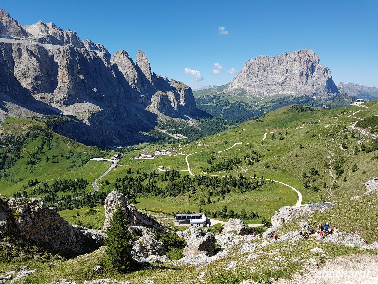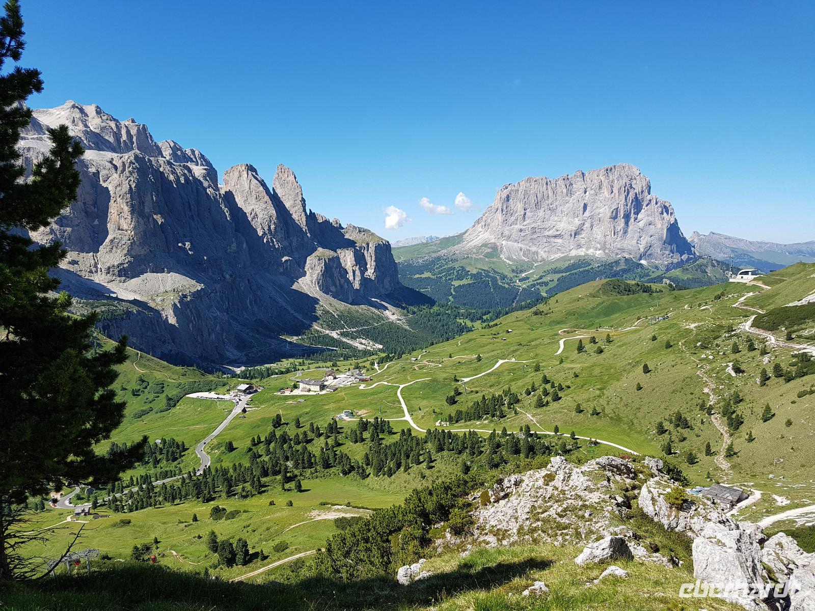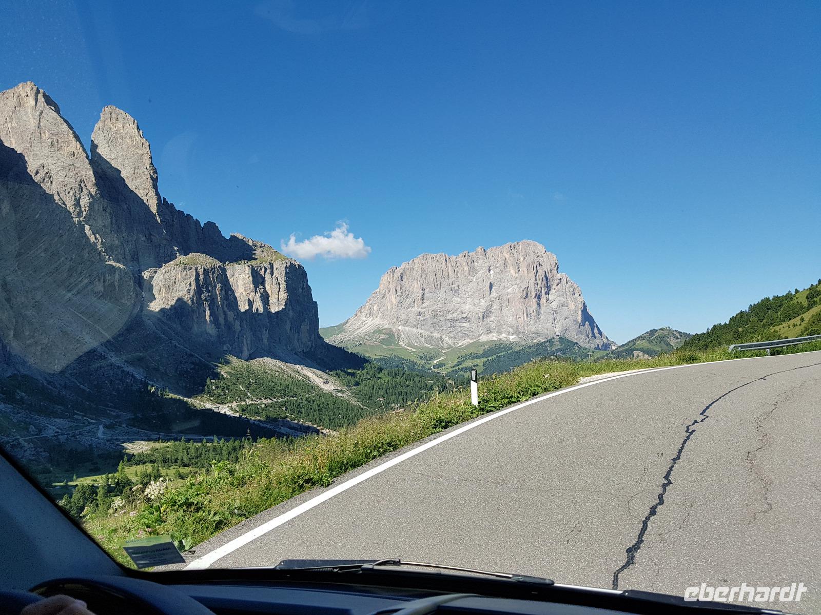 Wir fuhren in Richtung Süden, an Brixen vorbei und dann kurz vor Klausen in das Grödental hinein. Wir fuhren durch beliebte und so bekannte Orte wie St.Christina, St.Ulrich oder Wolkenstein. Von hier geht es weiter hinauf zum Grödnerjoch. Wir fuhren dabei am Fuß des Langkofel und der Sella-Gruppe entlang - wirklich eine unvergessliche, atemberaubende Fahrt.