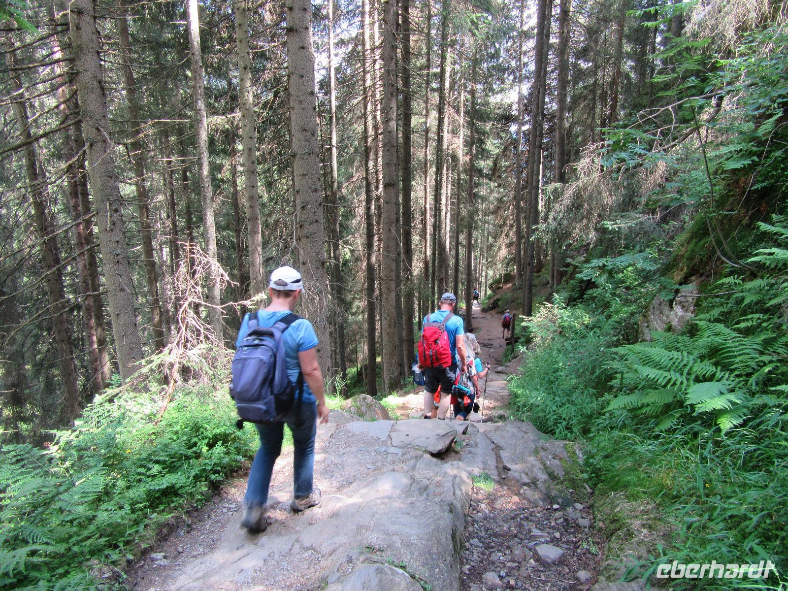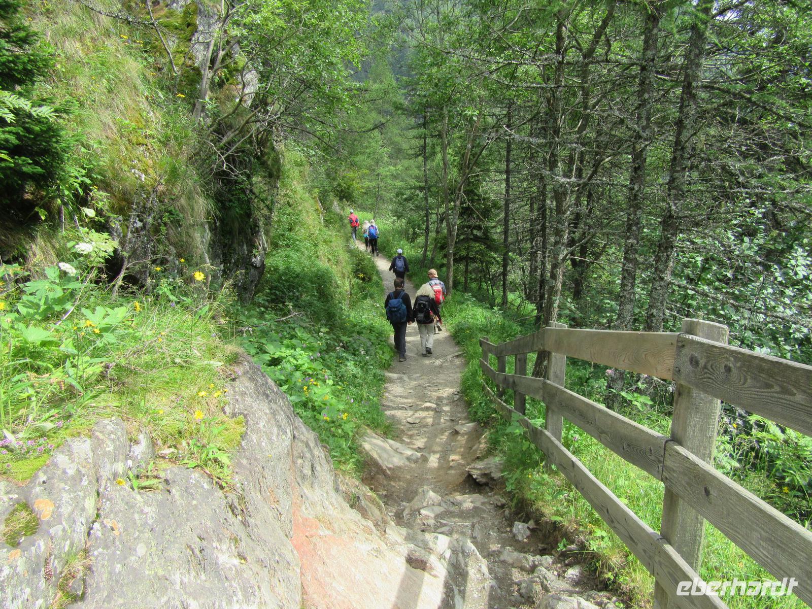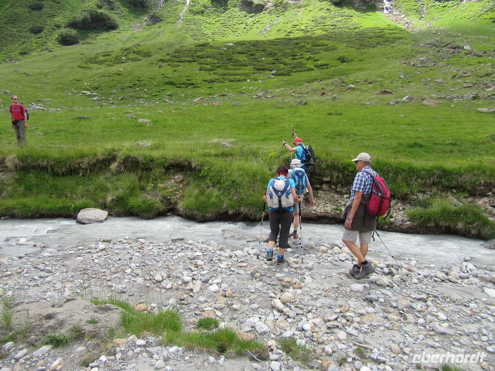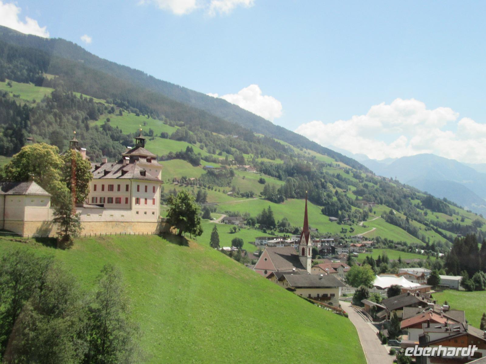 Wieder am Bus angekommen, fahren wir weiter nach Maiern, in das hinterste Ridnauntal bis zum Museumsbereich Erzaufbereitung. Nach einem Anstieg hinauf zum Furthboden erreichen wir den Eingang der Burkhardklamm. Wir können eindrucksvoll erleben, wie der Fernerbach tosend in die Tiefe stürzt und uns stellenweise eine gelungene Abkühlung beschert. Unsere Mittagspause legen wir in der Aglsalm, auf 1700m ein, bevor wir wieder zurückwandern. Aber was ist das? Toni führt uns abseits des Weges über einen Fluss, etwas abenteuerlich aber zugleich auch sehr amüsant, wie wir über das Wasser und die Steine gewankt sind. Alle haben es bravorös gemeisert und sich das Tapferkeitsabzeichen verdient ;-). Nun geht es stetig bergab hinunter zum Ausgangspunkt unserer Wanderung. Als ob wir nicht schon genug verwöhnt wurden, dürfen wir bei Wiesers Platz nehmen und bei lecker Kaffee und Kuchen den Tag Revue passieren lassen. Bis zum Abend hat nun jeder noch Zeit das kleine, beschauliche Örtchen zu erkunden oder die Annehmlichkeiten des Hotels zu genießen.
