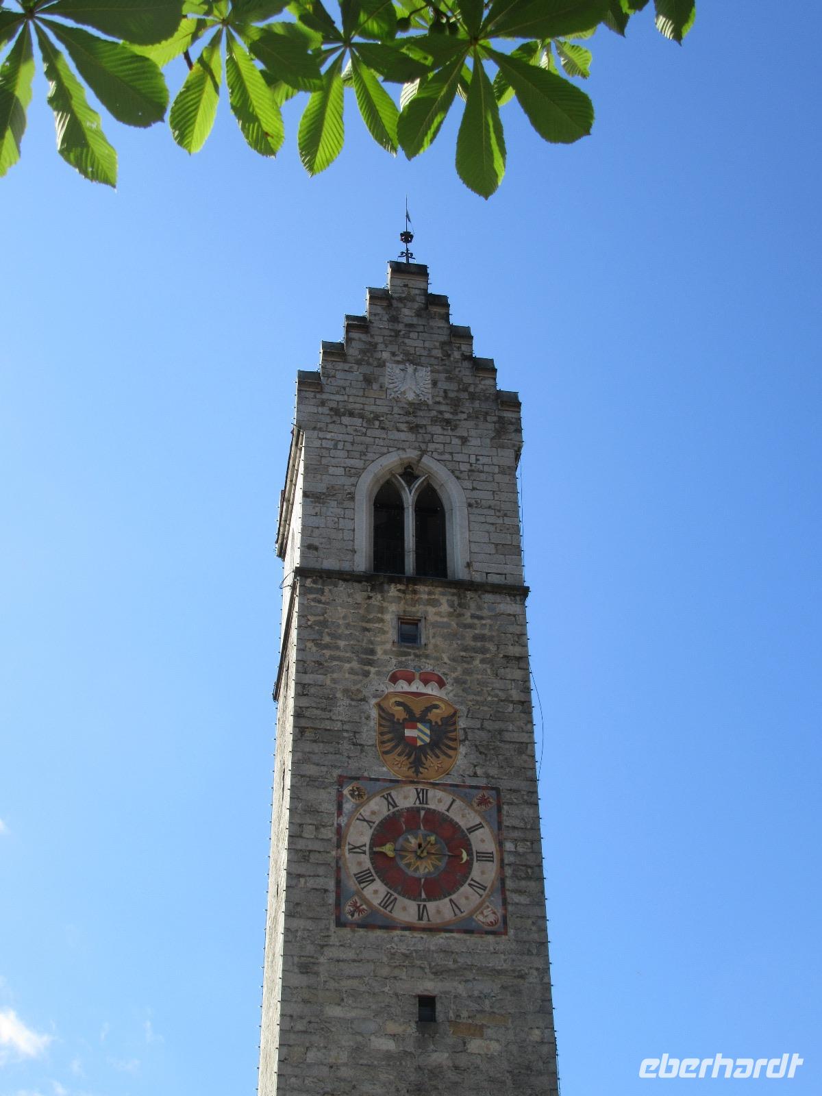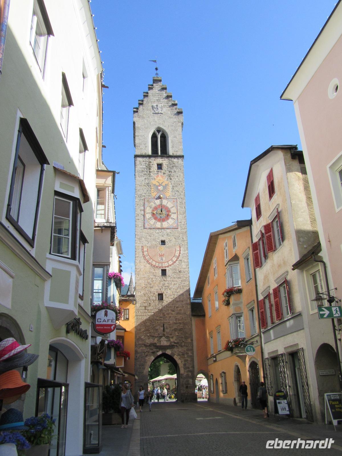 Gut erholt starten wir an diesem sonnigen Morgen erst einmal ganz gemütlich in bequemen Schuhen um die Fuggerstadt Sterzing zu erkunden. Mit unserem Toni schlendern wir vom Busparkplatz unterhalb der Talstation Rosskopf erst einmal in die Altstadt hinein. Wir können viele verschnörkelte Giebel und typisch Tiroler Geschäfte bewundern. Toni kennt sich auch mit der Stadtgeschichte hervorragend aus und muss sich sichtlich bremsen uns nur das allerwichtigste zu erzählen. Weiter geht es in Richtung Zwölferturm, das Wahrzeichen von Sterzing, welcher die Alt- und Neustadt voneinander trennt. Nach einem schrecklichen Brand im 14. Jahrhundert wurden viele Häuser zerstört und viele wieder neu hergerichtet. Seither gibt es die Neustadt - man sagt sogar, dass die Straße durch die Neustadt die schönste Tirols sein soll. Wir besuchen auch noch das schöne Rathaus, ein herrlicher spätgotischer Bau mit einem Prunkerker und Mithrastein im Innenhof, den uns Toni ganz ausführlich erläutert. Auch dürfen wir in der eindrucksvollen Rathausstube Platz nehmen und uns fühlen wie der Bürgermeister höchstpersönlich. Nun gehen wir noch weiter bis zum Ende der einladenden Einkaufsmeile und haben nun noch etwas Zeit die Gelassenheit und Herzlichkeit der Tiroler zu genießen oder das eine oder andere Souvenir für die Daheimgebliebenen zu kaufen.
