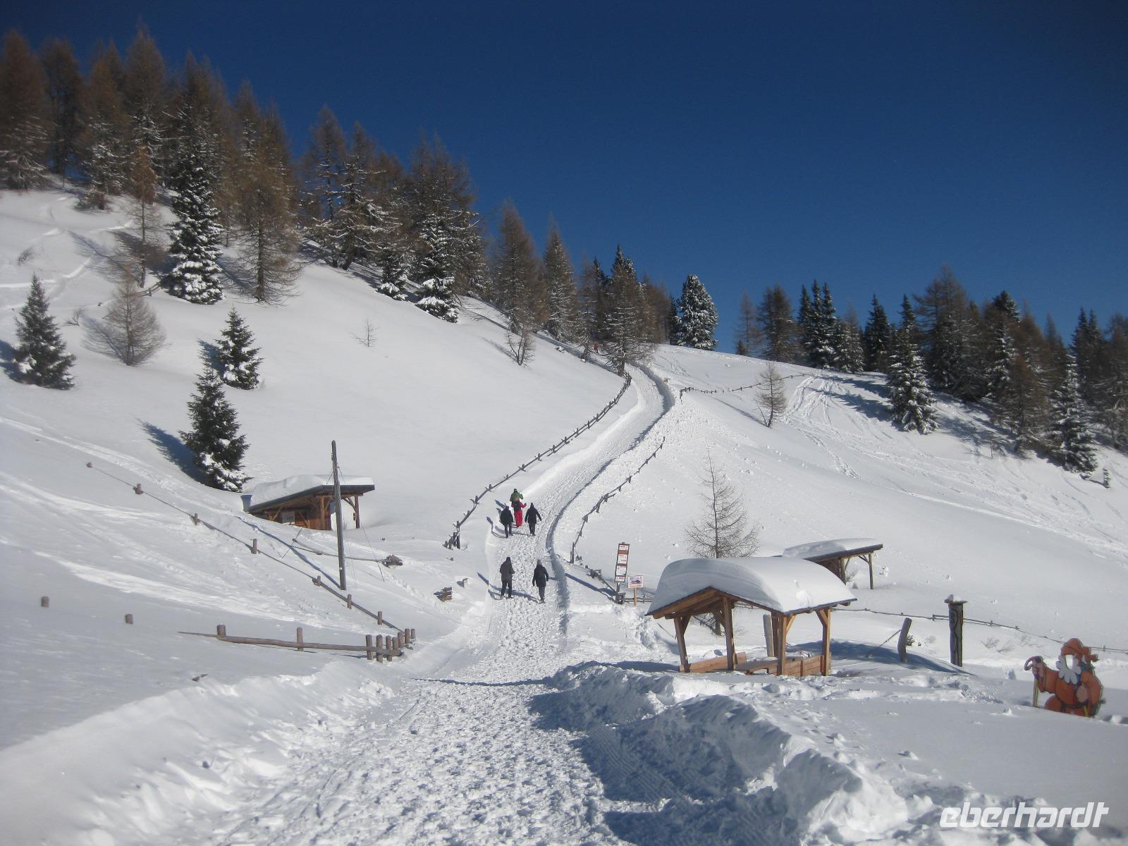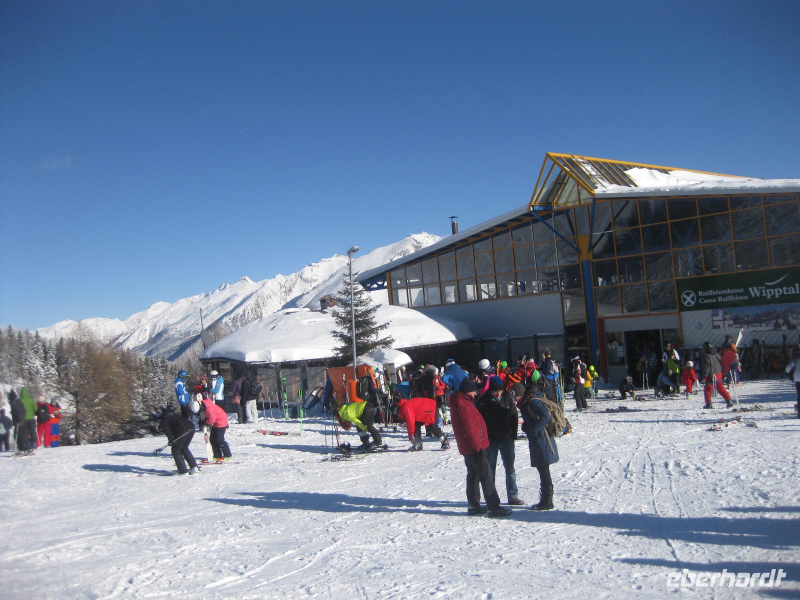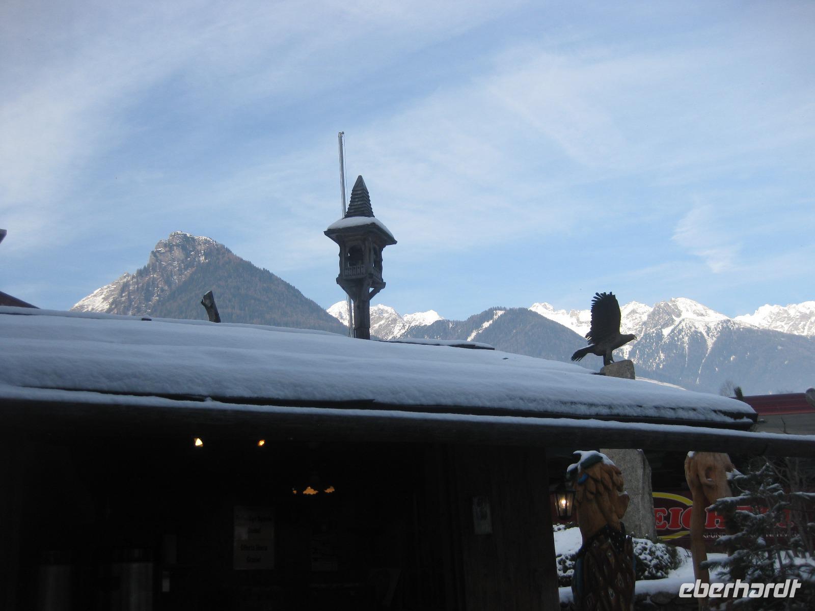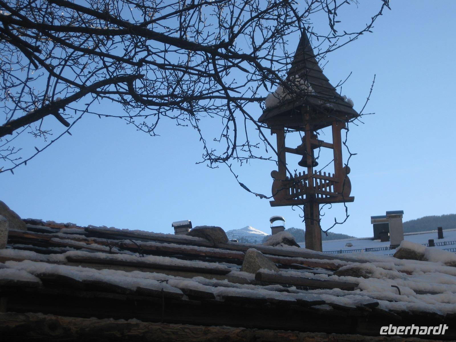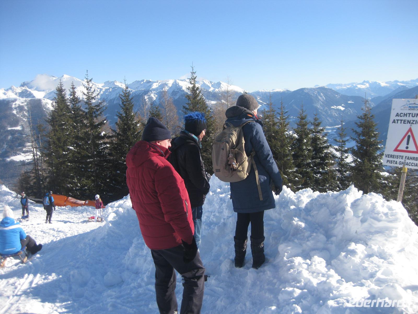 Heute ist erst einmal ein wenig ausschlafen angesagt. Ein herrlicher Wintertag mit leichtem Frost, Sonnenschein und blauem Himmel erwartet uns. Da wir heute kein volles Tagesprogramm haben, nutzen wir das schöne Wetter und fahren nach dem reichhaltigen Frühstücksbuffet nach Sterzing bis zur Talstation der Rosskopf-Gondelbahn. Der Rosskopf ist der Hausberg von Sterzing. Wir fahren mit der Gondelbahn hinauf und starten dann zu individuellen Spaziergängen im Schnee. Wir treffen uns fast alle rein zufällig auf der Terrasse des "Sterzingerhauses" wieder und genießen die Sonne und den Ausblick bei einem Getränk oder kleinen Snack.