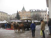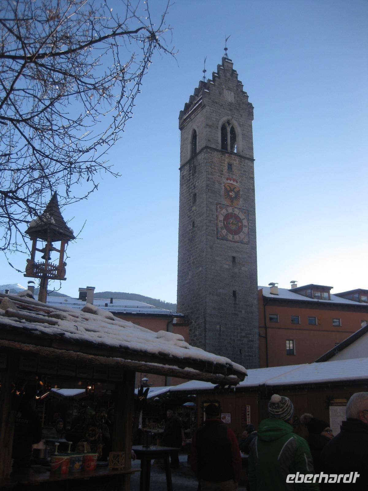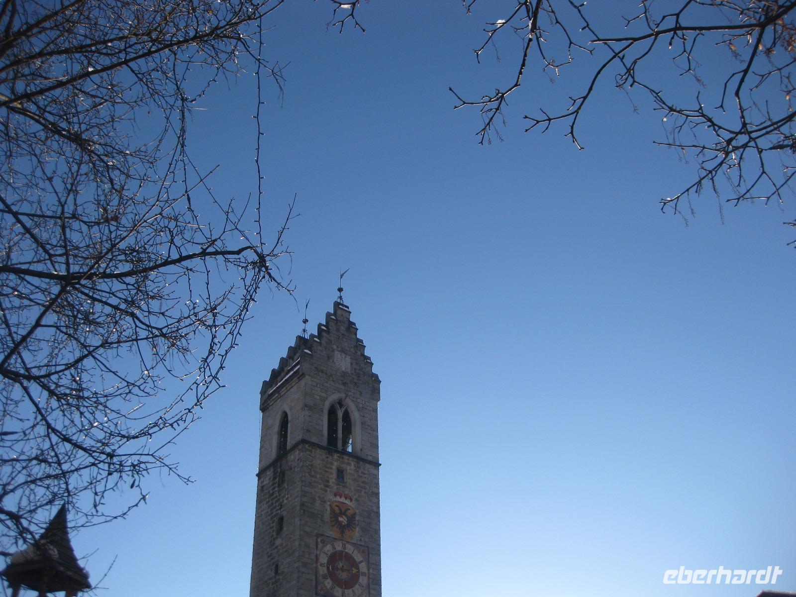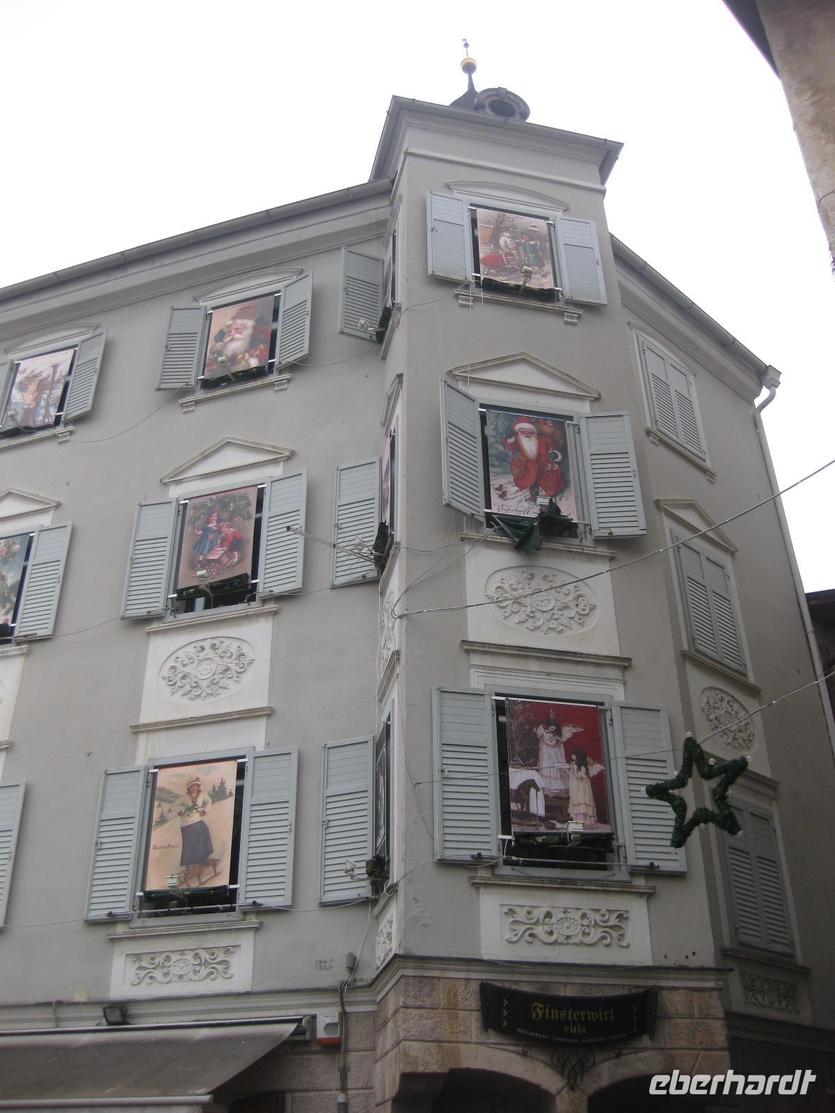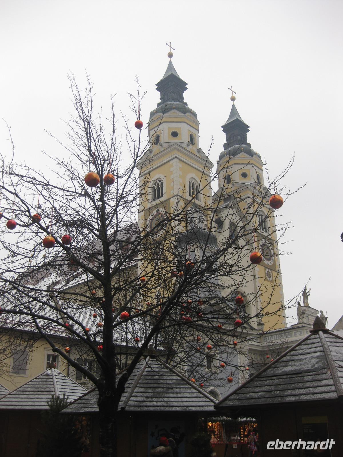 Brixen war über viele Jahrhunderte Bischofssitz und kirchliches Zentrum Südtirols. Unser Weg führt uns zuerst zur Hofburg, Residenz der Bischöfe. Heute ist hier das Diözesanmuseum mit vielen kirchlichen Schätzen untergebracht. Auch das Krippenmuseum befindet sich in den Räumlichkeiten der Hofburg. Wir besichtigen die Hofburg aber nur von außen. Ein Besuch der Museen wäre zu umfangreich. Gleich neben der Hofburg befindet sich die Jahrtausendsäule, die anläßlich des 1000-jährigen Jubiläums der Stadt Brixen im Jahr 1909 errichtet wurde. Dann führt uns der Rundgang auf den Domplatz. Dort ist noch der Weihnachtsmarkt bis zum 06. Januar aufgebaut und geöffnet. Der Dom Mariä Himmelfahrt ist offen, so dass wir hinein schauen können. Gleich neben dem Dom geht es durch eine Pforte in den Kreuzgang. Hier können wir das größte Denkmal alpenländischer Wandmalerei bewundern. Dann führt uns der Weg in den Hof zwischen Dom und Pfarrkirche St. Michael. Von hier aus können wir den "Weißen Turm" der Pfarrkirche bewundern. Dann spazieren wir durch die Ladenstraßen "Große Lauben" und "Kleine Lauben" und gelangen durch die Domgasse wieder auf den Domplatz. Die Ladenstraßen locken die Besucher an. Charakteristisch sind die Laubengänge mit ihren Läden und Restaurants, in denen man wunderbar einkaufen und gemütlich sitzen, essen und trinken kann. Wieder auf dem Domplatz angekommen kann nun jeder selbst noch über den Weihnachtsmarkt bummeln und sich von den angebotenen Speisen und Getränken verführen lassen oder ein Mitbringsel für Daheim auswählen. Dann geht es zurück in's Hotel.