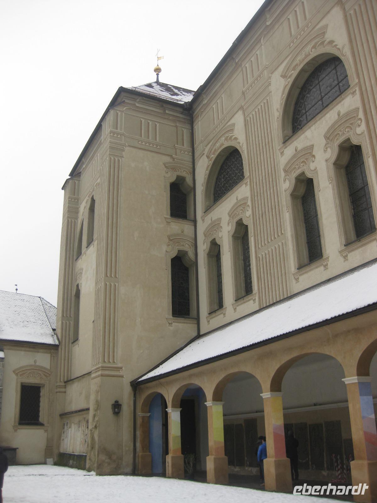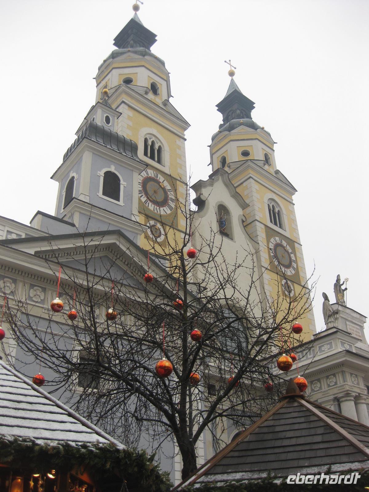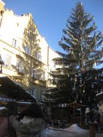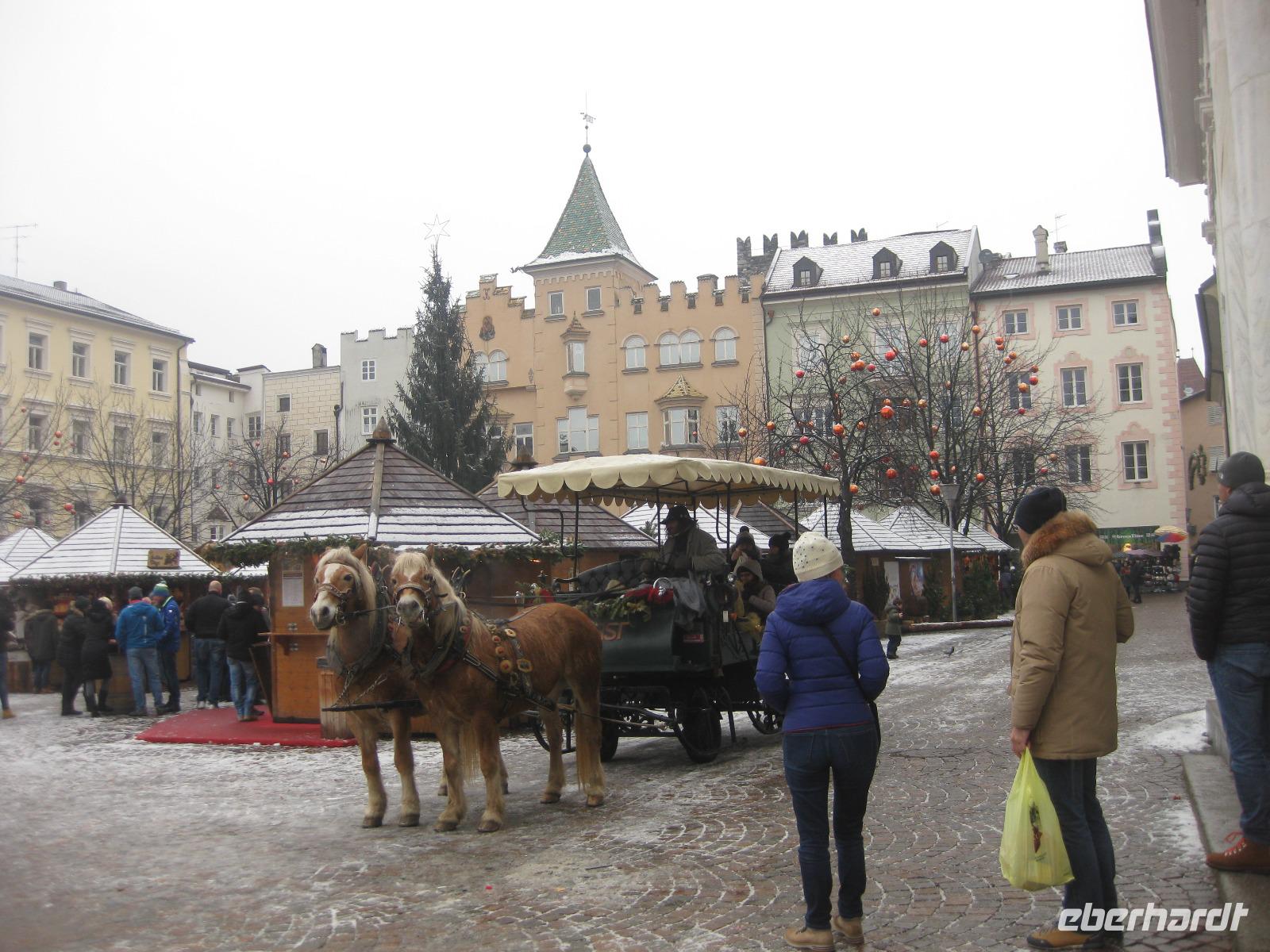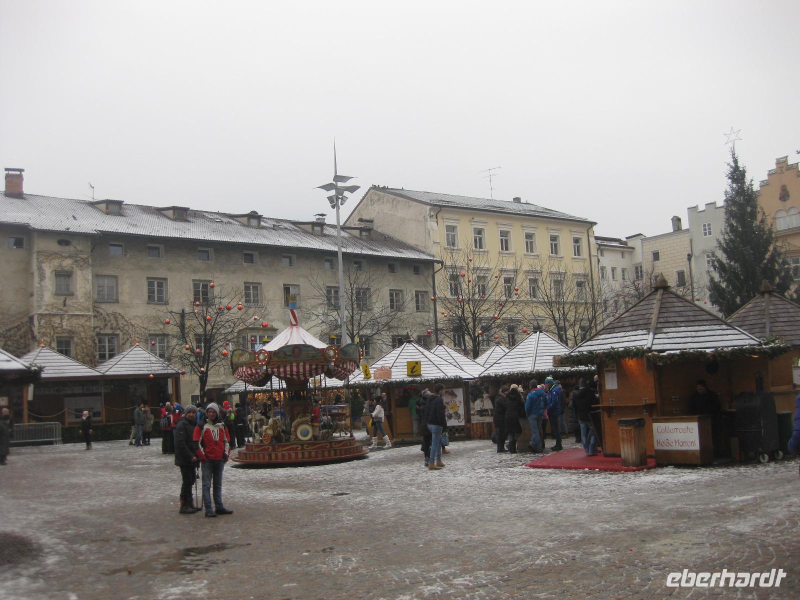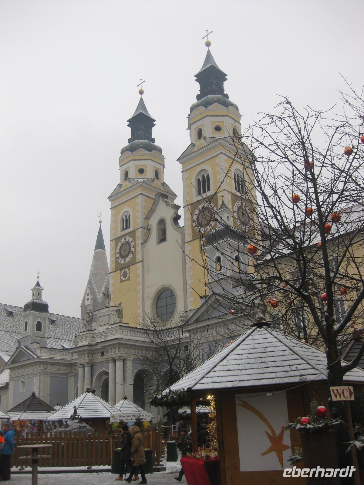 Brixen war über viele Jahrhunderte Bischofssitz und kirchliches Zentrum Südtirols. Unser Weg führt uns zuerst zur Hofburg, Residenz der Bischöfe. Heute ist hier das Diözesanmuseum mit vielen kirchlichen Schätzen untergebracht. Auch das Krippenmuseum befindet sich in den Räumlichkeiten der Hofburg. Wir besichtigen die Hofburg aber nur von außen. Ein Besuch der Museen wäre zu umfangreich. Gleich neben der Hofburg befindet sich die Jahrtausendsäule, die anläßlich des 1000-jährigen Jubiläums der Stadt Brixen im Jahr 1909 errichtet wurde. Dann führt uns der Rundgang auf den Domplatz. Dort ist noch der Weihnachtsmarkt bis zum 06. Januar aufgebaut und geöffnet. Der Dom Mariä Himmelfahrt ist offen, so dass wir hinein schauen können. Gleich neben dem Dom geht es durch eine Pforte in den Kreuzgang. Hier können wir das größte Denkmal alpenländischer Wandmalerei bewundern. Dann führt uns der Weg in den Hof zwischen Dom und Pfarrkirche St. Michael. Von hier aus können wir den "Weißen Turm" der Pfarrkirche bewundern. Dann spazieren wir durch die Ladenstraßen "Große Lauben" und "Kleine Lauben" und gelangen durch die Domgasse wieder auf den Domplatz. Die Ladenstraßen locken die Besucher an. Charakteristisch sind die Laubengänge mit ihren Läden und Restaurants, in denen man wunderbar einkaufen und gemütlich sitzen, essen und trinken kann. Wieder auf dem Domplatz angekommen kann nun jeder selbst noch über den Weihnachtsmarkt bummeln und sich von den angebotenen Speisen und Getränken verführen lassen oder ein Mitbringsel für Daheim auswählen. Dann geht es zurück in's Hotel.