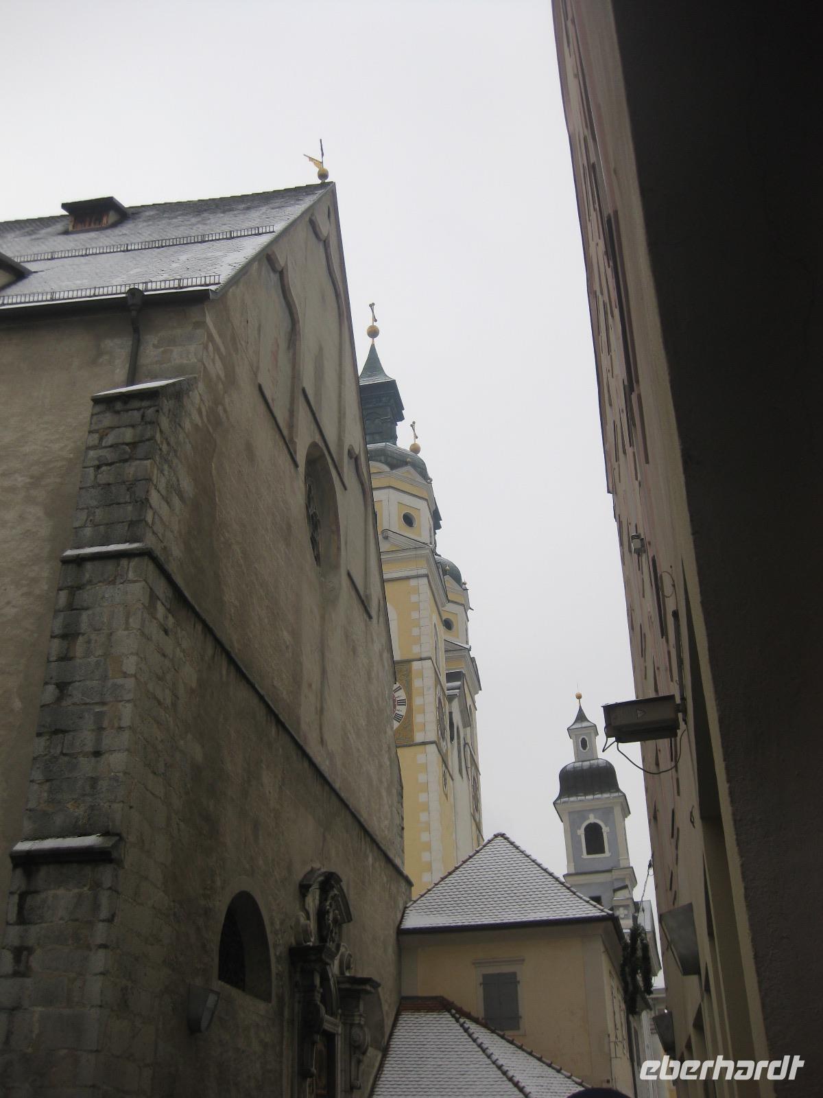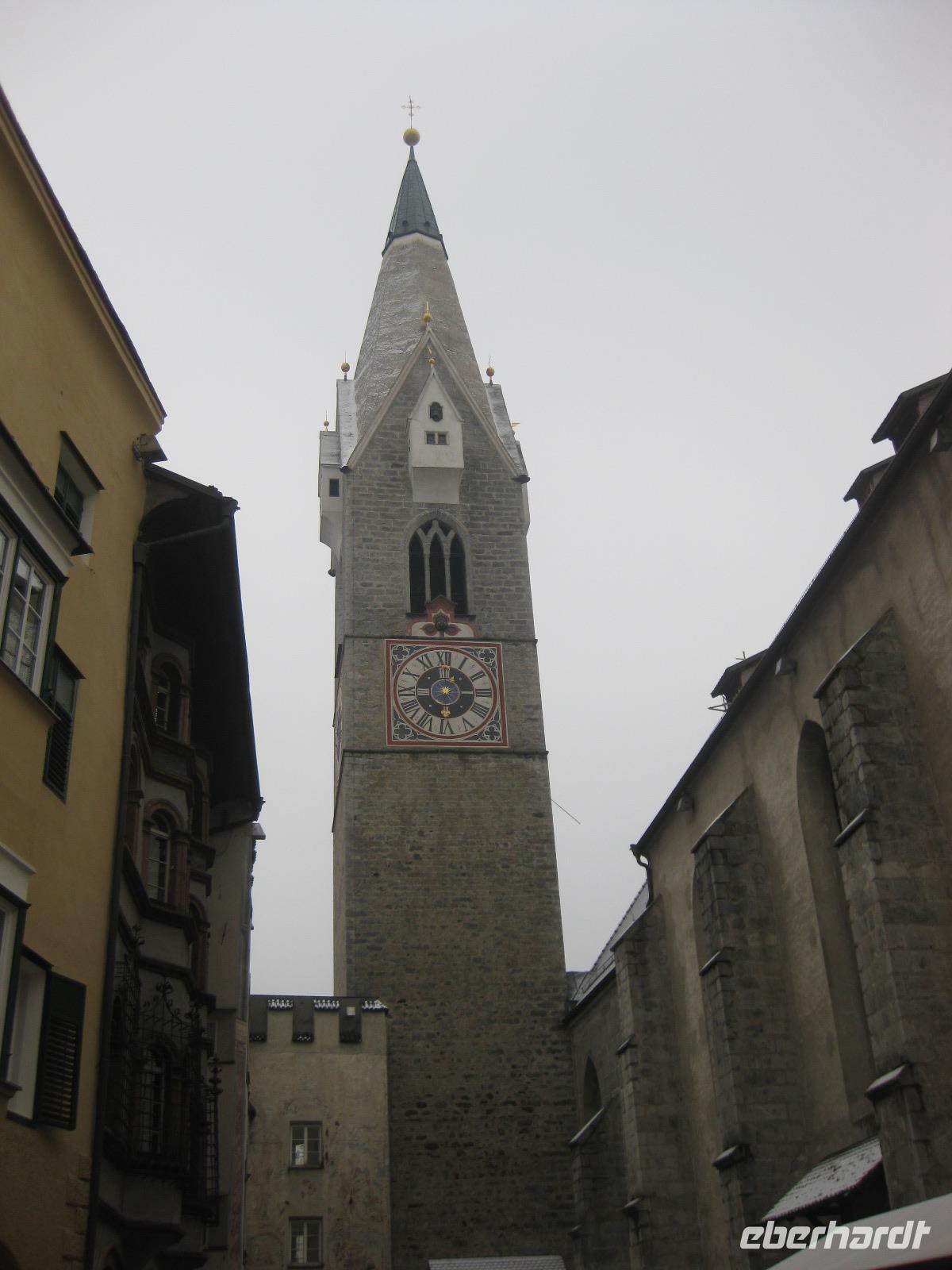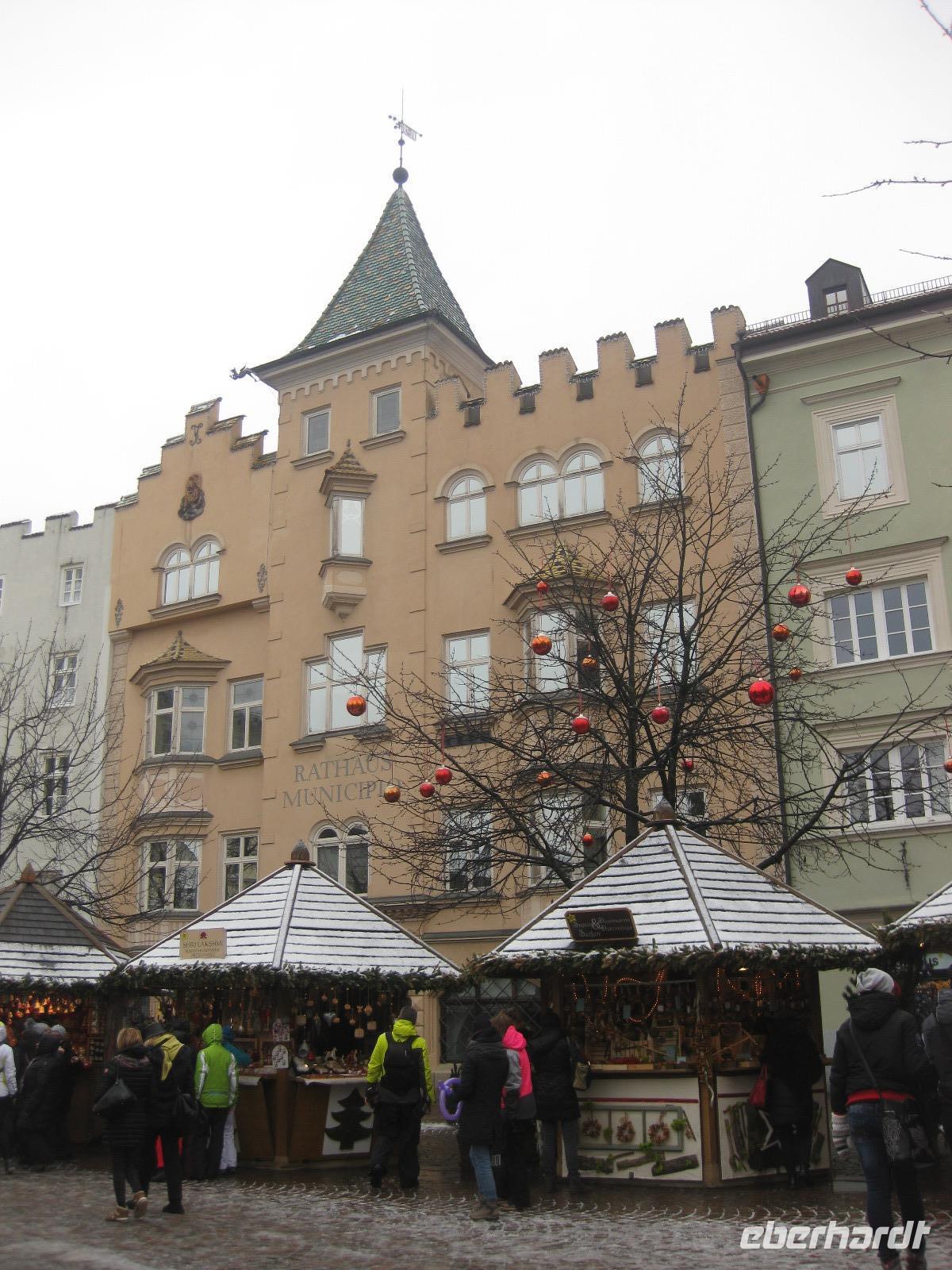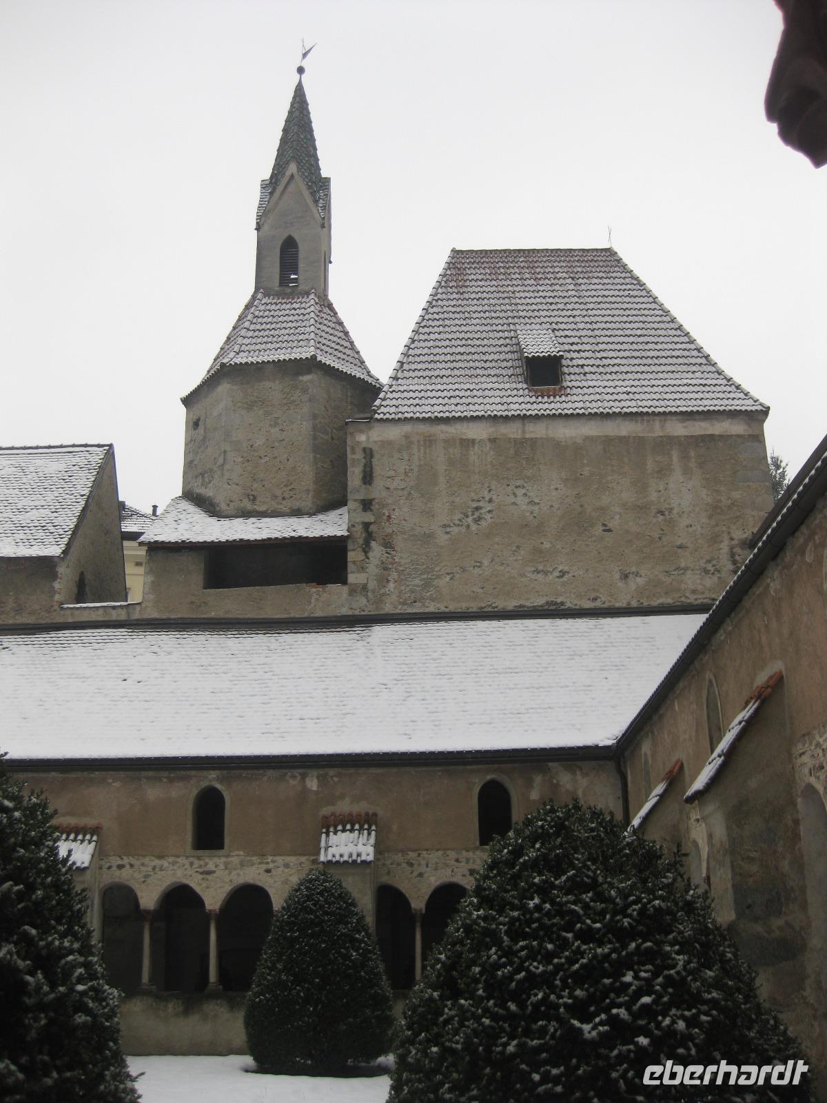 Brixen war über viele Jahrhunderte Bischofssitz und kirchliches Zentrum Südtirols. Unser Weg führt uns zuerst zur Hofburg, Residenz der Bischöfe. Heute ist hier das Diözesanmuseum mit vielen kirchlichen Schätzen untergebracht. Auch das Krippenmuseum befindet sich in den Räumlichkeiten der Hofburg. Wir besichtigen die Hofburg aber nur von außen. Ein Besuch der Museen wäre zu umfangreich. Gleich neben der Hofburg befindet sich die Jahrtausendsäule, die anläßlich des 1000-jährigen Jubiläums der Stadt Brixen im Jahr 1909 errichtet wurde. Dann führt uns der Rundgang auf den Domplatz. Dort ist noch der Weihnachtsmarkt bis zum 06. Januar aufgebaut und geöffnet. Der Dom Mariä Himmelfahrt ist offen, so dass wir hinein schauen können. Gleich neben dem Dom geht es durch eine Pforte in den Kreuzgang. Hier können wir das größte Denkmal alpenländischer Wandmalerei bewundern. Dann führt uns der Weg in den Hof zwischen Dom und Pfarrkirche St. Michael. Von hier aus können wir den "Weißen Turm" der Pfarrkirche bewundern. Dann spazieren wir durch die Ladenstraßen "Große Lauben" und "Kleine Lauben" und gelangen durch die Domgasse wieder auf den Domplatz. Die Ladenstraßen locken die Besucher an. Charakteristisch sind die Laubengänge mit ihren Läden und Restaurants, in denen man wunderbar einkaufen und gemütlich sitzen, essen und trinken kann. Wieder auf dem Domplatz angekommen kann nun jeder selbst noch über den Weihnachtsmarkt bummeln und sich von den angebotenen Speisen und Getränken verführen lassen oder ein Mitbringsel für Daheim auswählen. Dann geht es zurück in's Hotel.