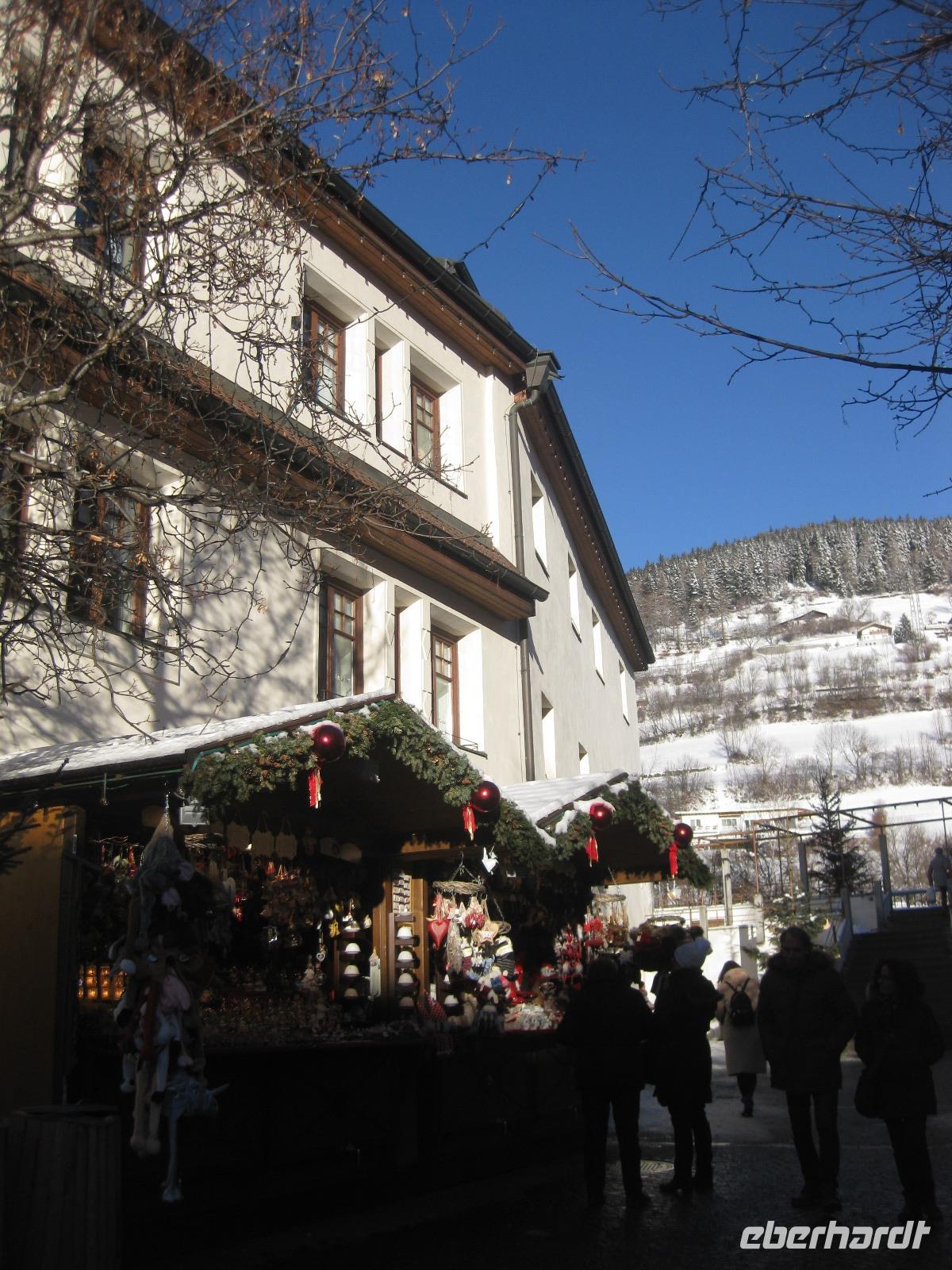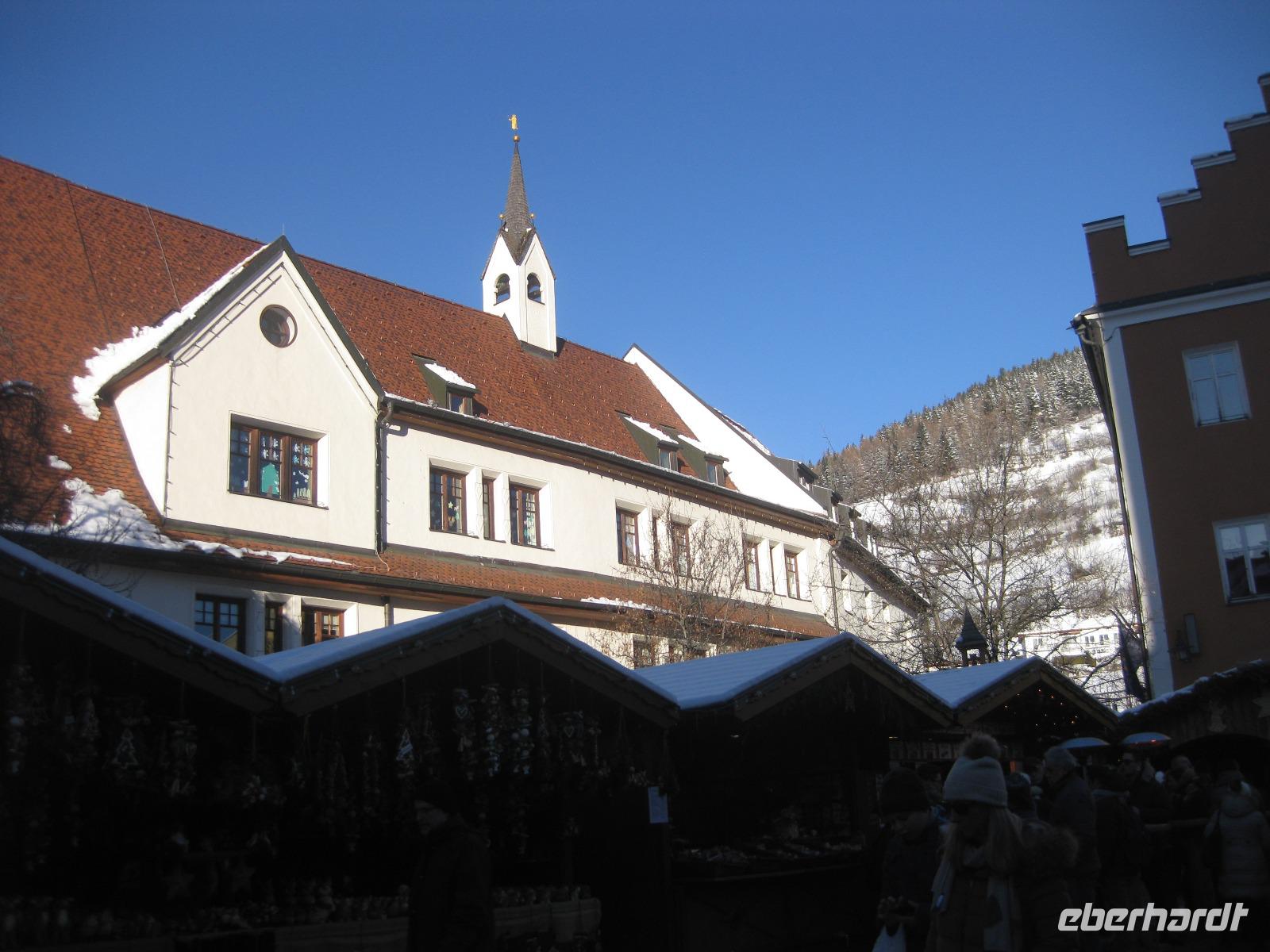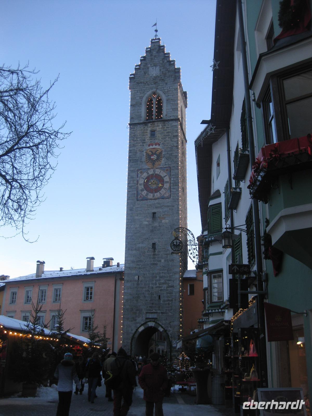 Am Nachmittag treffen wir uns auf dem Parkplatz nahe der Talstation am Bus wieder und starten zu unserem kleinen Stadtrundgang durch Sterzing. Wir spazieren auf der Fußgängerpassage "Altstadt" entlang. Hier befindet sich der älteste Teil Sterzings. Es siedelten sich Gasthöfe und Handwerksbetriebe an. Das ist noch heute zu erkennen. Dann erreichen wir den Stadtplatz. An der Nordseite befindet sich die "Spitalkirche zum Heiligen Geist". Zur Zeit findet auf dem Stadtplatz noch bis zum 6. Januar der Weihnachtsmarkt statt. Den besuchen wir später im Anschluss an unseren Stadtrundgang. Nun geht es erst einmal weiter durch den "Jöchelsthurn" oder "Zwölferturm". Die Passage wird nun die "Neustadt". Hier sind die Häuser mit besonders schönen Erkern und Giebeln geschmückt. Das Rathaus der Stadt befindet sich auch hier und ist ein besonderes Schmuckstück. Und nicht zu vergessen die Laubengänge und kleinen Gässchen. All das zusammen bildet wohl eine der schönsten Straßen Südtirols. Und nun kann jeder noch selbst den Weihnachtsmarkt und auch das Städtchen erkunden. Dann geht es zum Hotel "Almina" zurück. Einige von uns besuchen noch den Wellnesbereich des Hotels und probieren die Saunen.