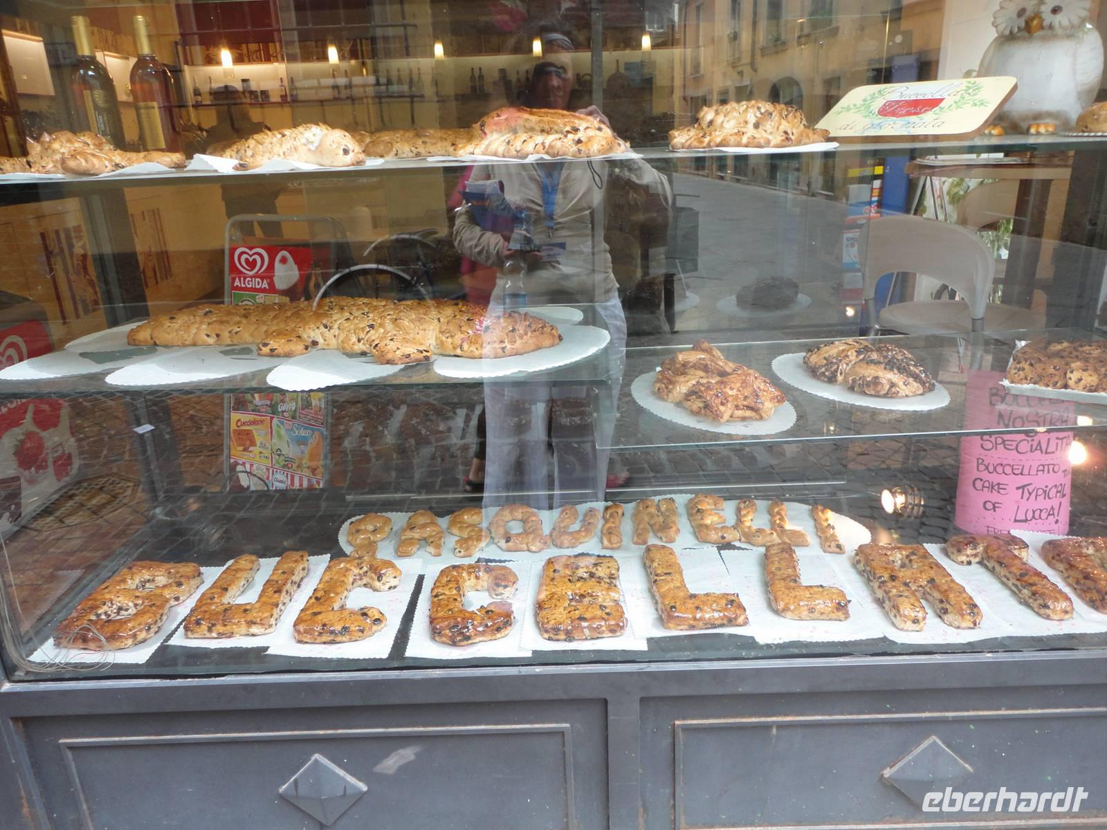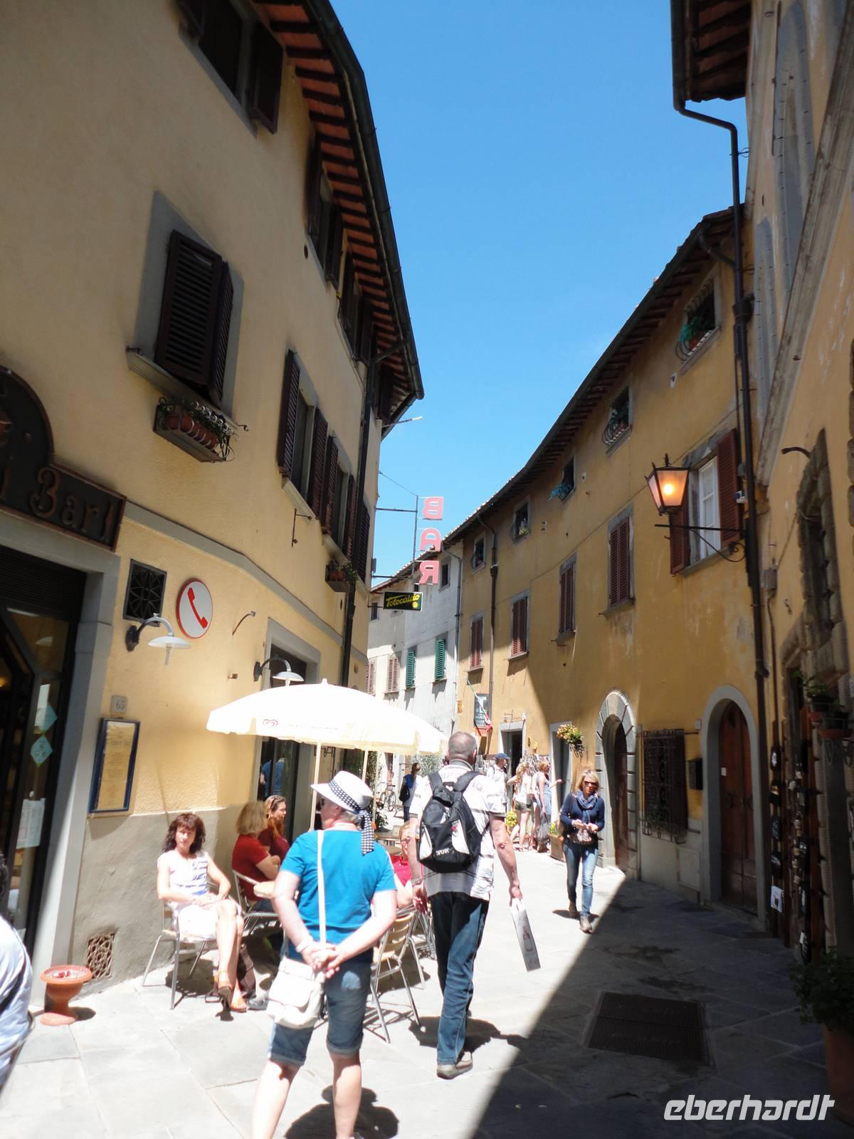 Grelles Sonnenlicht beim Verlassen. Vom Domplatz und Baptisterium durch mittelalterliche Gassen zum Campo mit Rathaus und den Palazzi der großen Familien. Am Brunnen treffen wir uns wieder, schlendernd zur Fortezza.